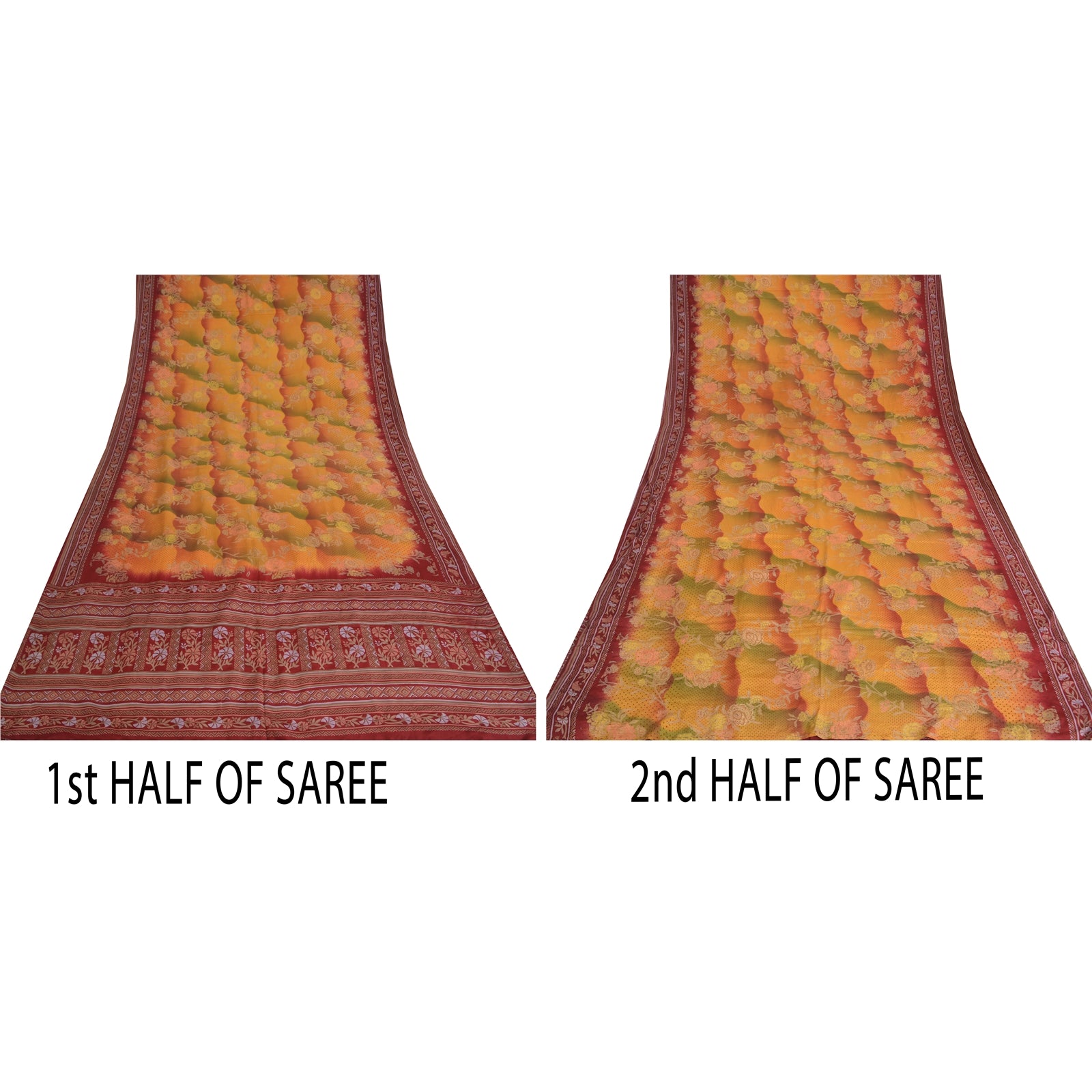 Sanskriti Vintage Sarees Multi Pure Crepe Silk Printed Sari 5yd Craft Sustainable Fabric