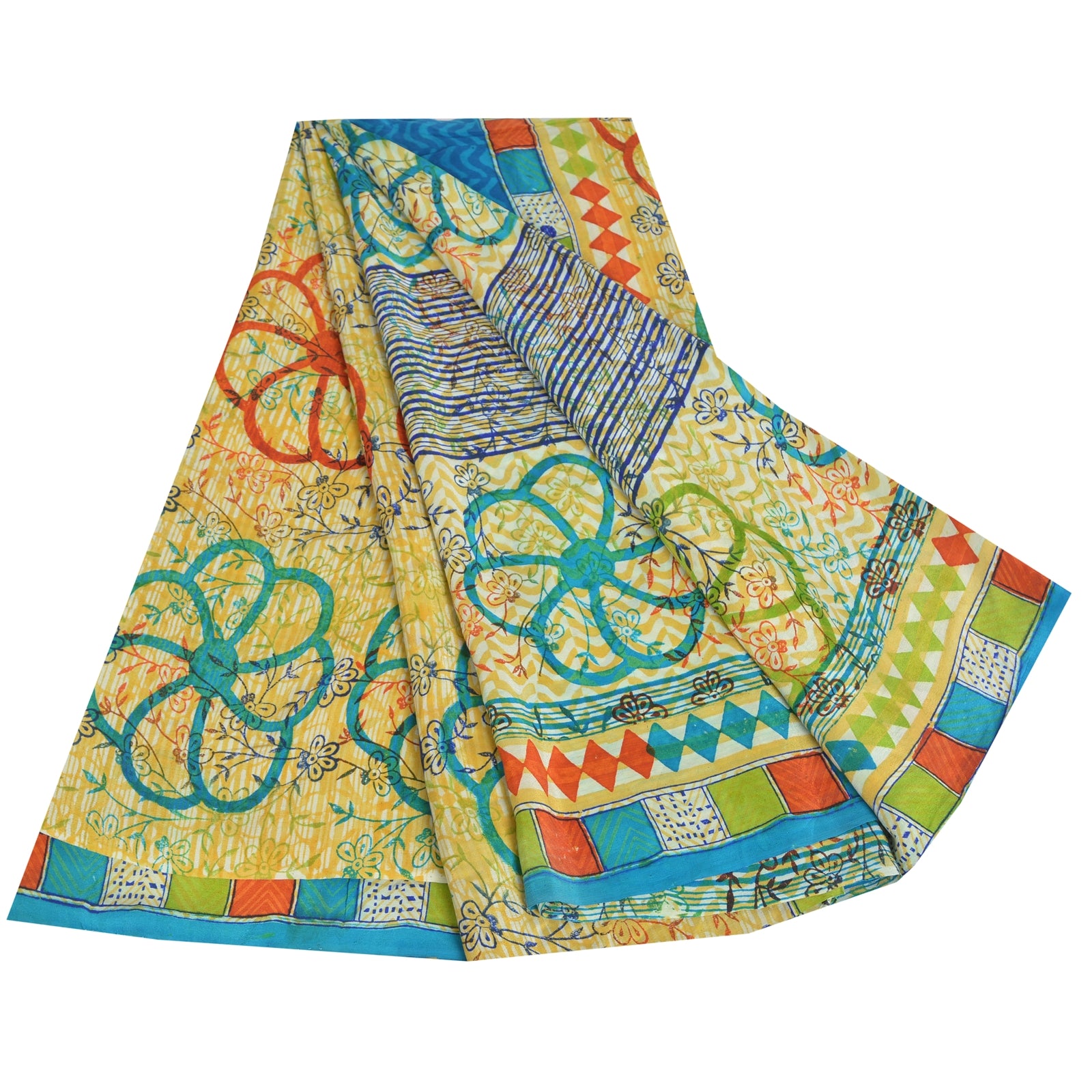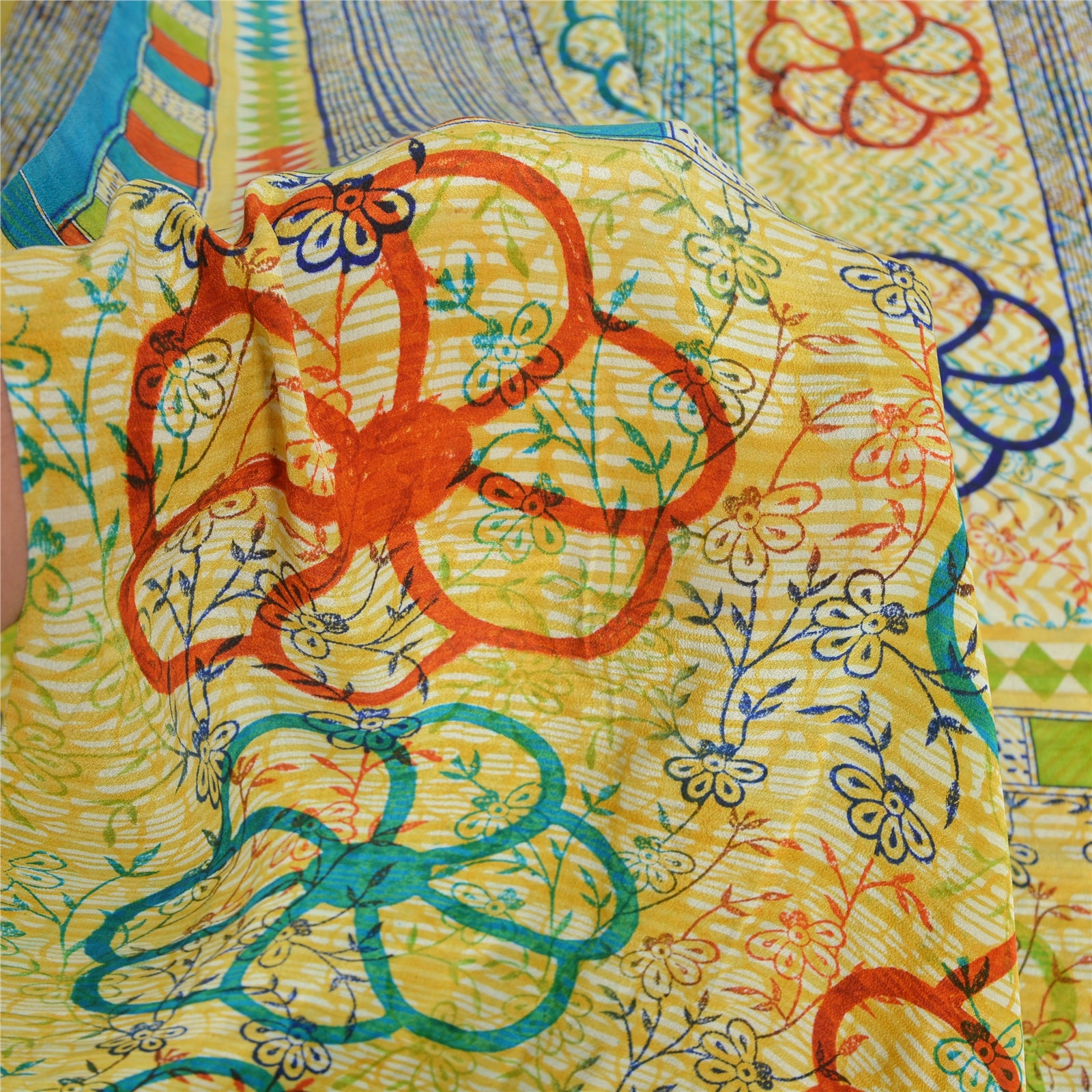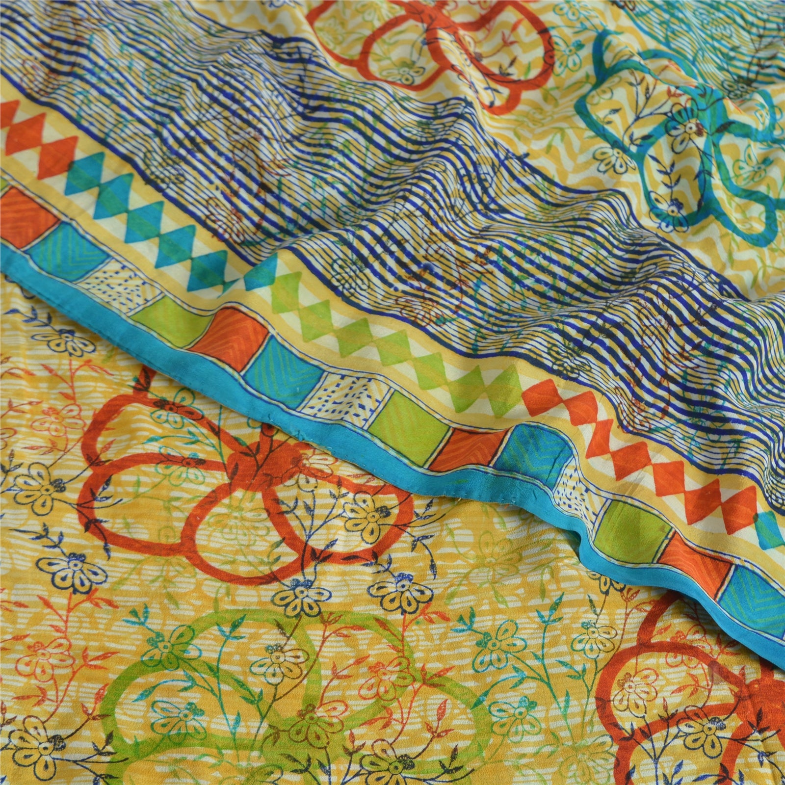 Sanskriti Vintage Sarees Multi Pure Crepe Silk Printed Sari 5yd Craft Sustainable Fabric