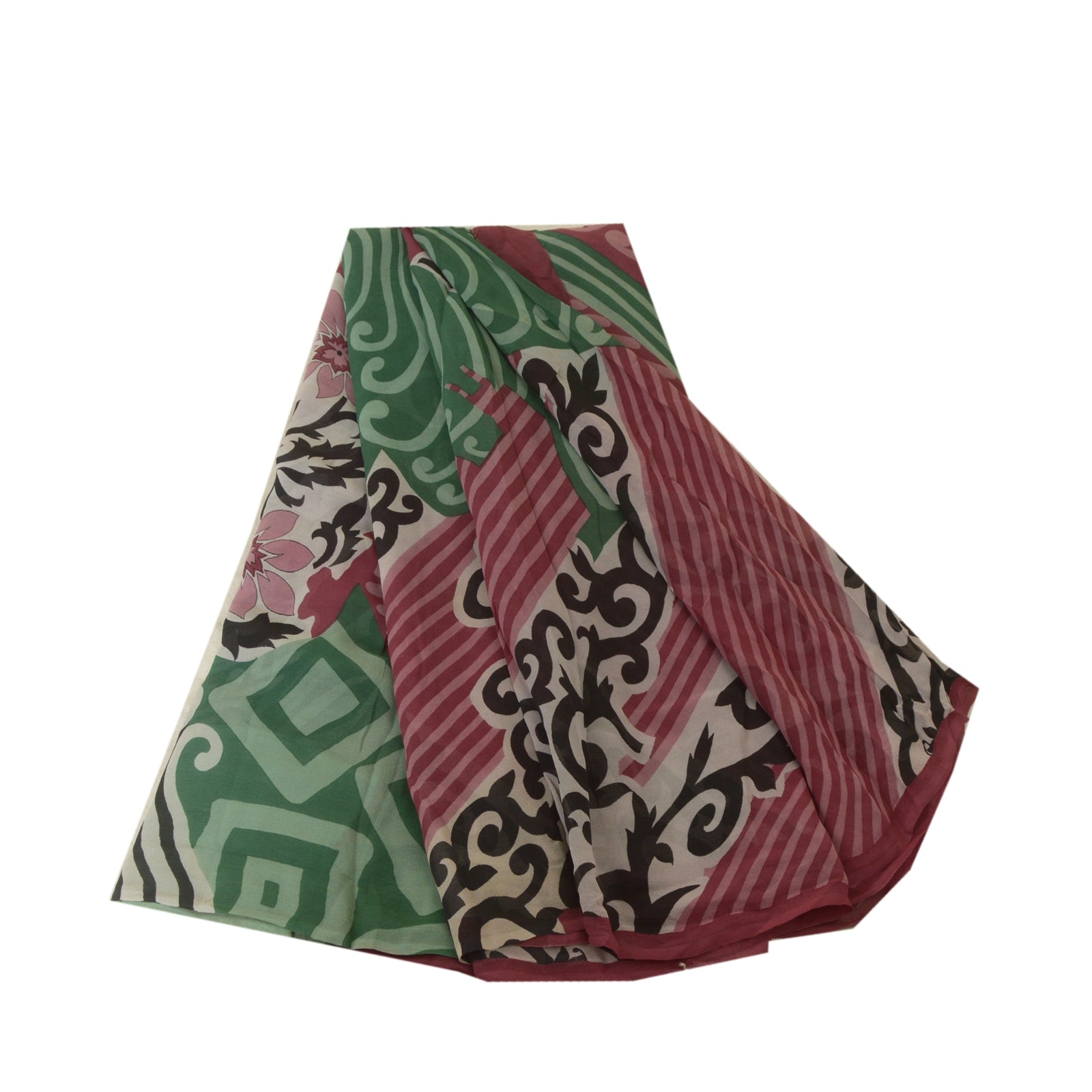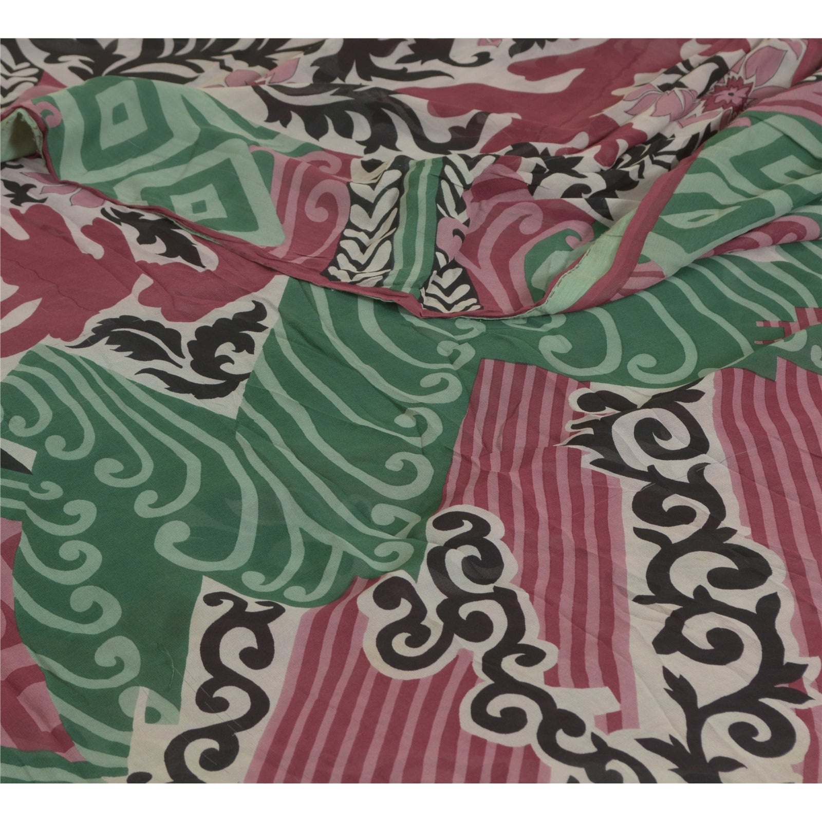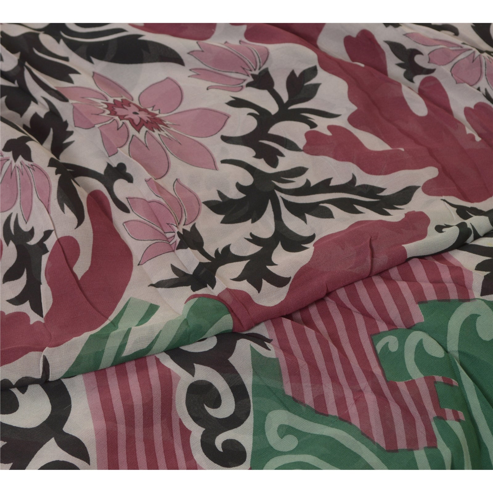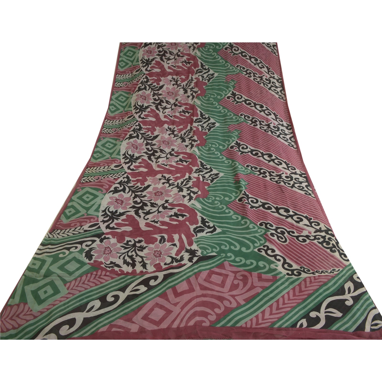 Sanskriti Vintage Sarees Multi Pure Georgette Silk Printed Sari 5yd Craft Sustainable Fabric