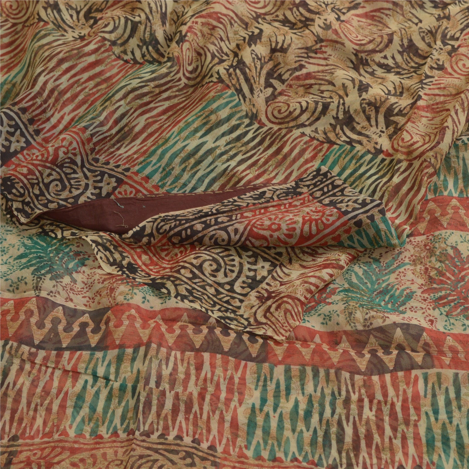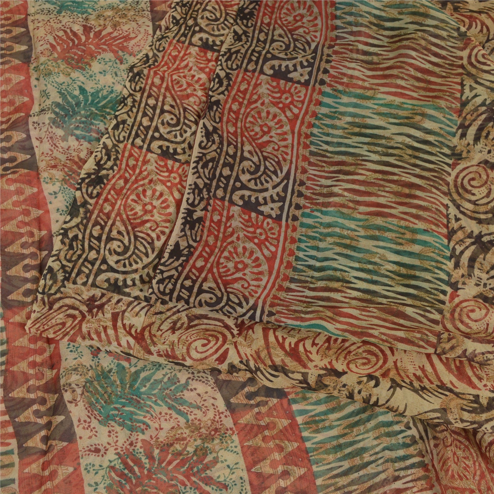 Sanskriti Vintage Sarees Multi Pure Georgette Silk Printed Sari 5yd Craft Sustainable Fabric
