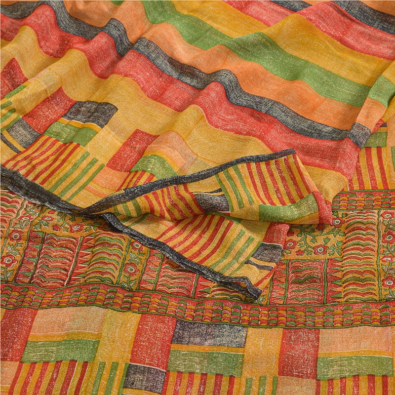 Title: PRG-13721 KreatvKraft Sarees Multi Pure Georgette Silk Printed Sari – 5 Yd Craft Fabric