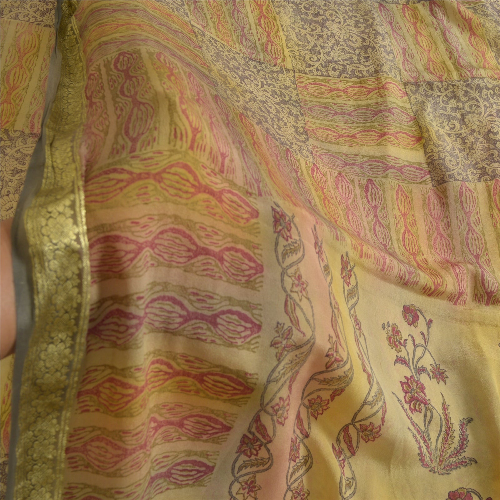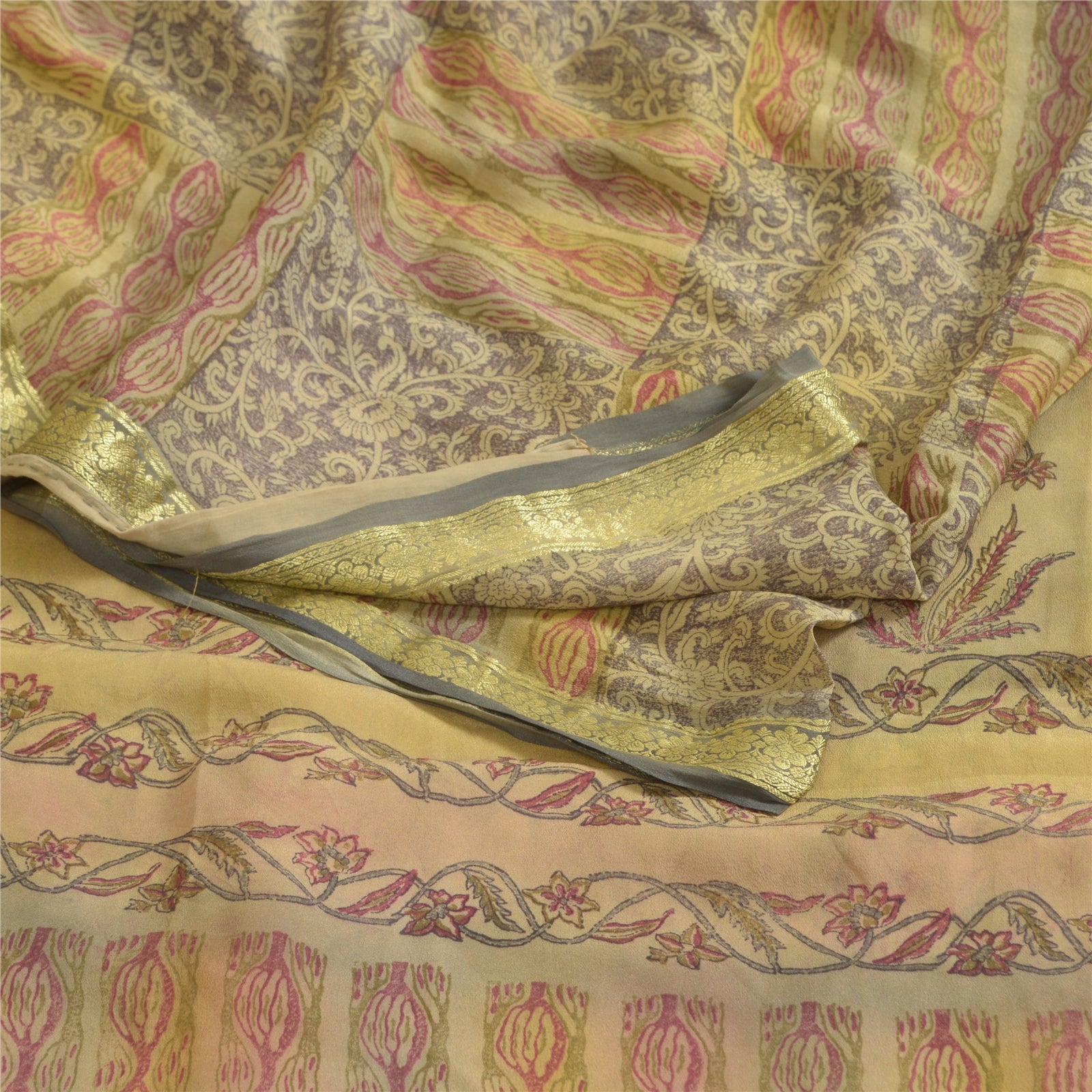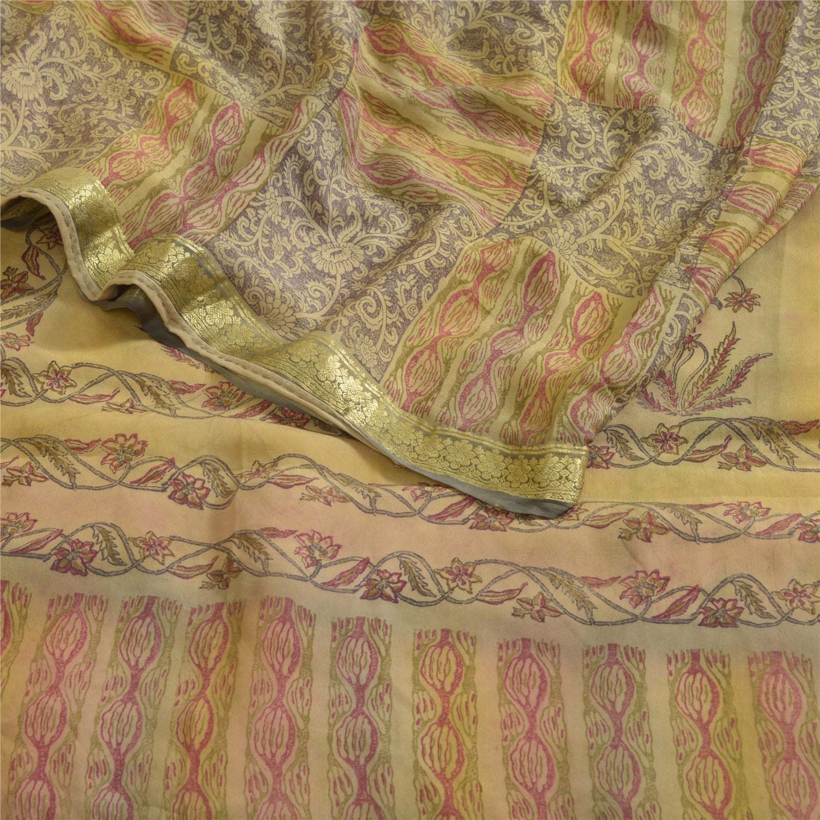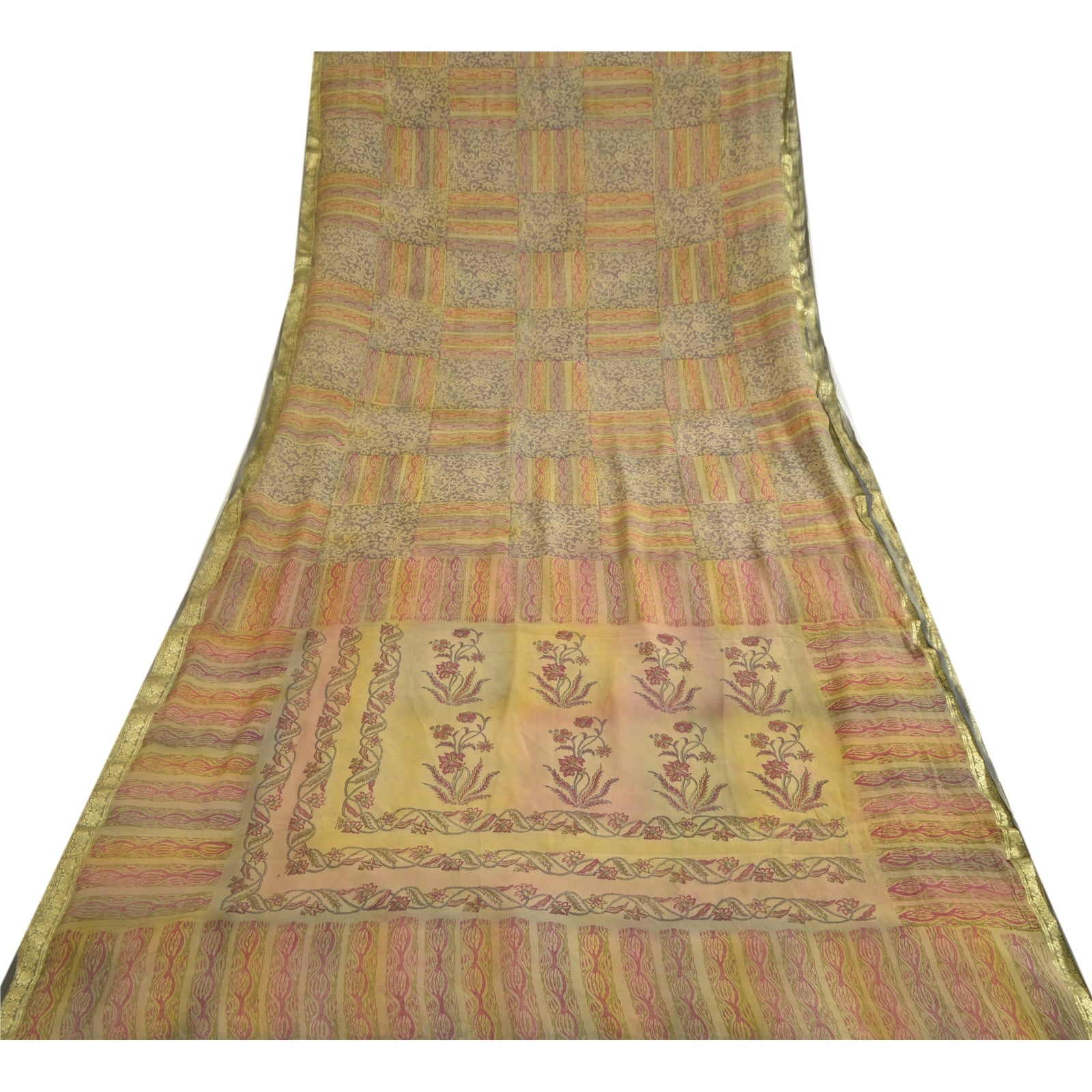 Sanskriti Vintage Sarees Multi Zari Border Print Pure Georgette Sari CraftSustainable Fabric