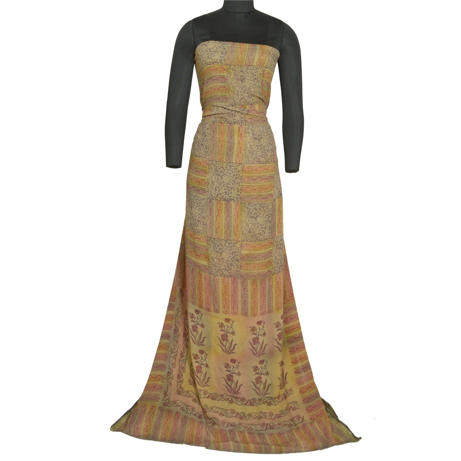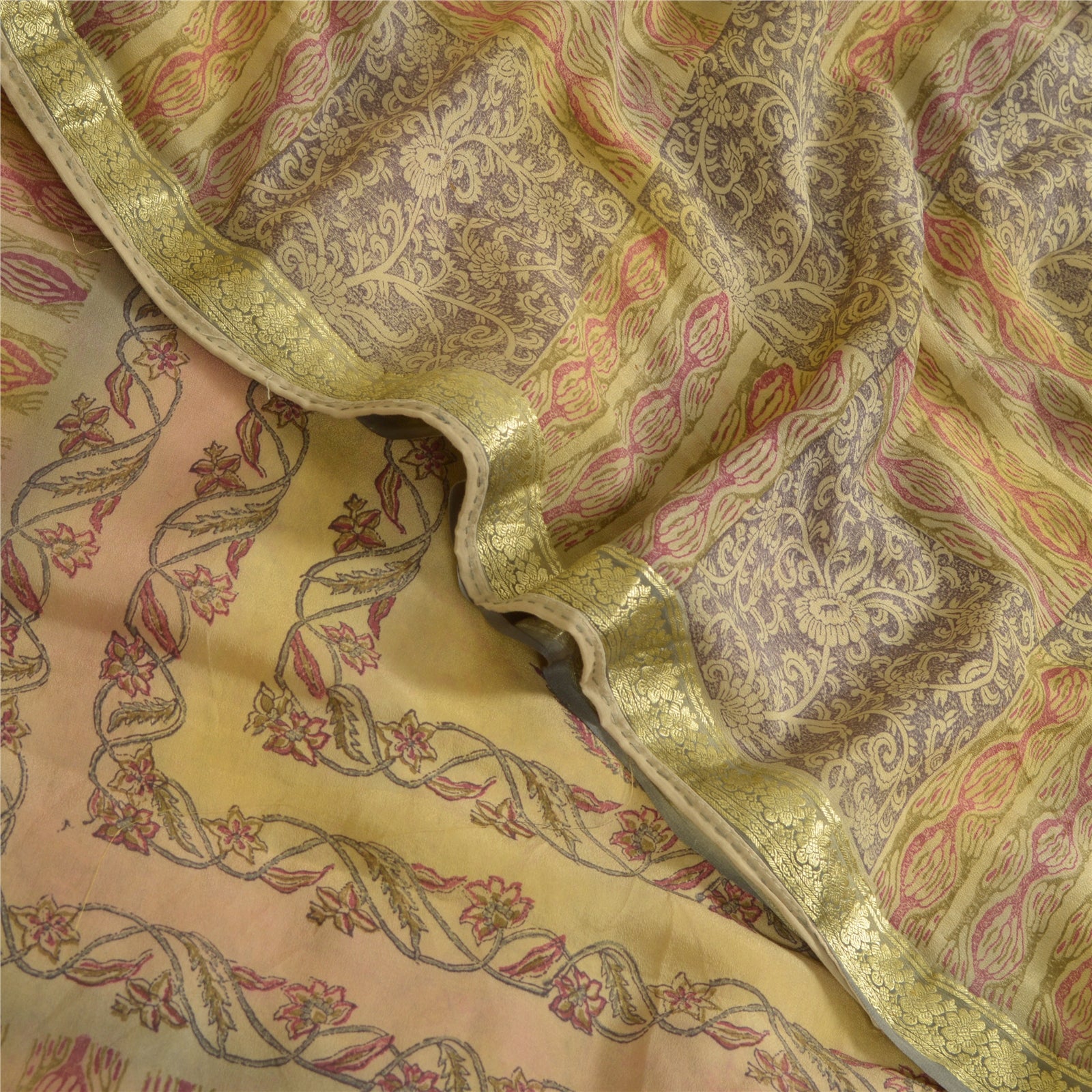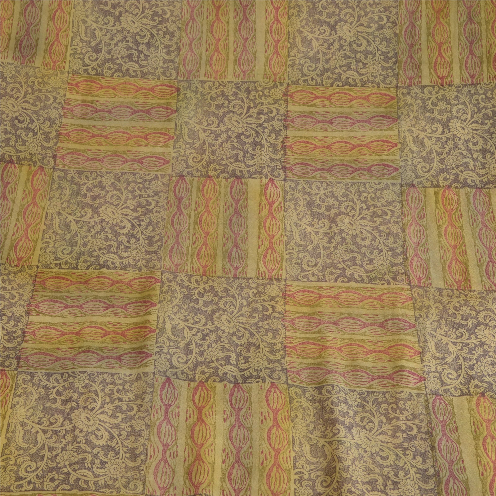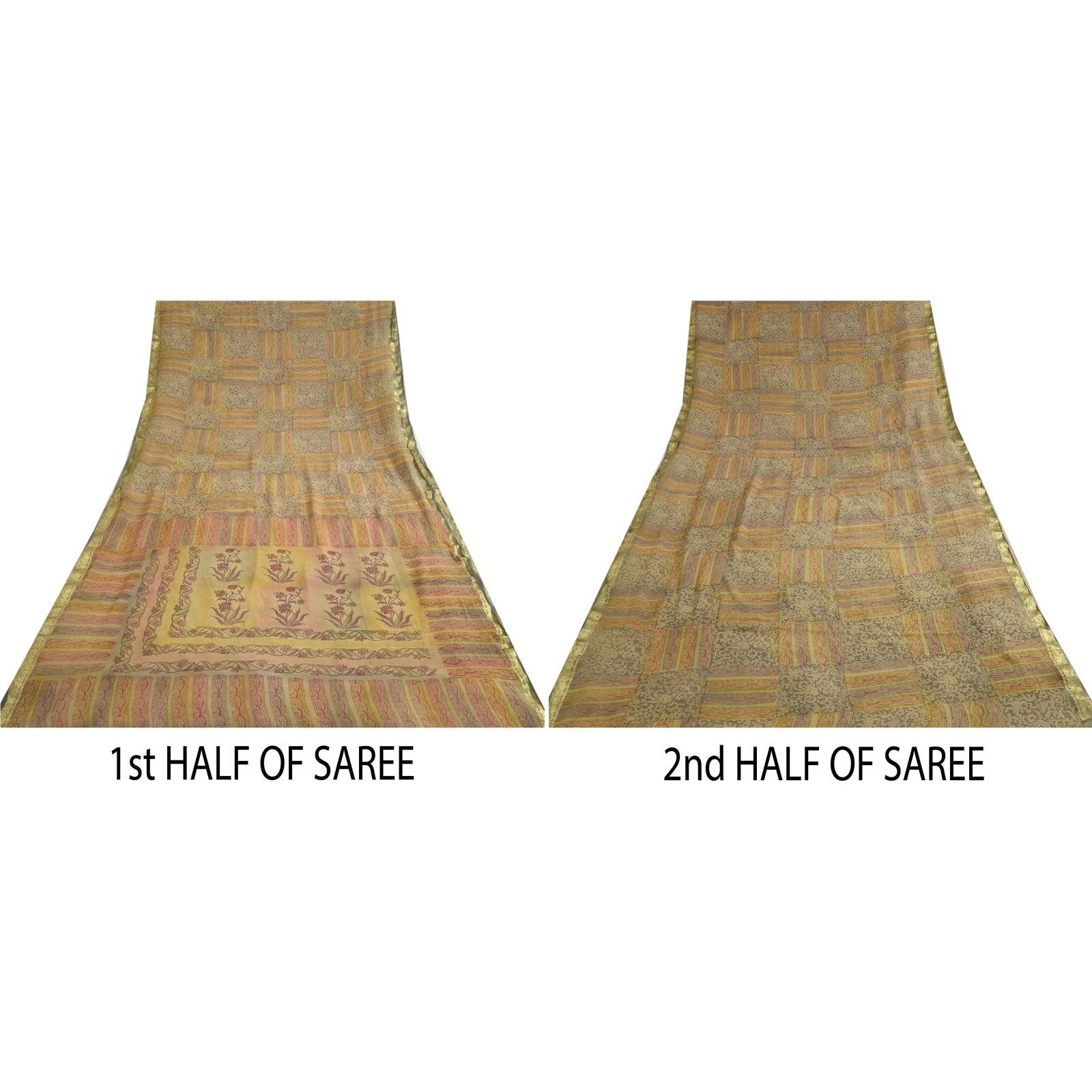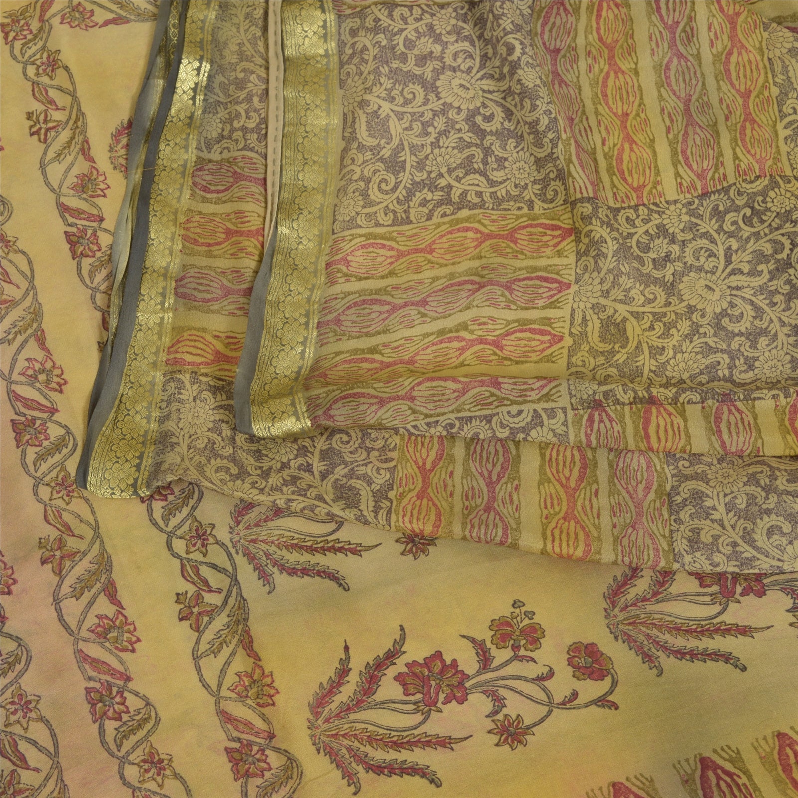 Sanskriti Vintage Sarees Multi Zari Border Print Pure Georgette Sari CraftSustainable Fabric