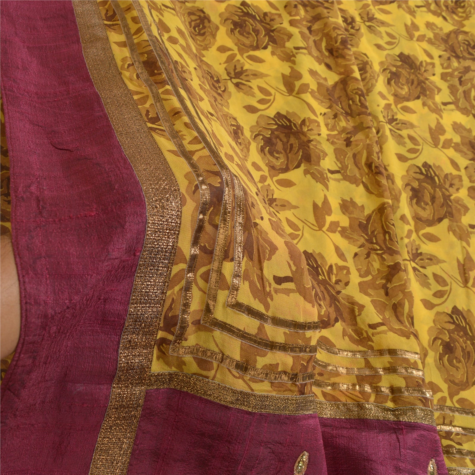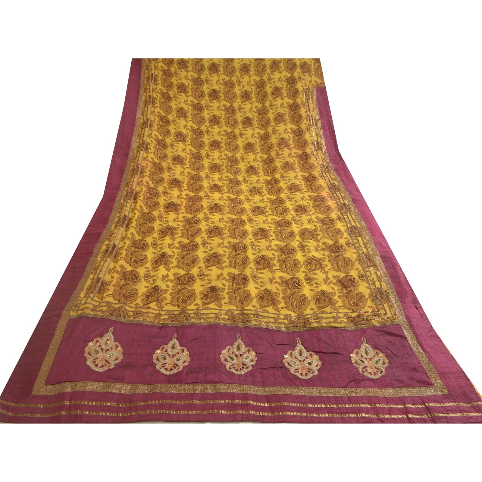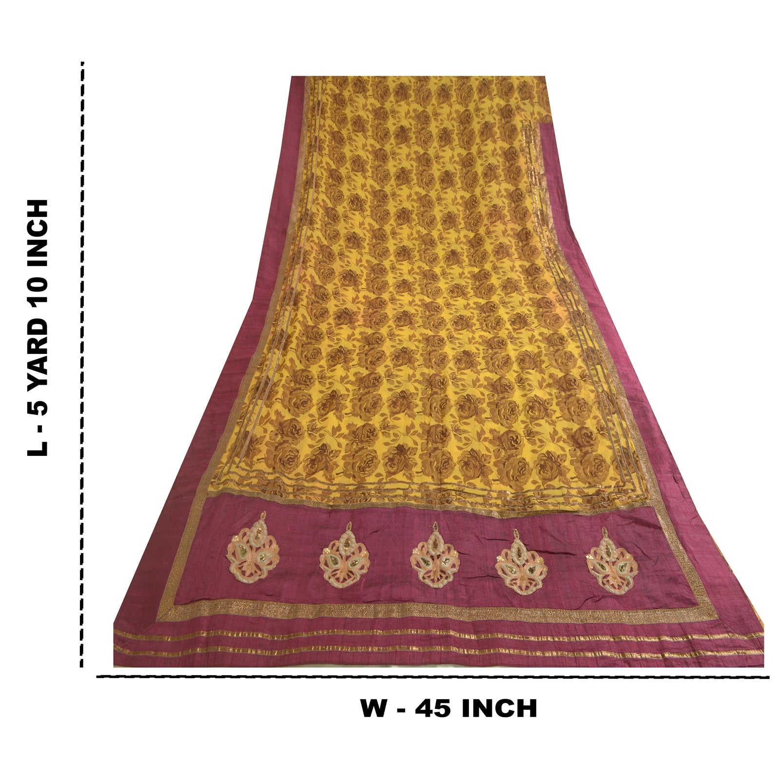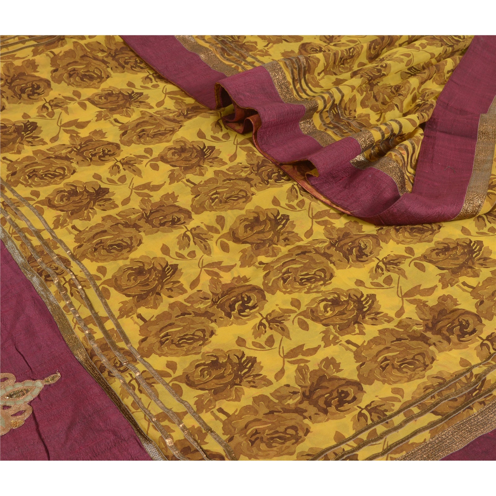 THE ITEM COLOR OR SHADE MAY BE DARKER OR LIGHTER THAN THE PICTURE.' Beautiful mustard colored pure georgette silk printed & patch work saree. Pallu & border has floral design with patch work. Printed floral design in center part of saree. Saree has mild stain on it. What is special about this saree? Brilliant design on soft Sustainable Fabric is really enhancing the beauty of the saree. This unique vintage saree can be used for various crafting ideas even if you don't want to use it as a sari. Design a dress, use it as a as window dressing, upholstery, sarongs, throw, dress making and table linen much more. Let your creative juices flow and use this decorated Sustainable Fabric in multiple fashion. International buyers please note: Import duties, taxes, and charges are not included in the item price or postage cost. These charges are the buyer's responsibility. Please check with your country's customs office to determine what these additional costs will be prior to bidding or buying.Buyer will pay custom duty/tax. It is calculated and charged differently by every country. As a seller I do not have any control over it. VAT or sales tax is calculated by the platform at the time of checkout. Customs charge is payable at the time of delivery.