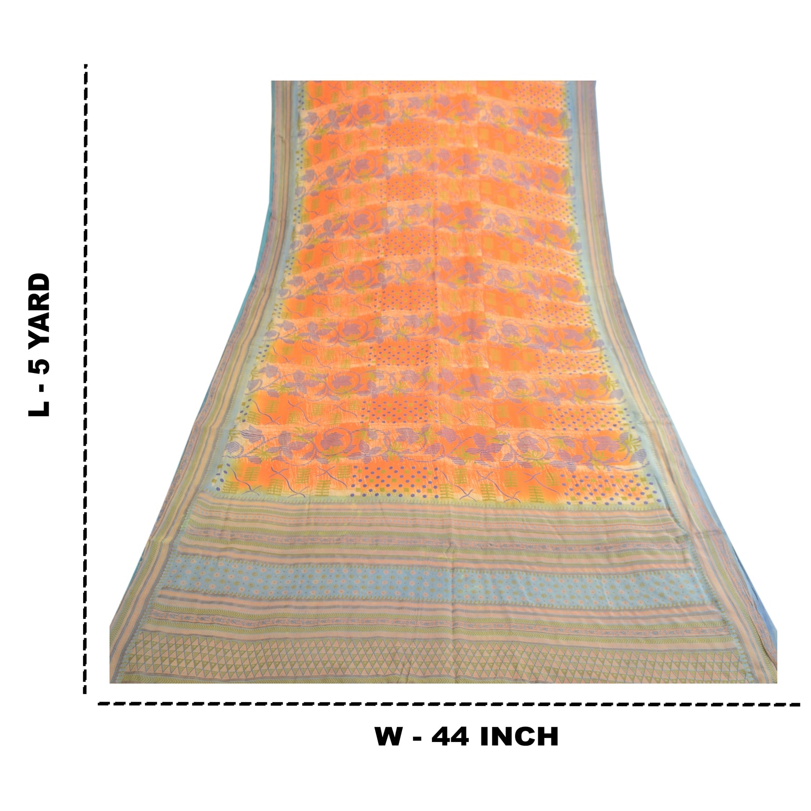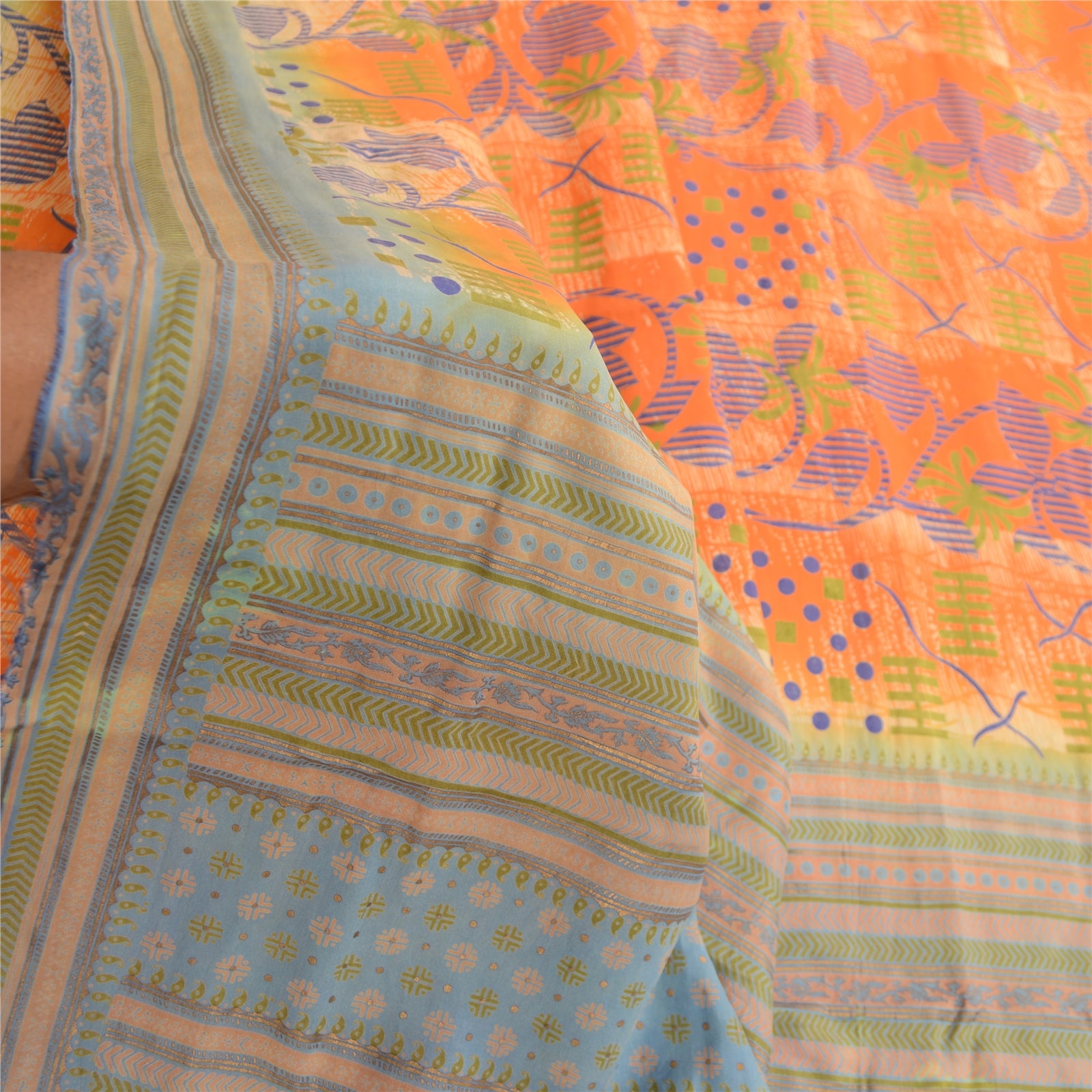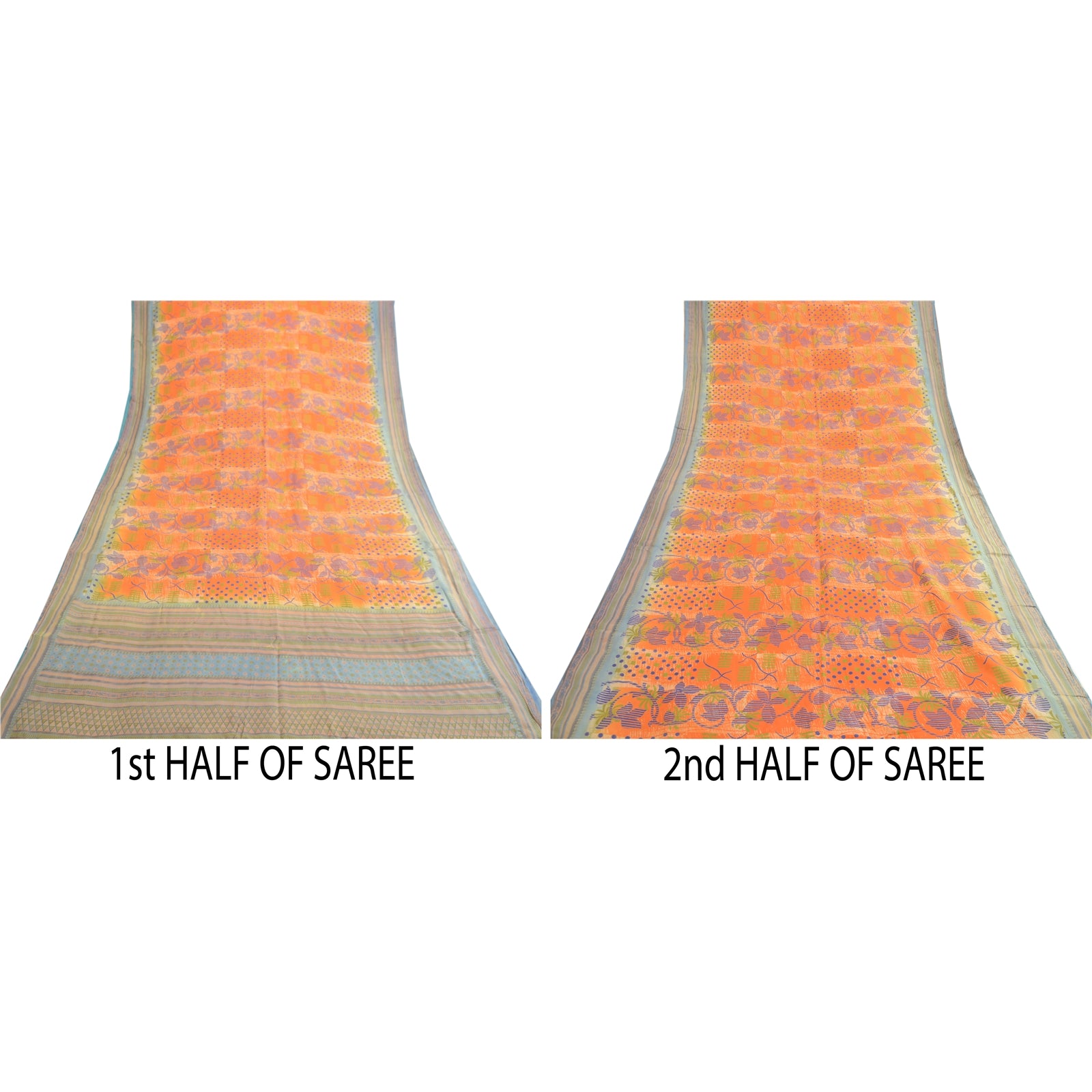 Sanskriti Vintage Sarees Orange 100% Pure Silk Printed Sari Floral Craft Sustainable Fabric