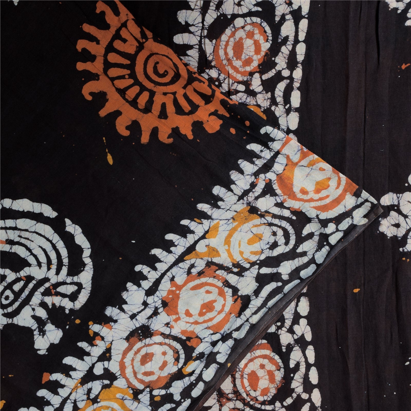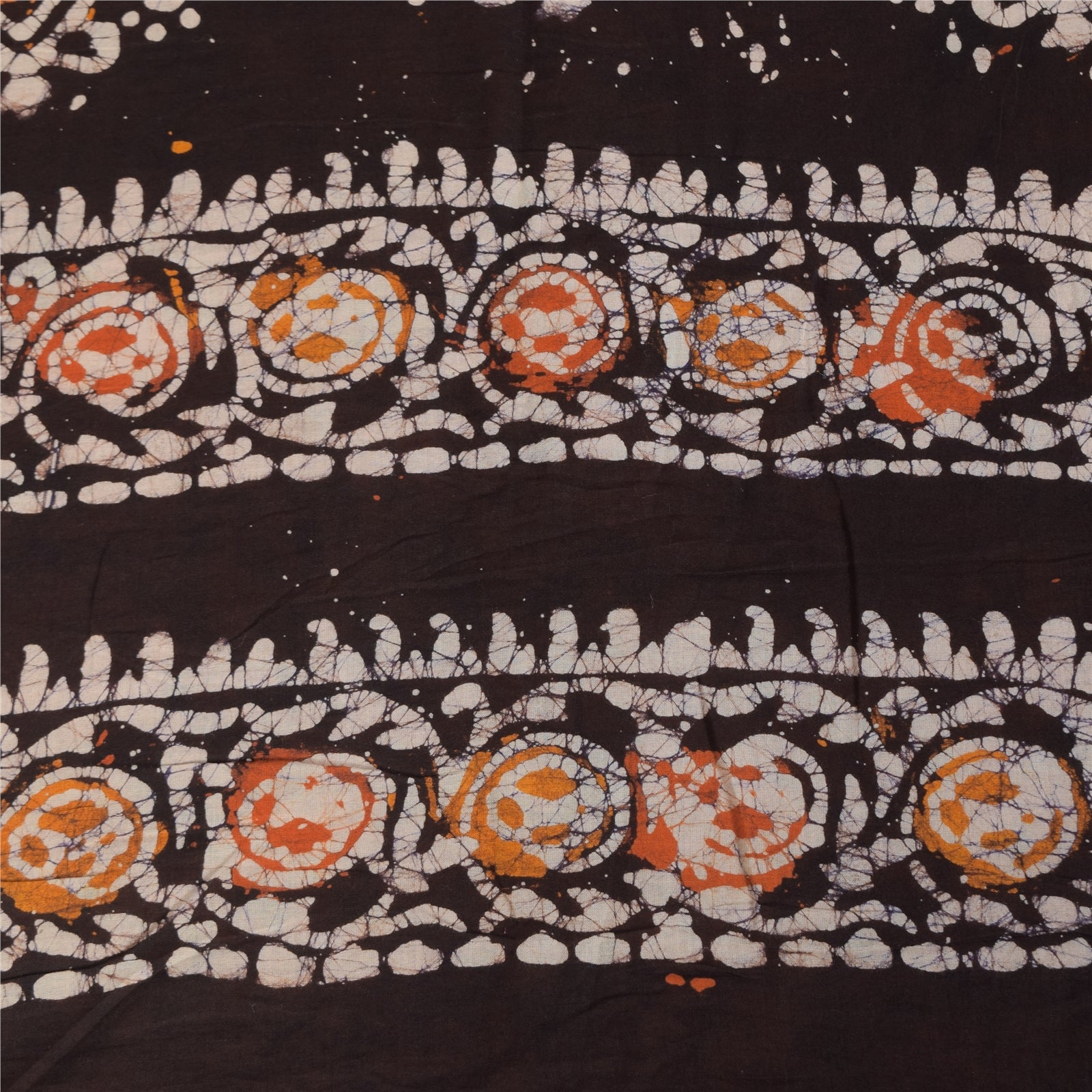 Sanskriti Vintage Sarees Orange/Brown Batik Work Pure Cotton Sari 5+yd Sustainable Fabric