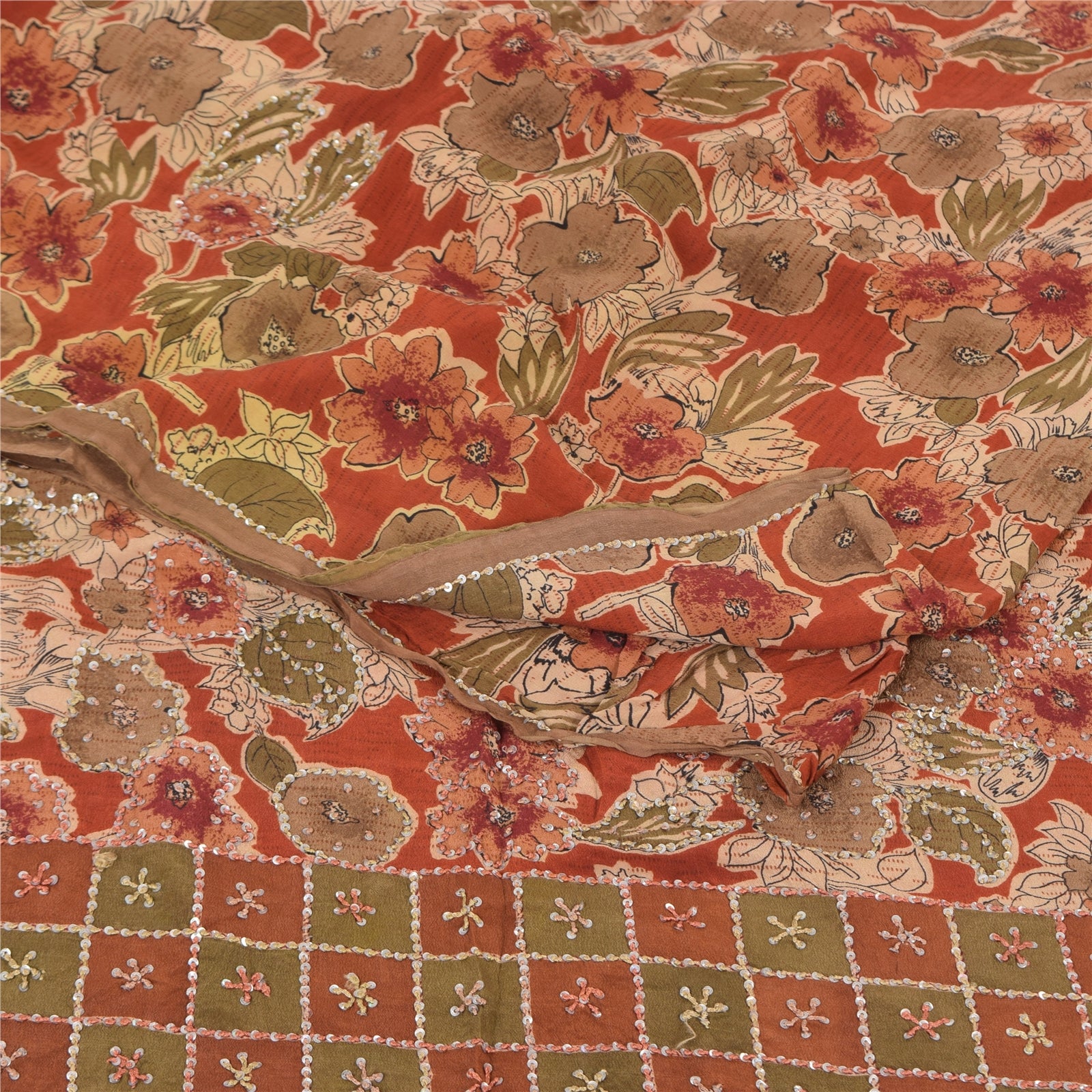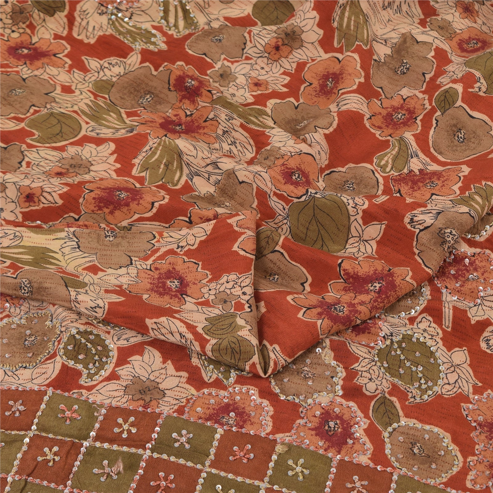 THE ITEM COLOR OR SHADE MAY BE DARKER OR LIGHTER THAN THE PICTURE.' • Beautiful orange colored printed & hand embroidered french knot pure crepe silk saree . • Pallu & Border has printed floral design with thread & sequins work. • Similar work in center part of sari . This unique vintage saree can be used for various crafting ideas even if you don't want to use it as a sari. Design a dress, use it as a as window dressing, upholstery, sarongs, throw, dress making and table linen much more. Let your creative juices flow and use this decorated Sustainable Fabric in multiple fashion. International buyers please note: Import duties, taxes, and charges are not included in the item price or postage cost. These charges are the buyer's responsibility. Please check with your country's customs office to determine what these additional costs will be prior to bidding or buying.Buyer will pay custom duty/tax. It is calculated and charged differently by every country. As a seller I do not have any control over it. VAT or sales tax is calculated by the platform at the time of checkout. Customs charge is payable at the time of delivery.