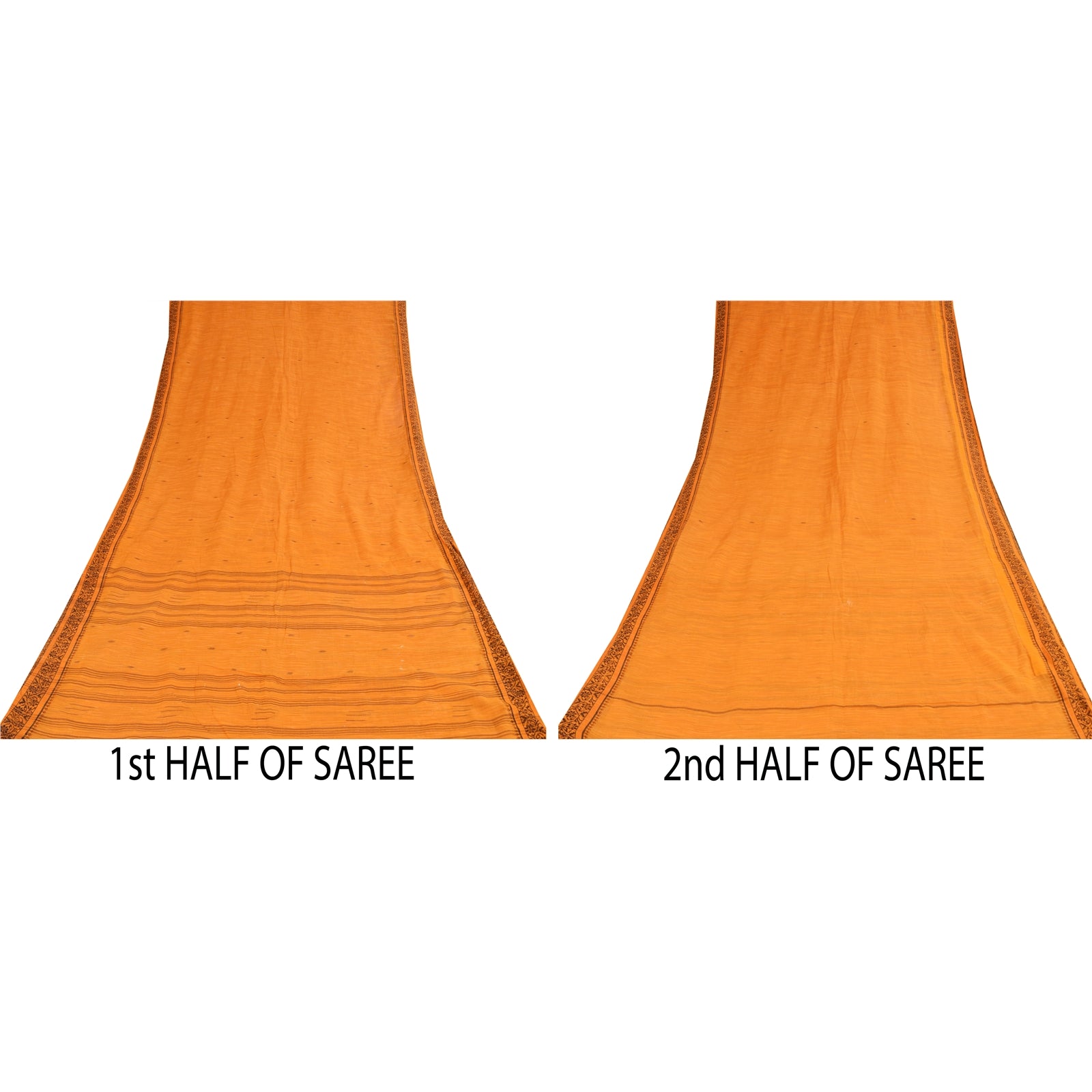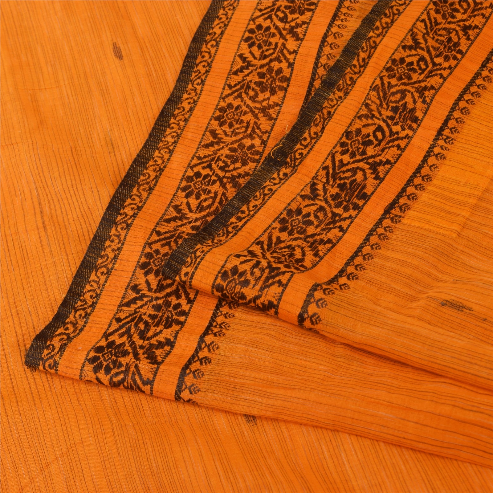 THE ITEM COLOR OR SHADE MAY BE DARKER OR LIGHTER THAN THE PICTURE. Attractive orange colored pure cotton printed sari. Pallu & Border has floral design with woven work. Similar work in center part of saree.. This unique vintage saree can be used for various crafting ideas even if you don't want to use it as a sari. Design a dress, use it as a as window dressing, upholstery, sarongs, throw, dress making and table linen much more. Let your creative juices flow and use this decorated Sustainable Fabric in multiple fashion. Shipping Note: 'International buyers please note: Import duties, taxes, and charges are not included in the item price or postage cost. These charges are the buyer's responsibility. Please check with your country's customs office to determine what these additional costs will be prior to bidding or buying. Buyer will pay custom duty/tax. It is calculated and charged differently by every country. As a seller I do not have any control over it. VAT or sales tax is calculated by the platform at the time of checkout. Customs charge is payable at the time of delivery.' PCS-6541