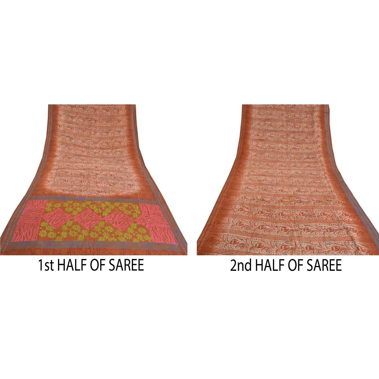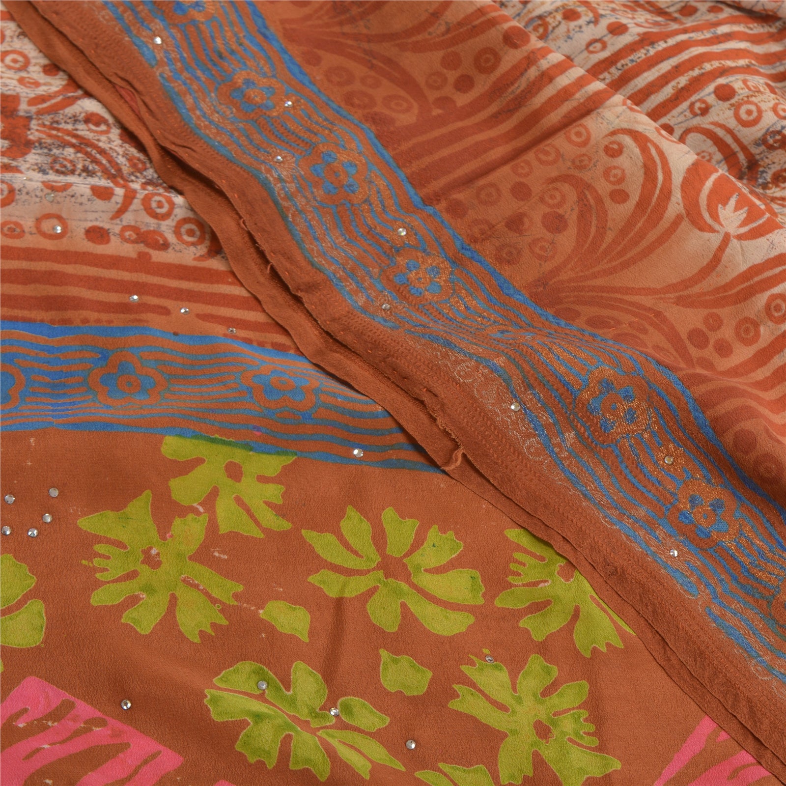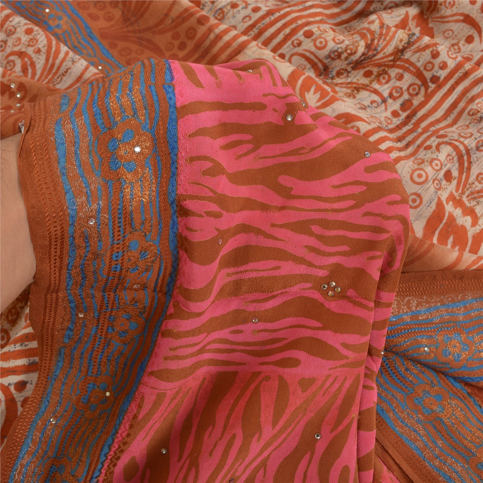 Sanskriti Vintage Sarees Orange Pure Crepe Silk Printed Rhinestone Sari Sustainable Fabric