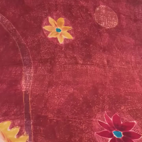 Sanskriti Vintage Sarees Orange Pure Crepe Silk Printed Sari 5+yd Craft Sustainable Fabric