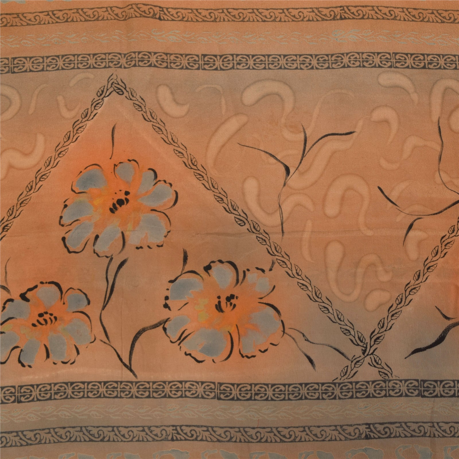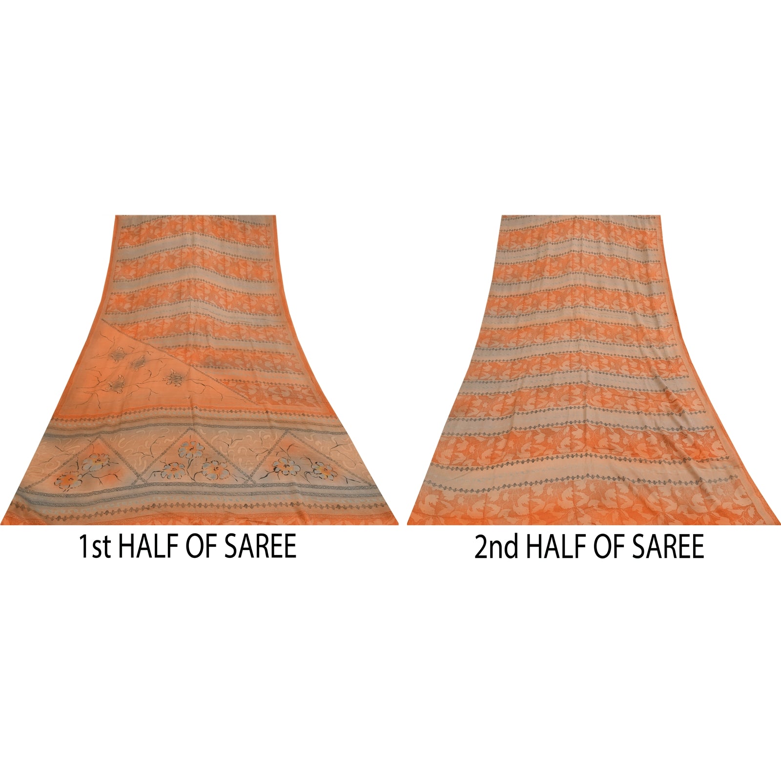 Sanskriti Vintage Sarees Orange Pure Crepe Silk Printed Sari 5+yd Craft Sustainable Fabric