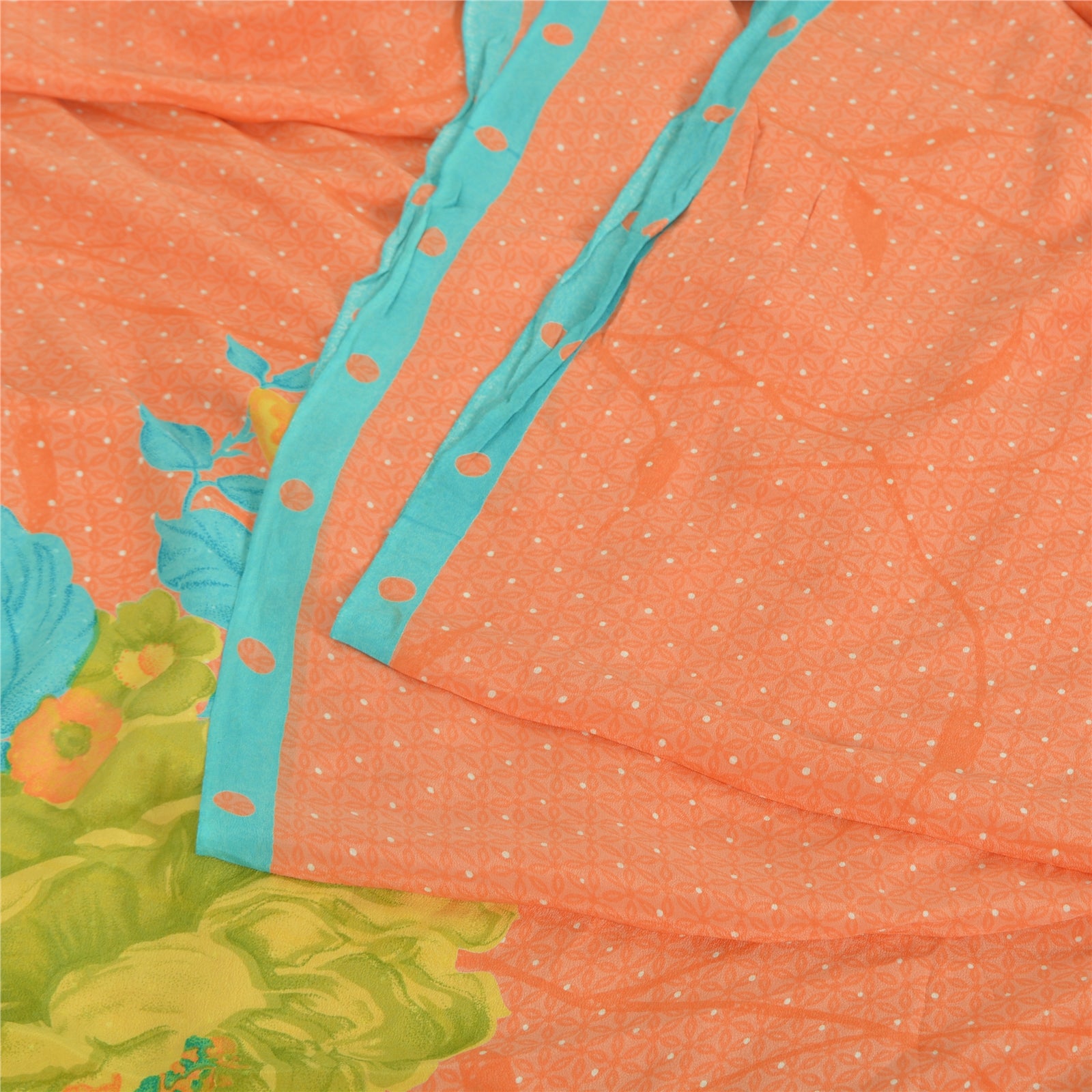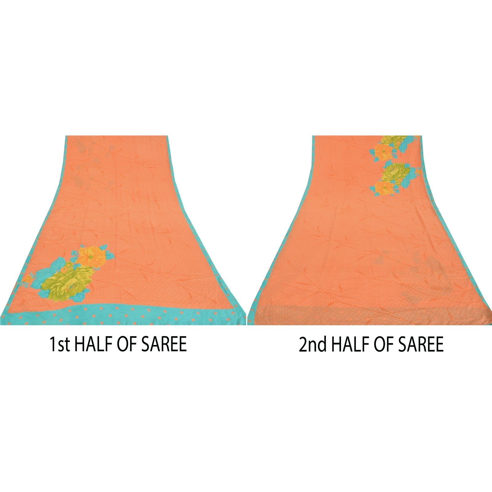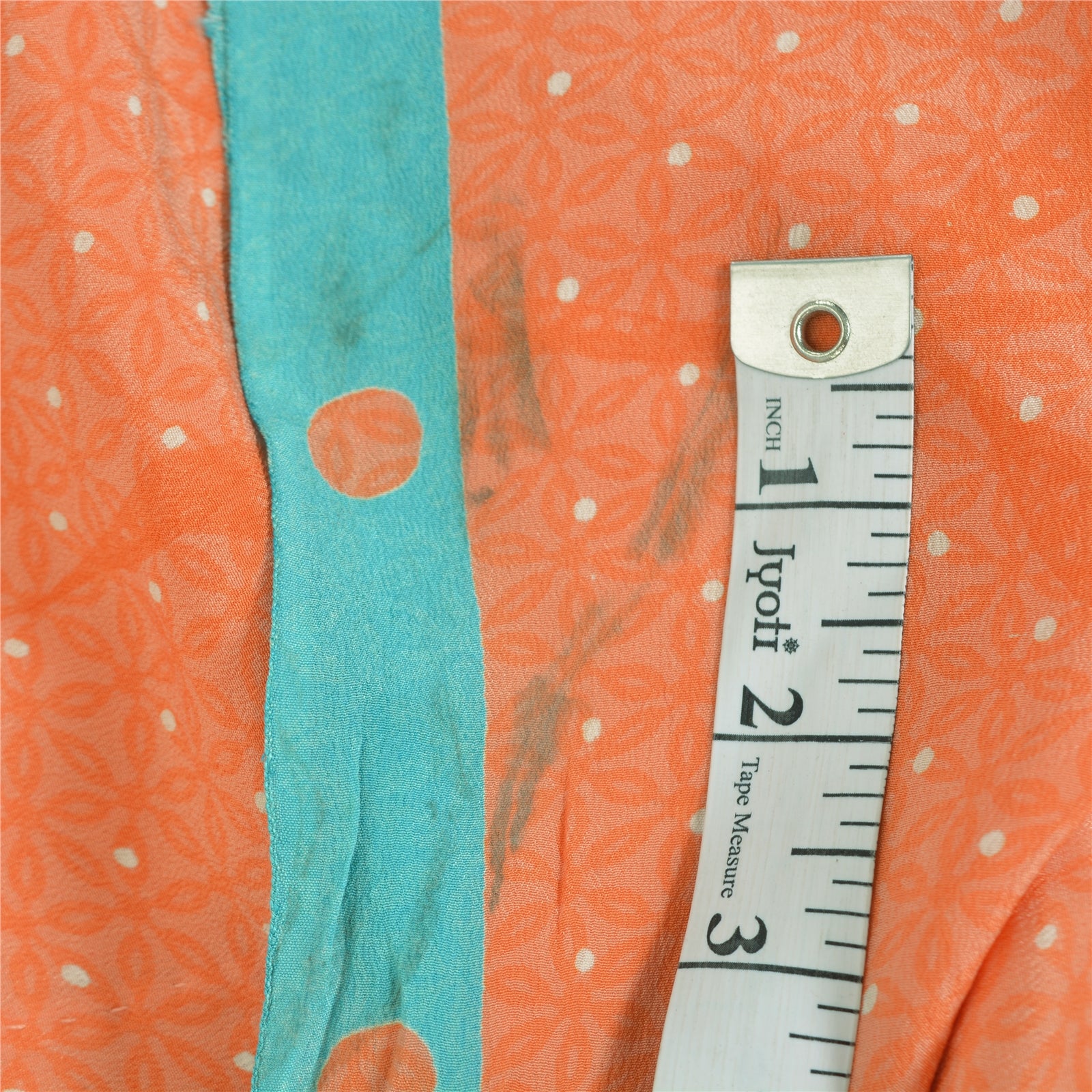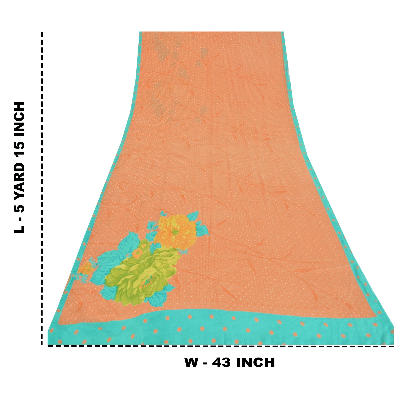 Sanskriti Vintage Sarees Orange Pure Crepe Silk Printed Sari 5yd Craft Sustainable Fabric