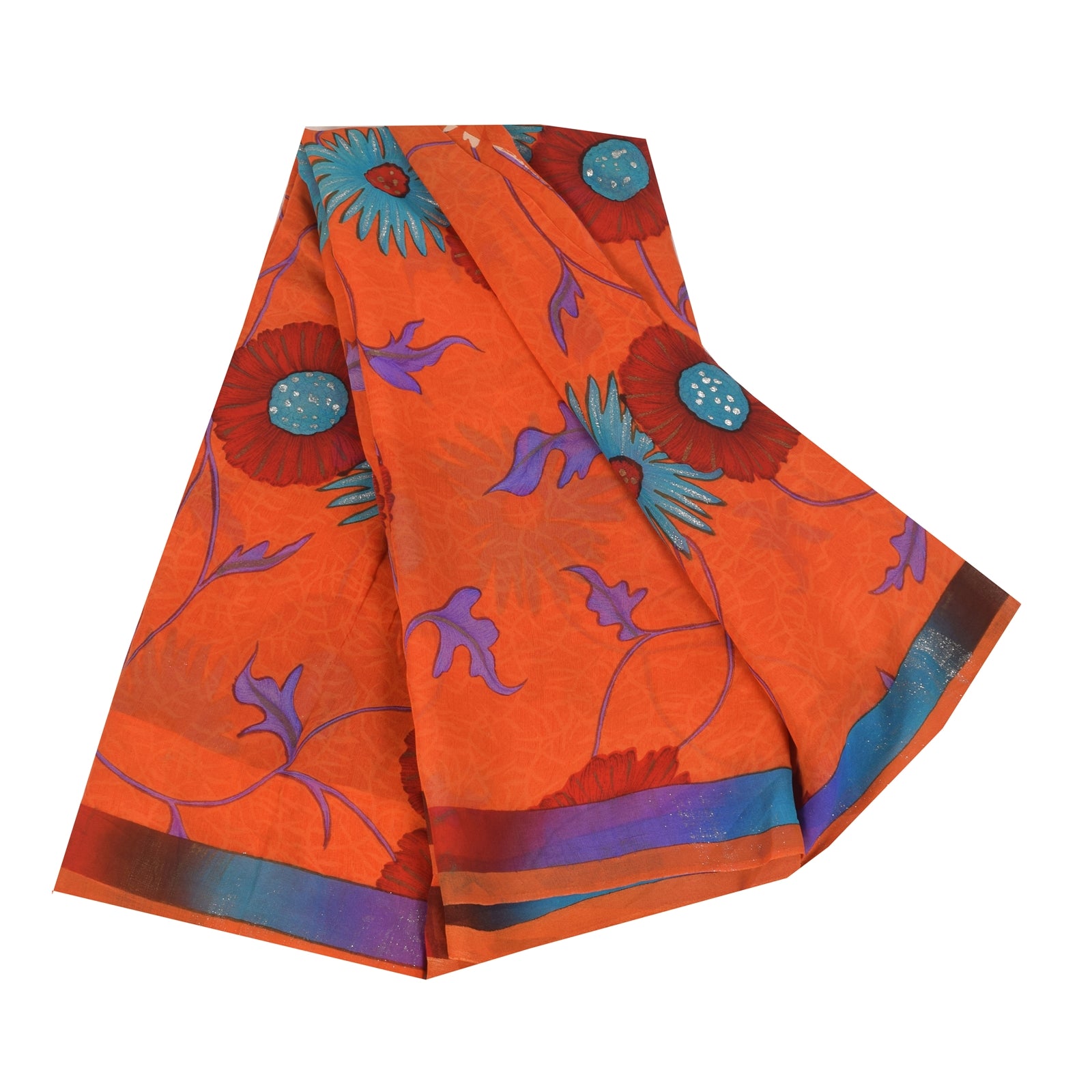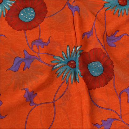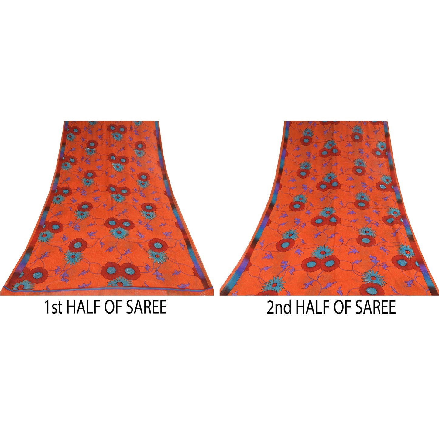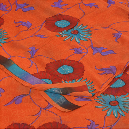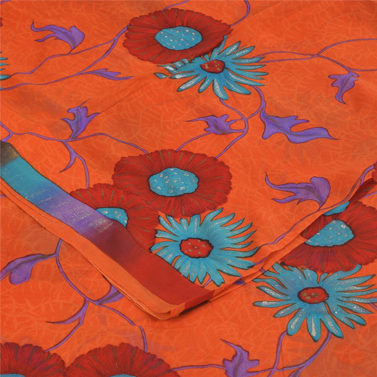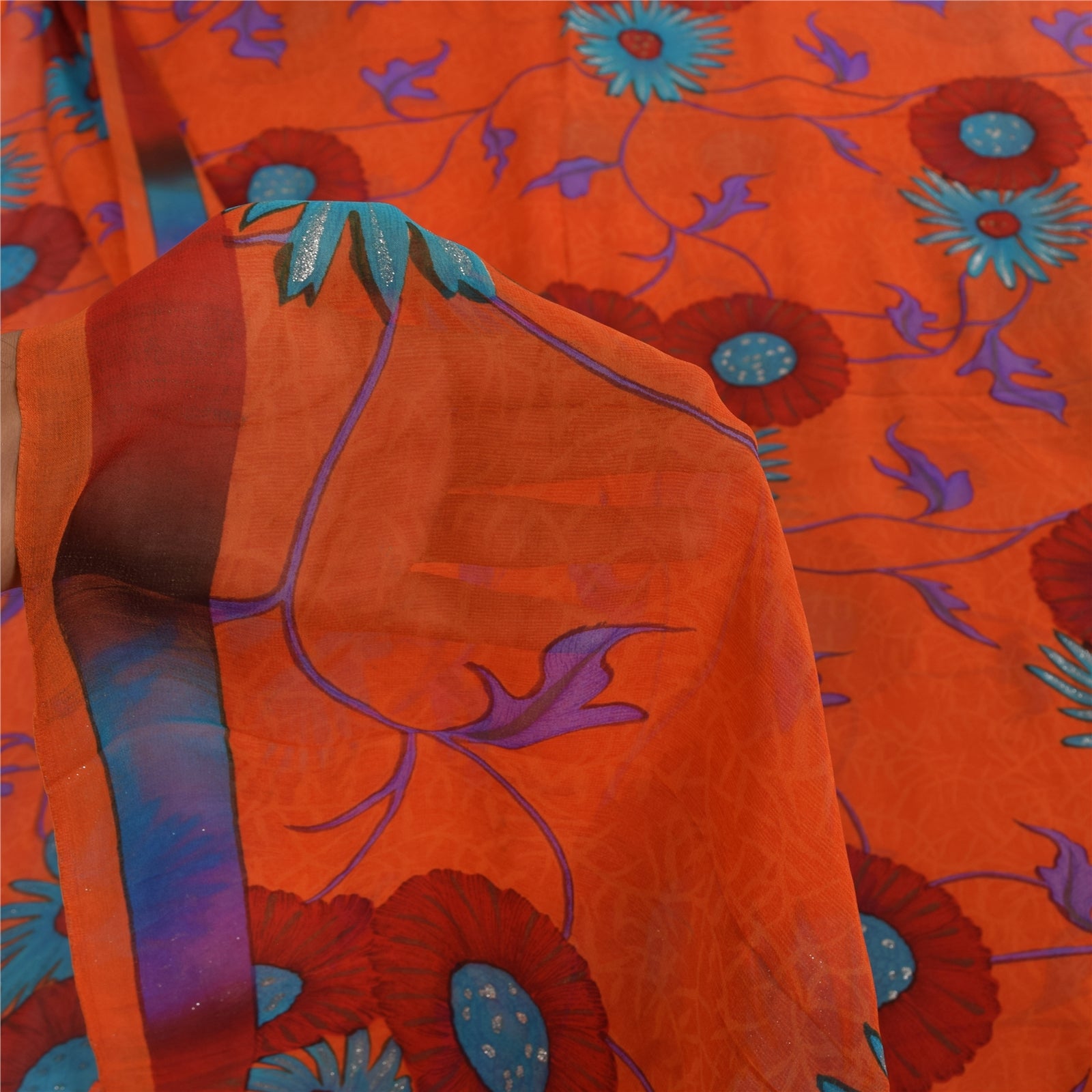 Sanskriti Vintage Sarees Orange Pure Georgette Printed Sari 5+yd Craft Fabric