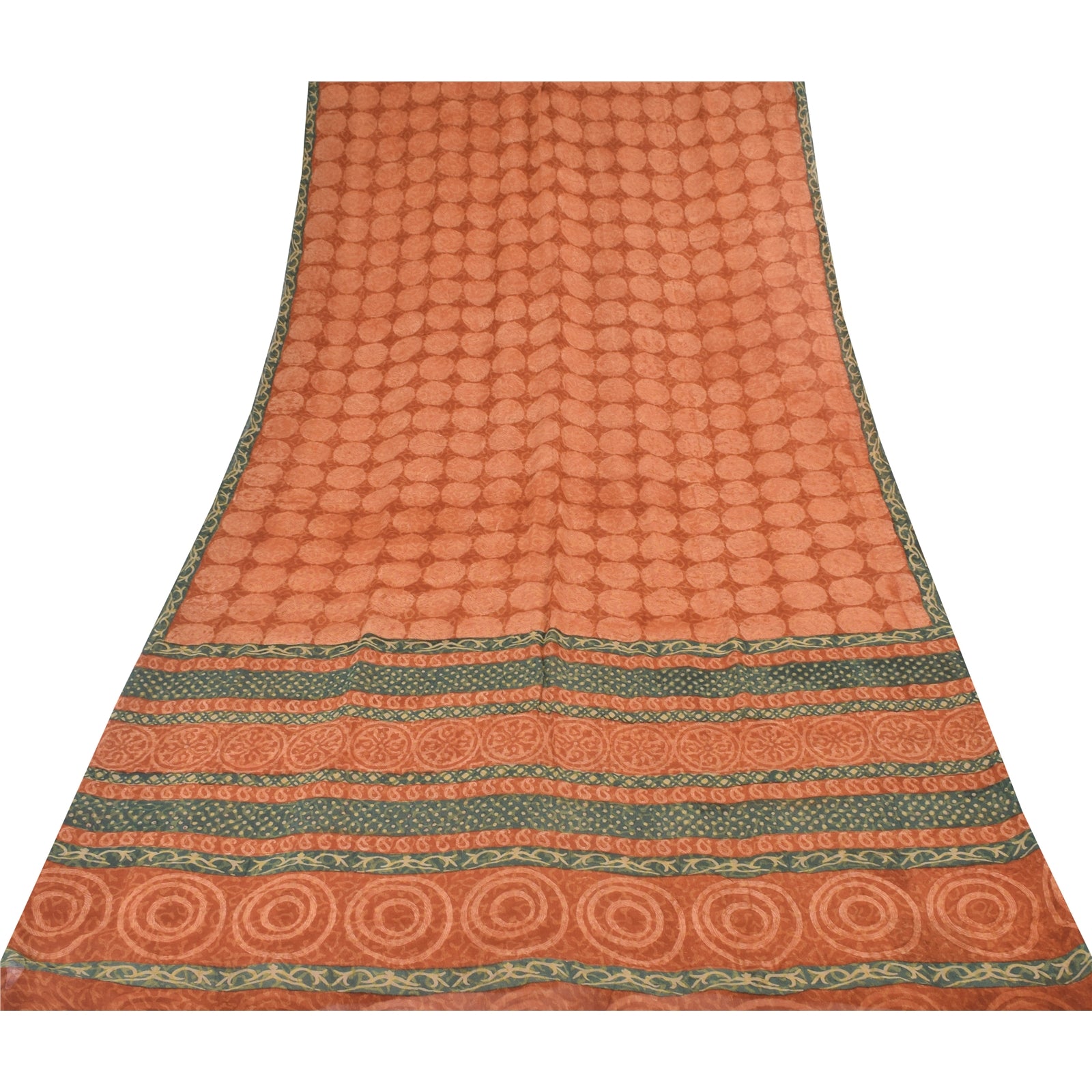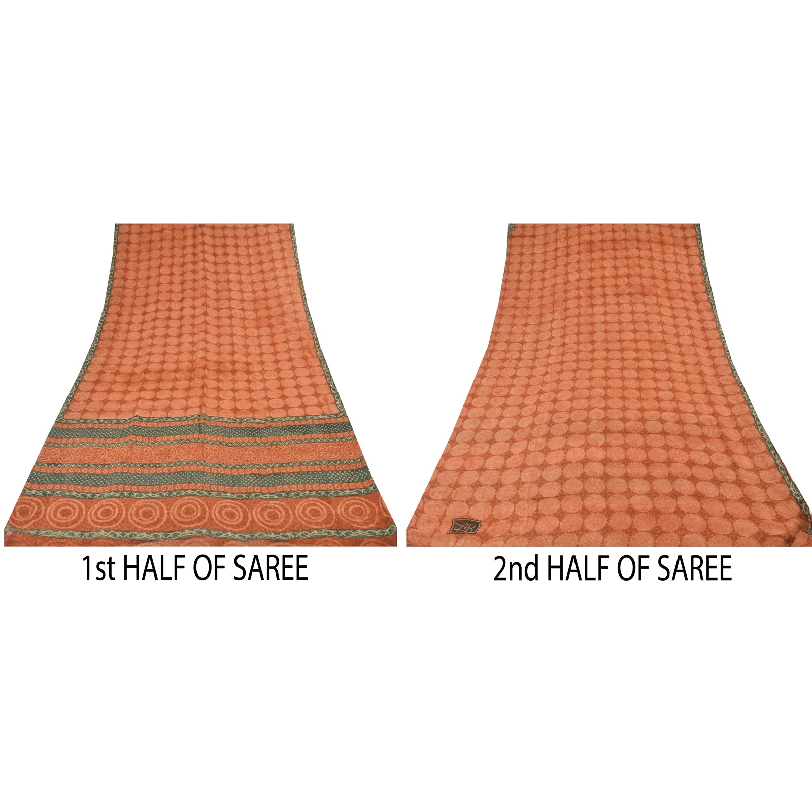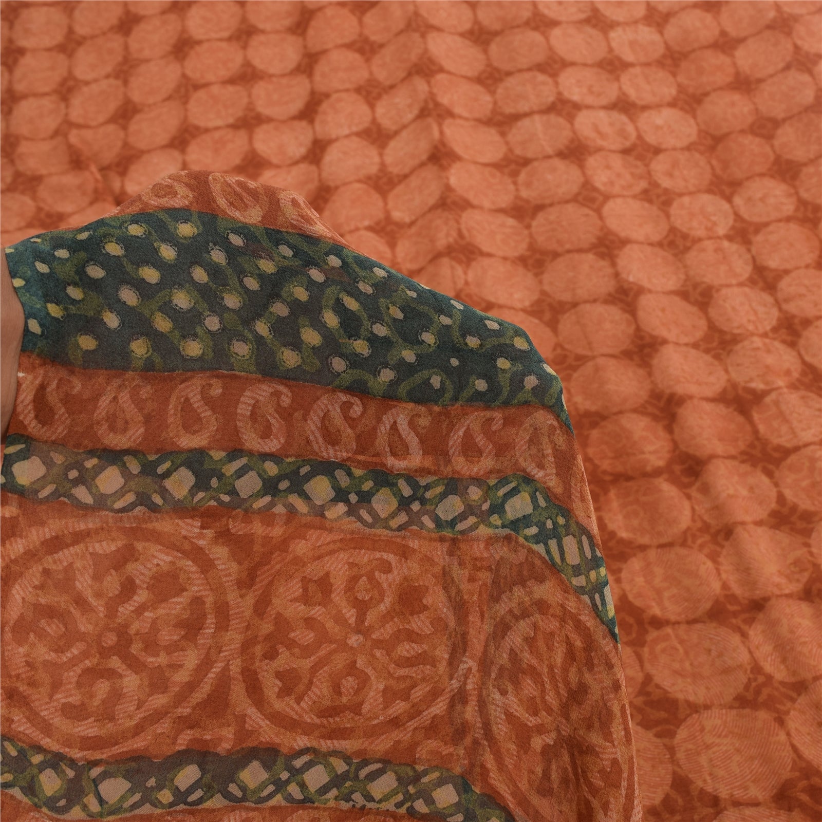 Sanskriti Vintage Sarees Orange Pure Georgette Silk Print Sari 5yd Craft Sustainable Fabric