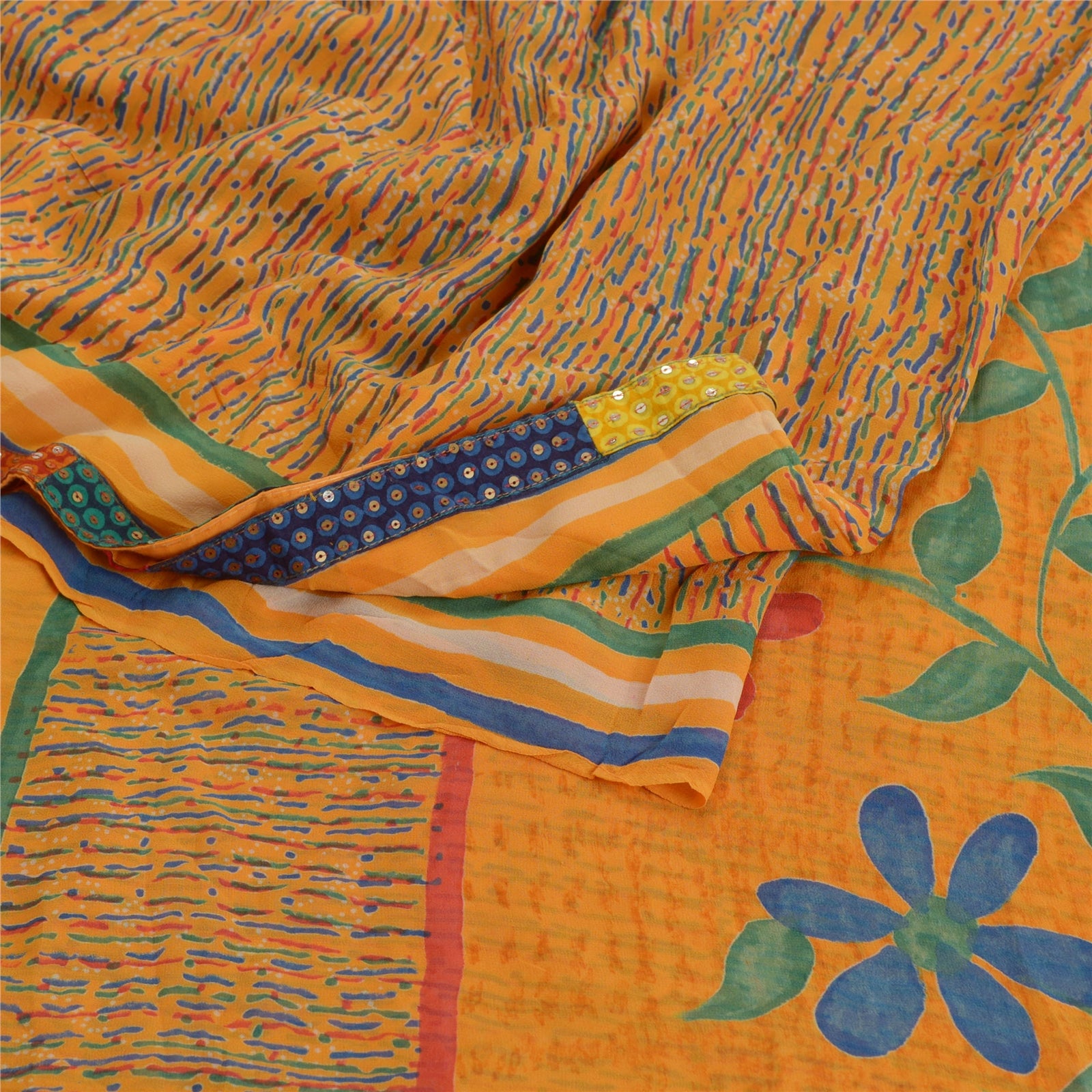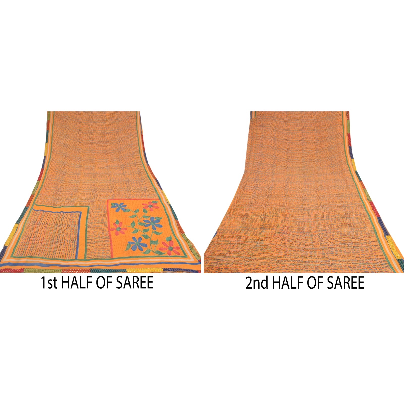 Sanskriti Vintage Sarees Orange Pure Georgette Silk Printed Sari Craft Sustainable Fabric