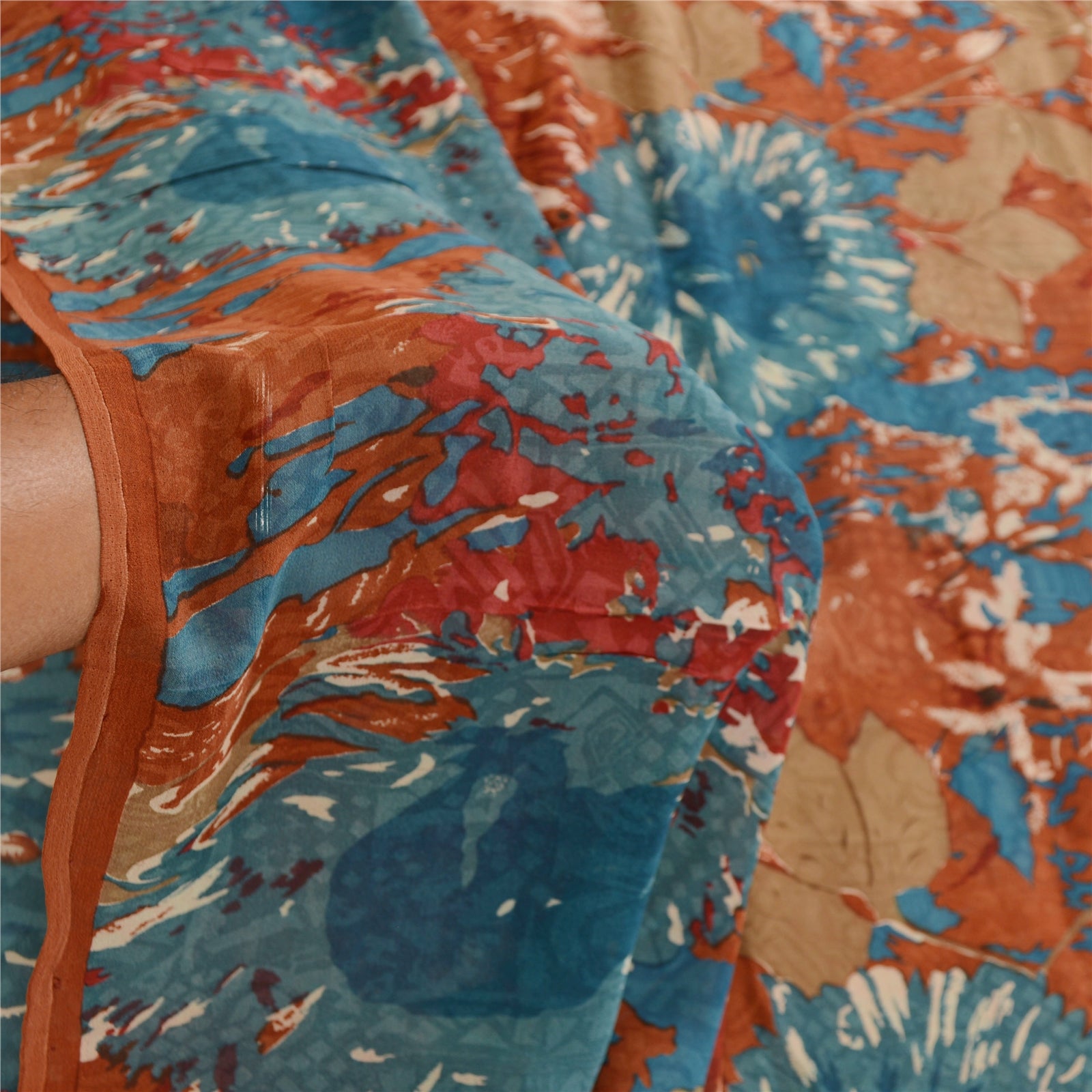 Beautiful orange colored pure georgette silk printed saree. Allover sari has printed floral design. What is special about this saree? Brilliant design on soft Sustainable Fabric is really enhancing the beauty of the saree.This unique vintage saree can be used for various crafting ideas even if you don't want to use it as a sari. Design a dress, use it as a as window dressing, upholstery, sarongs, throw, dress making and table linen much more.Let your creative juices flow and use this decorated Sustainable Fabric in multiple fashion.Internationalbuyers please note:Import duties, taxes, and charges are not included in the item price or postage cost. These charges are the buyer's responsibility. Please check with your country's customs office to determine what these additional costs will be prior to bidding or buying.Buyer will pay custom duty/tax. It is calculated and charged differently by every country. As a seller I do not have any control over it.VAT or sales tax is calculated by the platform at the time of checkout. Customs charge is payable at the time of delivery.