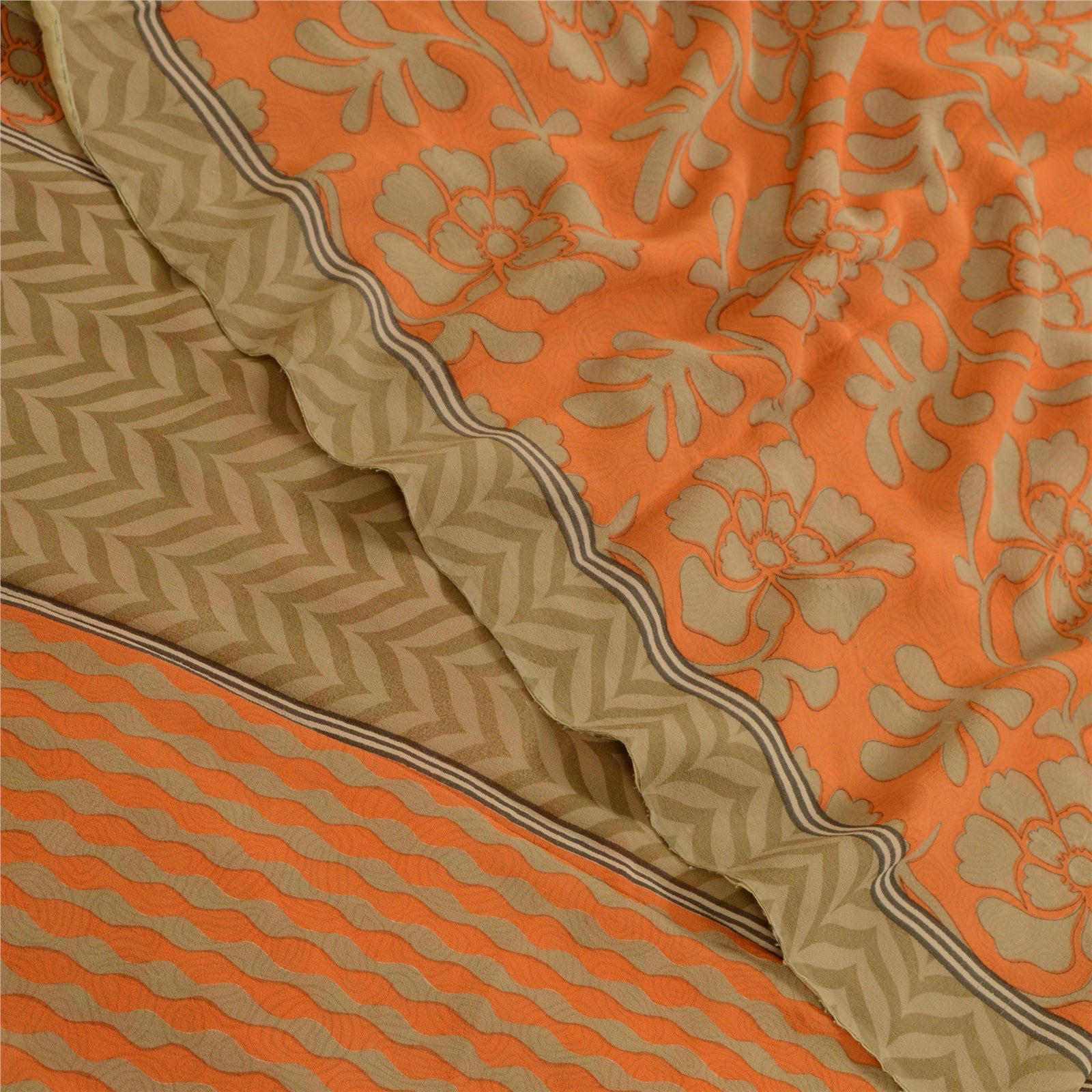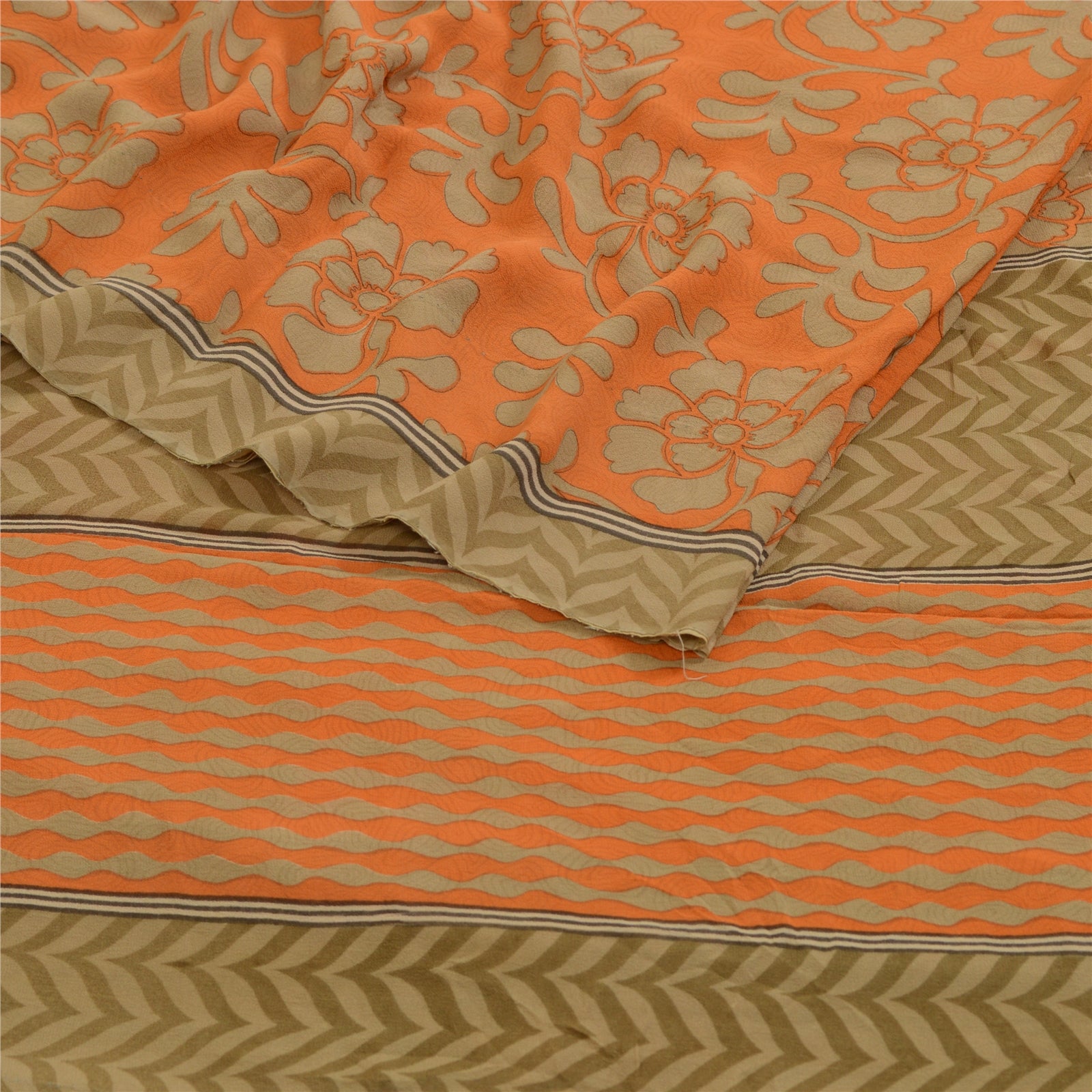 Sanskriti Vintage Sarees Orange Pure Georgette Silk Printed Sari Craft Sustainable Fabric