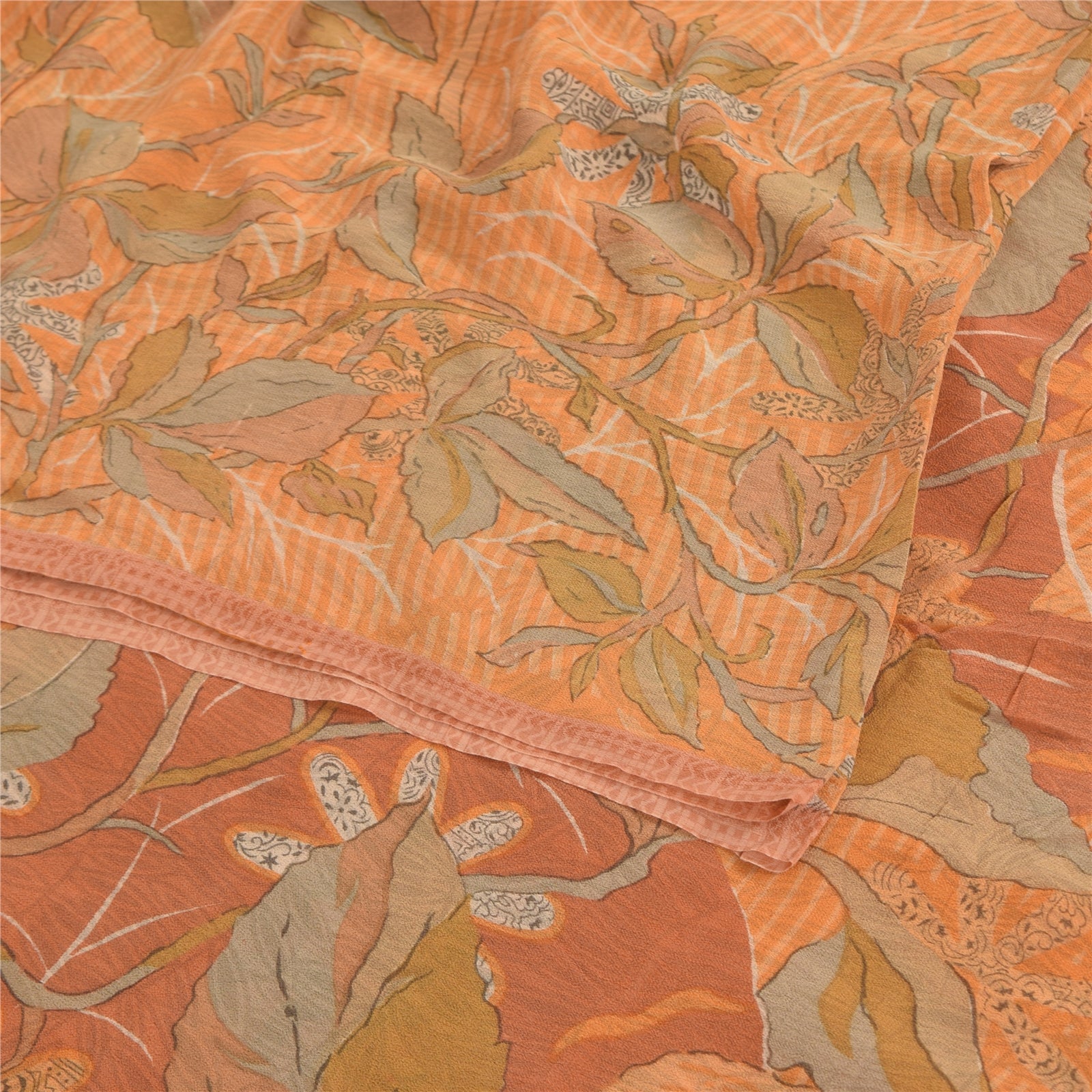Sanskriti Vintage Sarees Orange Pure Georgette Silk Printed Sari Craft Sustainable Fabric