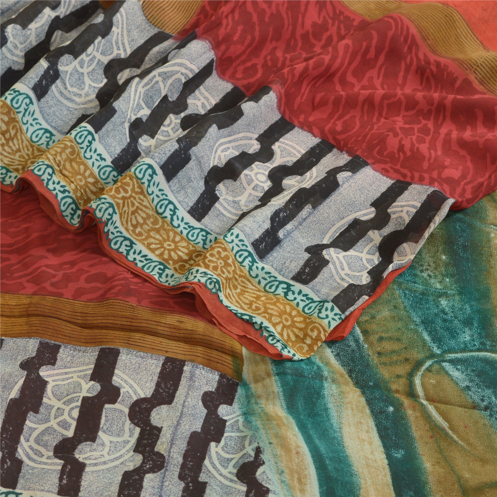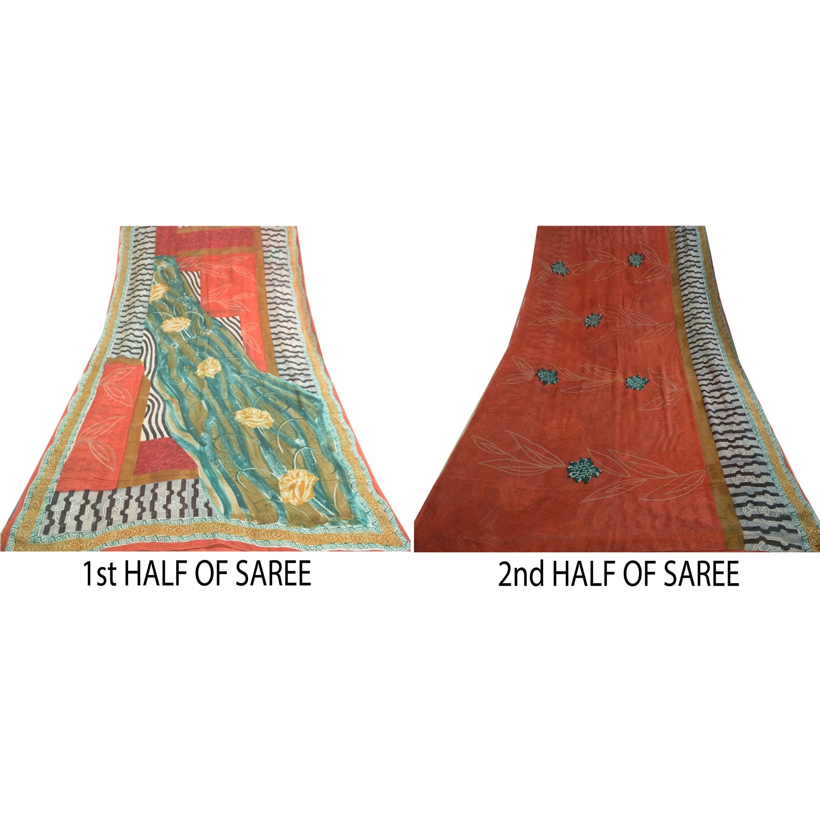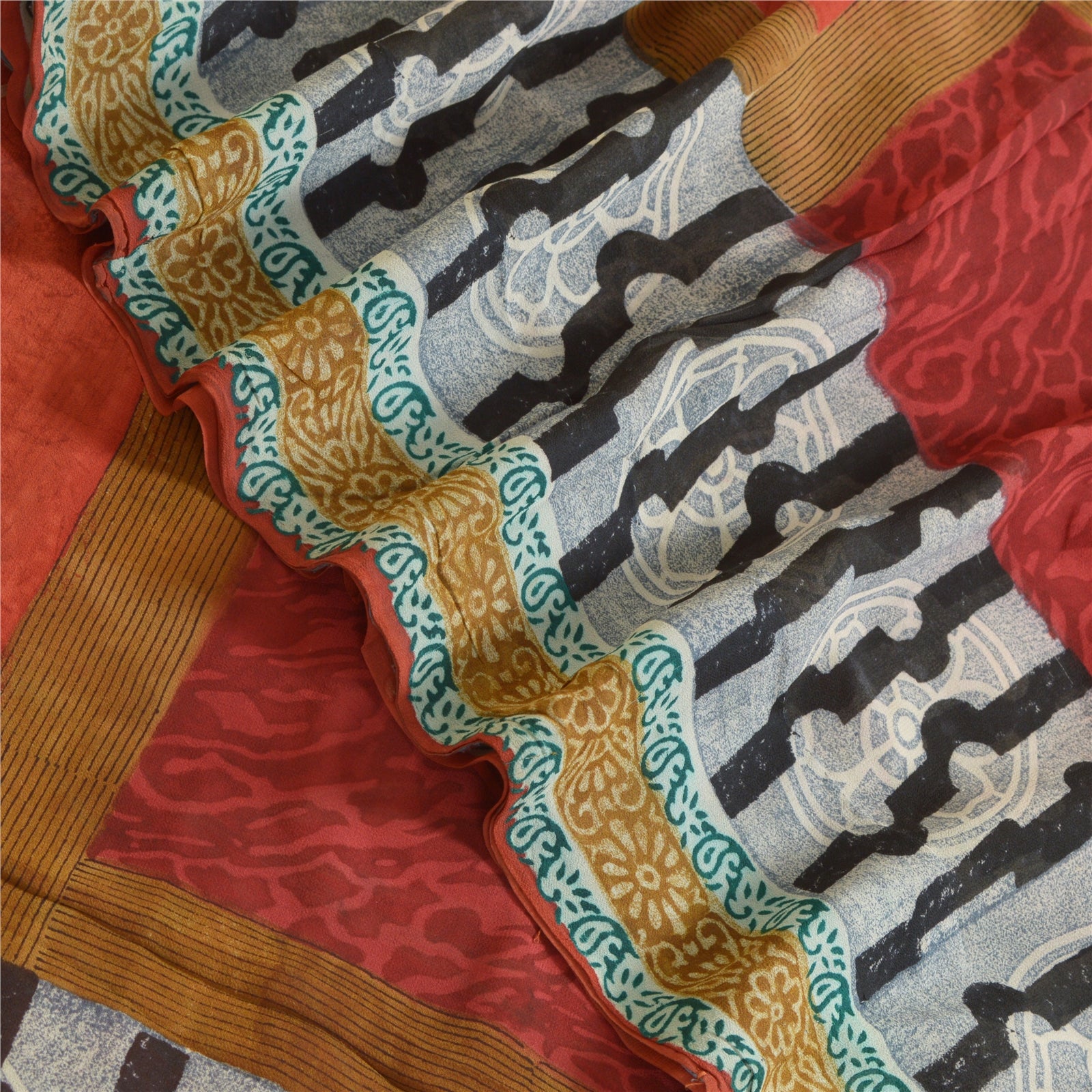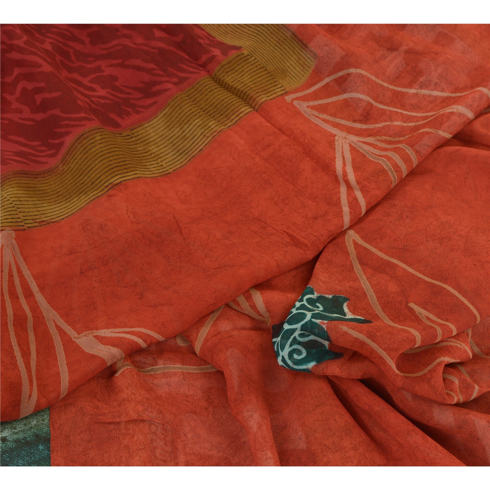 Sanskriti Vintage Sarees Orange Pure Georgette Silk Printed Sari Craft Sustainable Fabric