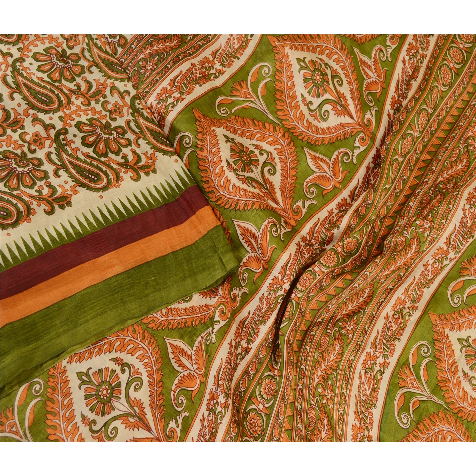 Sanskriti Vintage Sarees Orange Pure Silk Printed Sari Floral 5yd Craft Sustainable Fabric