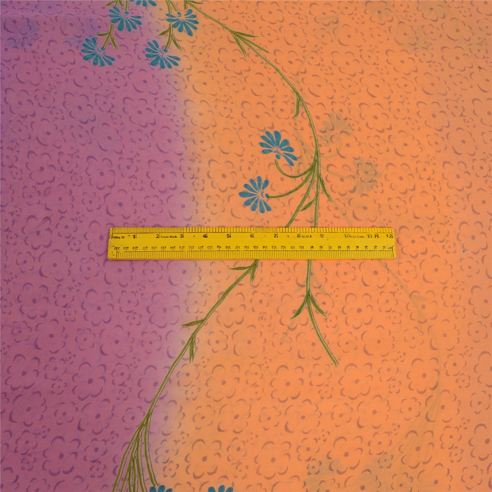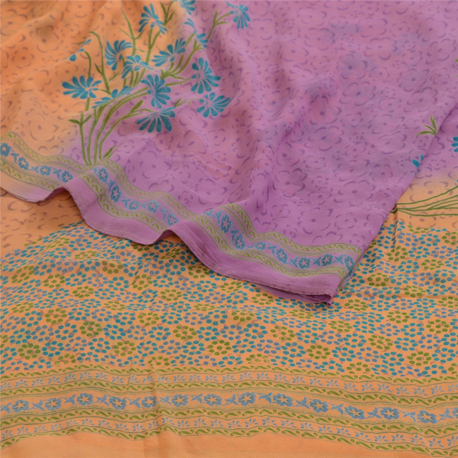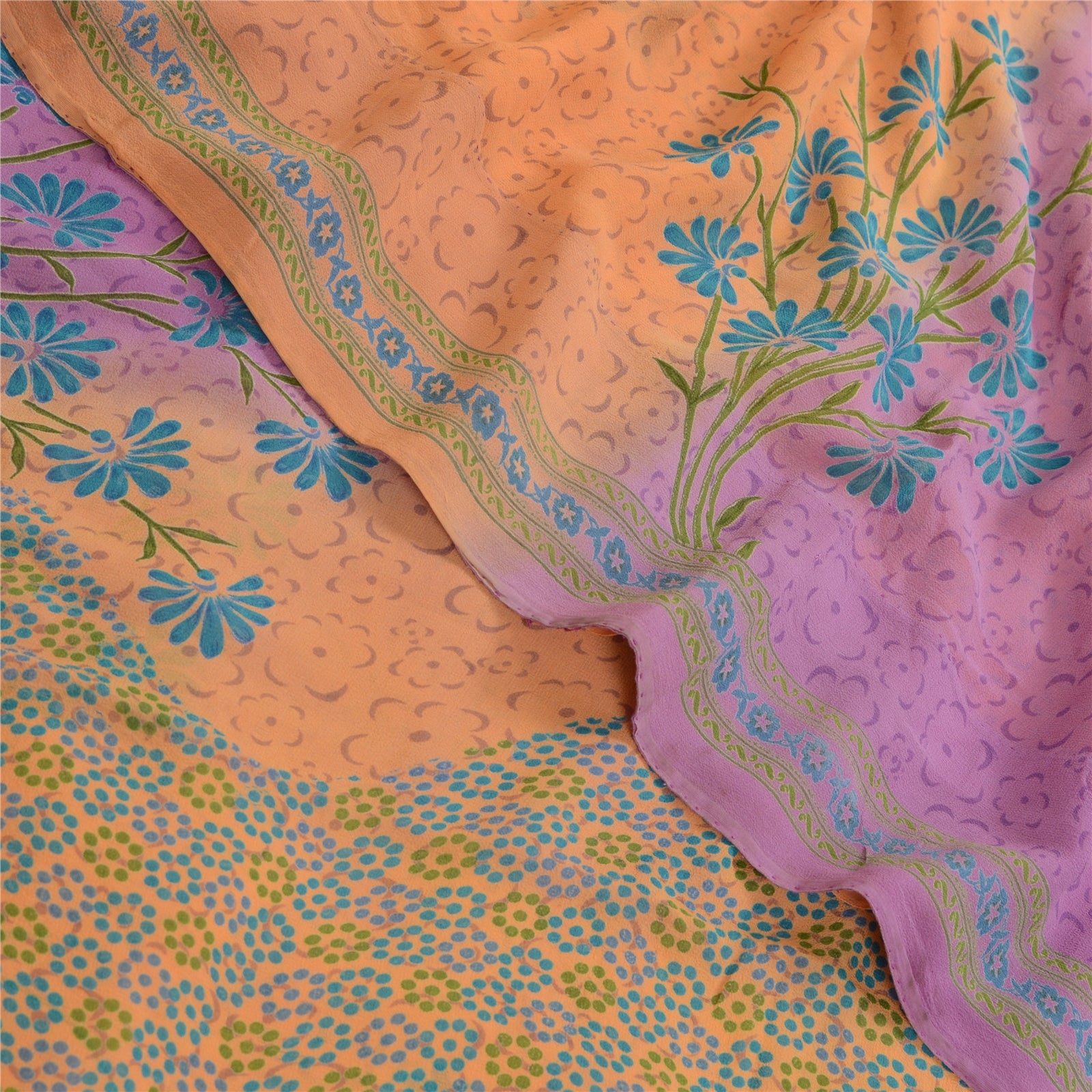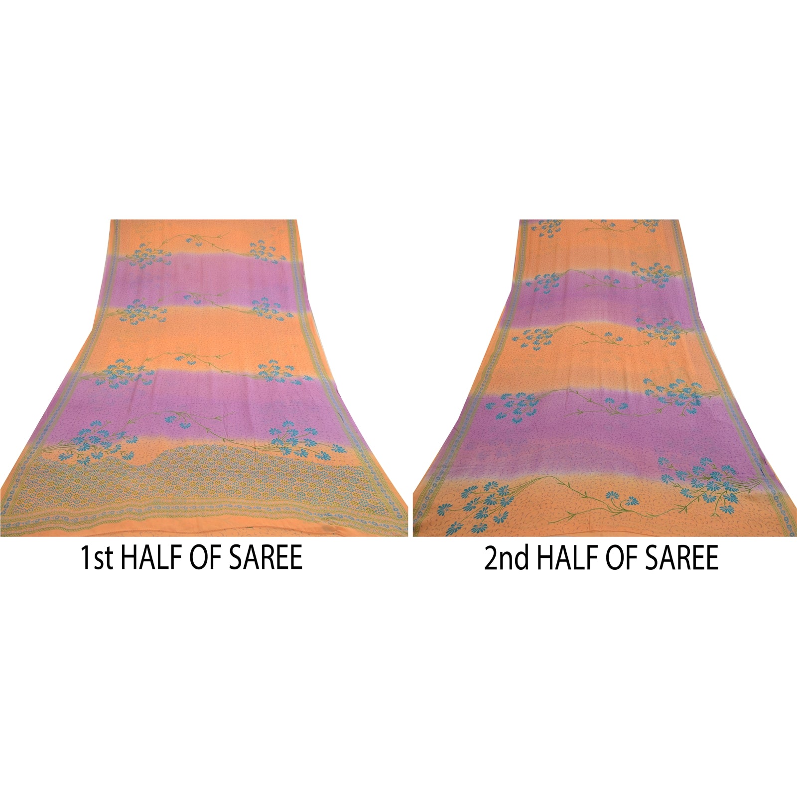 Sanskriti Vintage Sarees Orange/Purple Pure Georgette Printed Sari Craft Sustainable Fabric