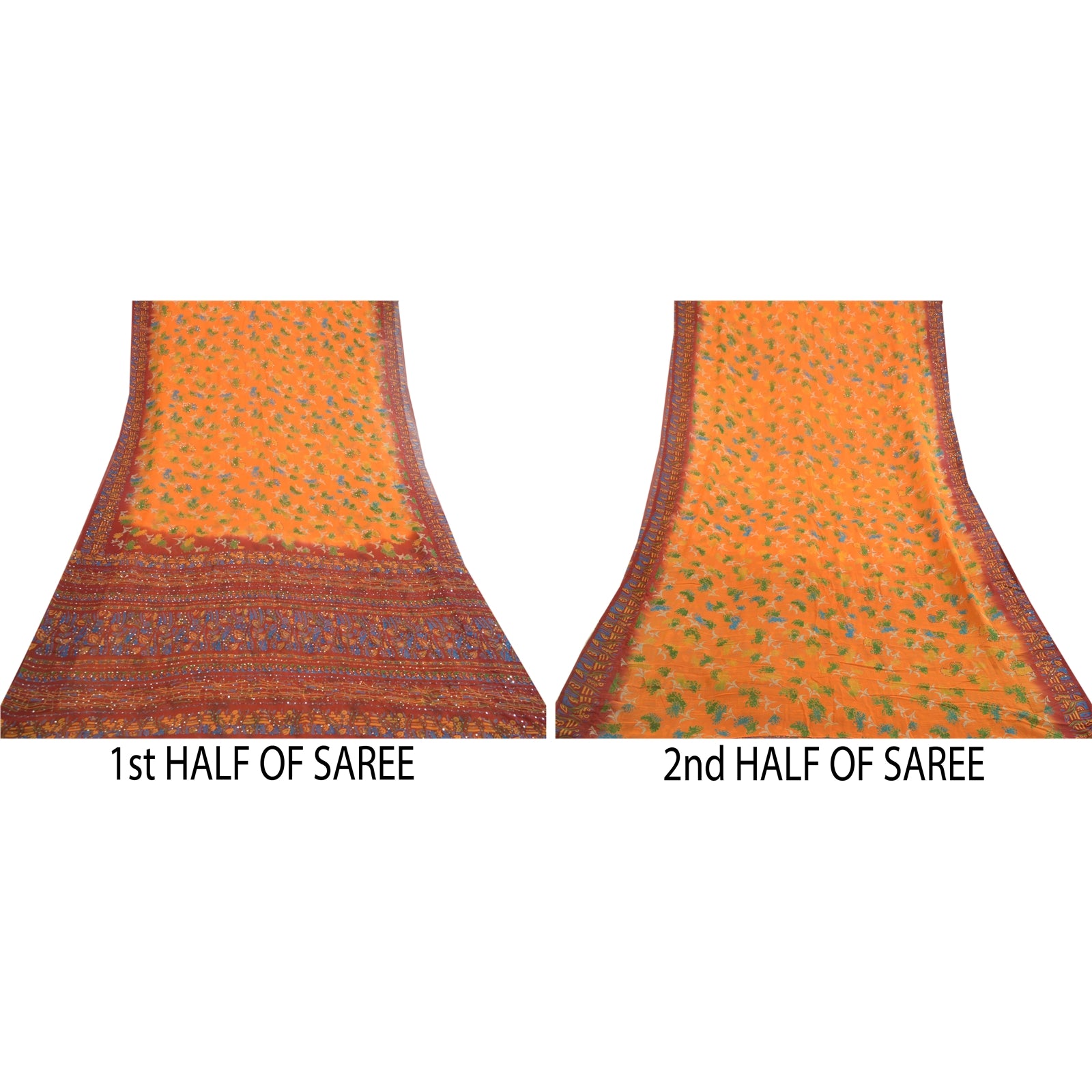 THE ITEM COLOR OR SHADE MAY BE DARKER OR LIGHTER THAN THE PICTURE.' Beautiful orange & dark red colored pure georgette silk printed & hand embroidered saree. Pallu & Border has printed floral design with sequins work. Similar work in center part of saree. Saree has mild stain on it. What is special about this saree? Brilliant design on soft Sustainable Fabric is really enhancing the beauty of the saree. This unique vintage saree can be used for various crafting ideas even if you don't want to use it as a sari. Design a dress, use it as a as window dressing, upholstery, sarongs, throw, dress making and table linen much more. Let your creative juices flow and use this decorated Sustainable Fabric in multiple fashion. International buyers please note: Import duties, taxes, and charges are not included in the item price or postage cost. These charges are the buyer's responsibility. Please check with your country's customs office to determine what these additional costs will be prior to bidding or buying.Buyer will pay custom duty/tax. It is calculated and charged differently by every country. As a seller I do not have any control over it. VAT or sales tax is calculated by the platform at the time of checkout. Customs charge is payable at the time of delivery.