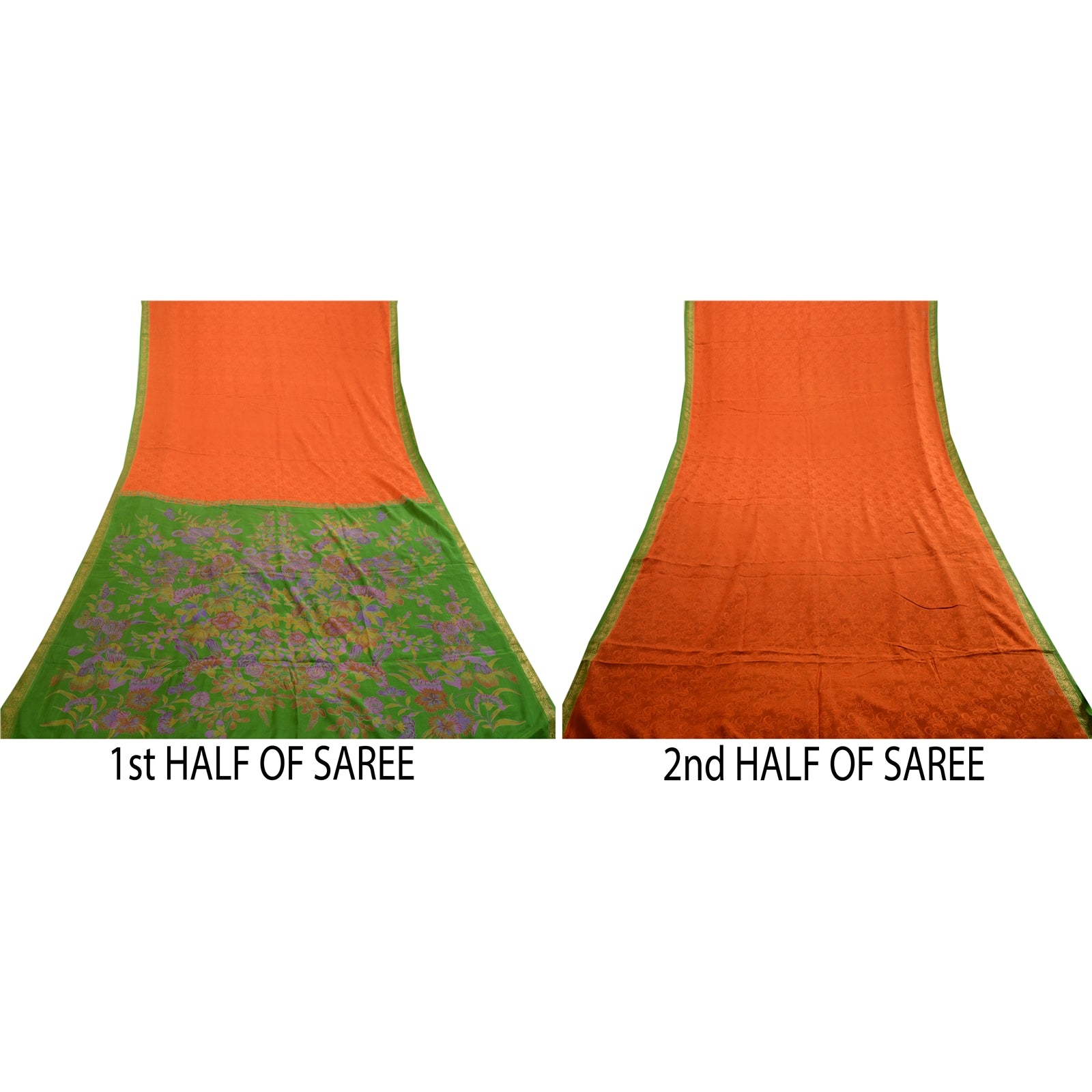 THE ITEM COLOR OR SHADE MAY BE DARKER OR LIGHTER THAN THE PICTURE.' Beautiful orange & green colored pure silk printed & woven saree. Pallu & Border has printed floral design & golden zari woven work. Floral design with woven work in center part of saree. Saree has mild stain on it. What is special about this saree? Fabulous design is really enhancing the beauty of the saree.This unique vintage saree can be used for various crafting ideas even if you don't want to use it as a sari. Design a dress, use it as window,dressing, upholstery, sarongs, throw, dress making and table linen much more. Let your creative juices flow and use this decorated Sustainable Fabric in multiple fashion.. International buyers please note: Import duties, taxes, and charges are not included in the item price or postage cost. These charges are the buyer's responsibility. Please check with your country's customs office to determine what these additional costs will be prior to bidding or buying. Buyer will pay custom duty/tax. It is calculated and charged differently by every country. As a seller I do not have any control over it. VAT or sales tax is calculated by the platform at the time of checkout. Customs charge is payable at the time of delivery.'