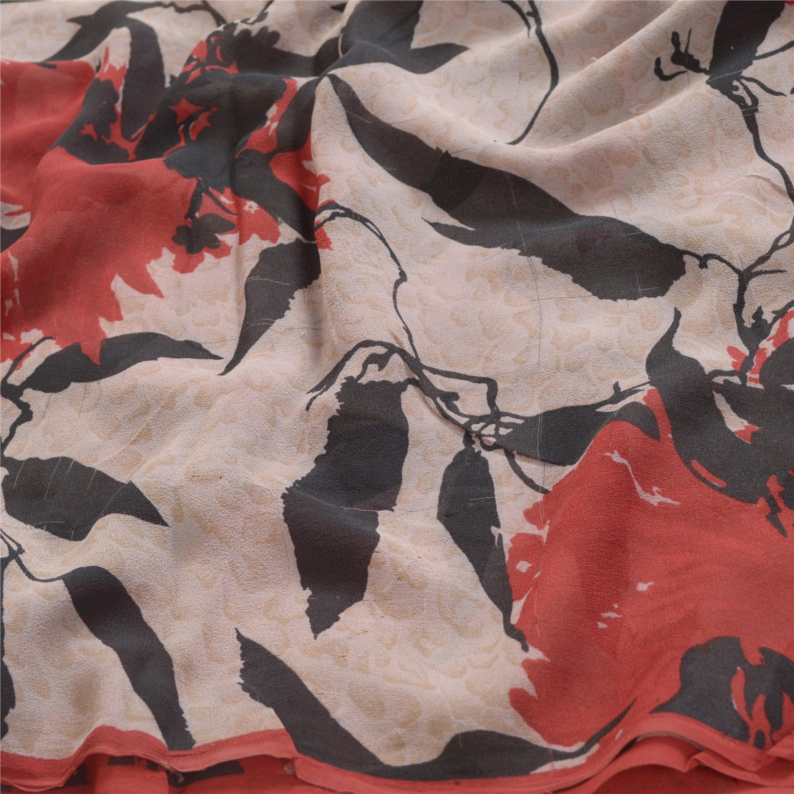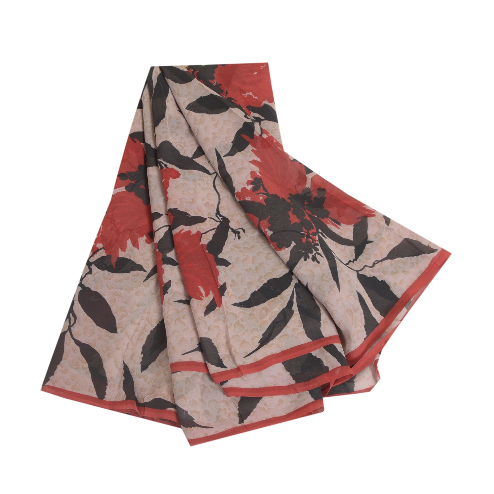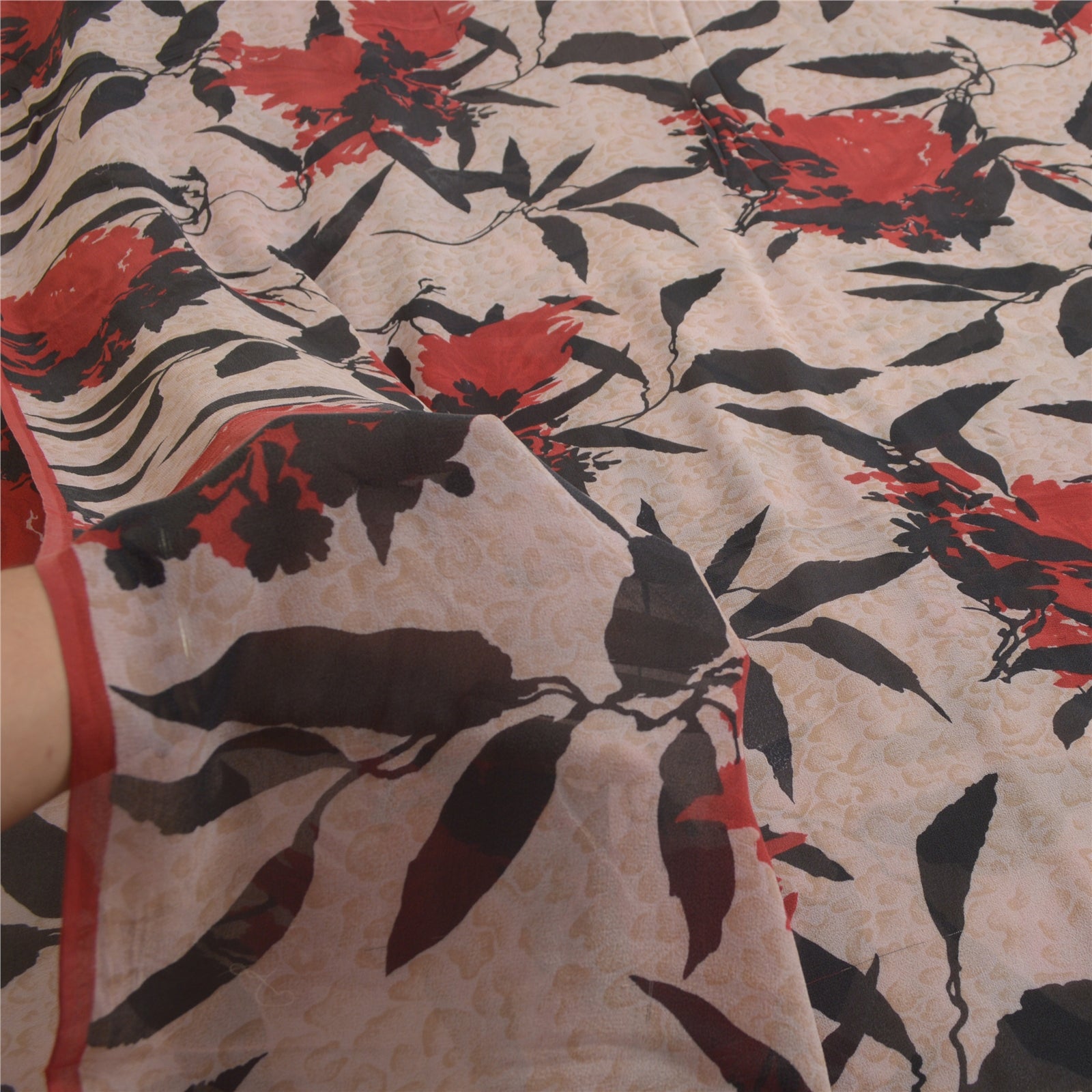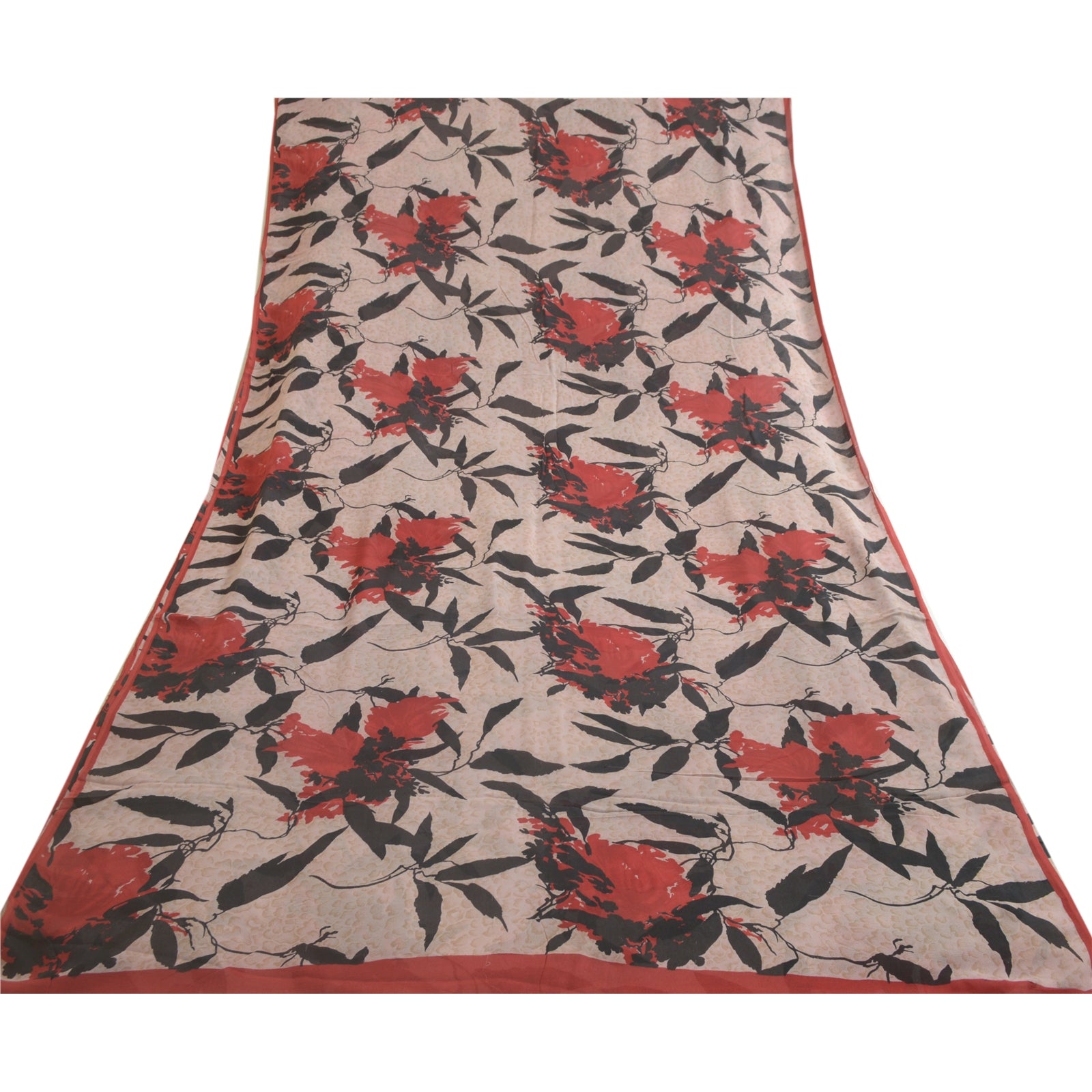 Sanskriti Vintage Sarees Pale-Cream Pure Georgette Silk Print Sari Craft Sustainable Fabric