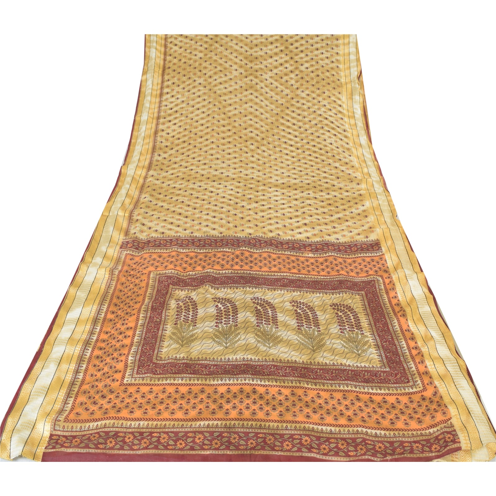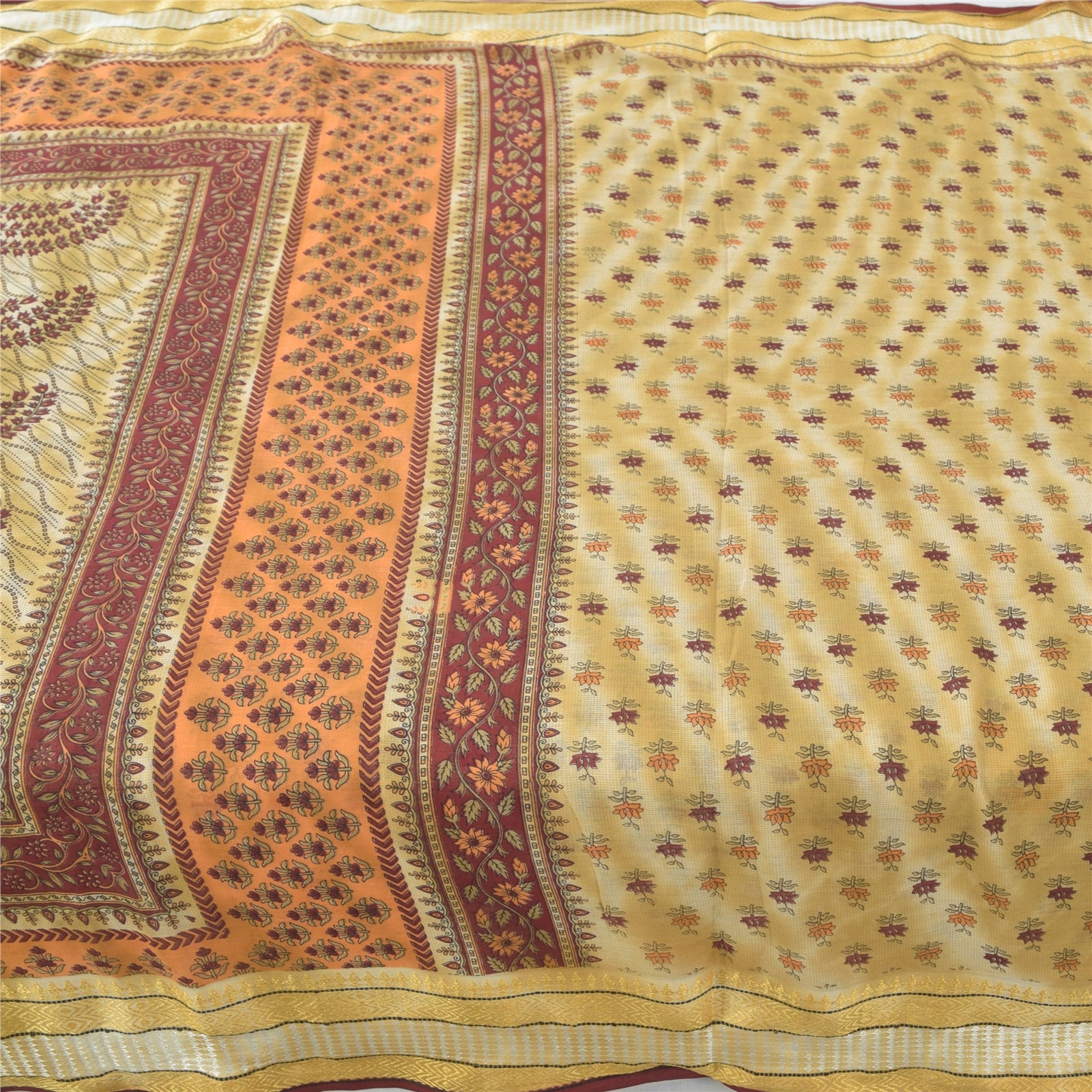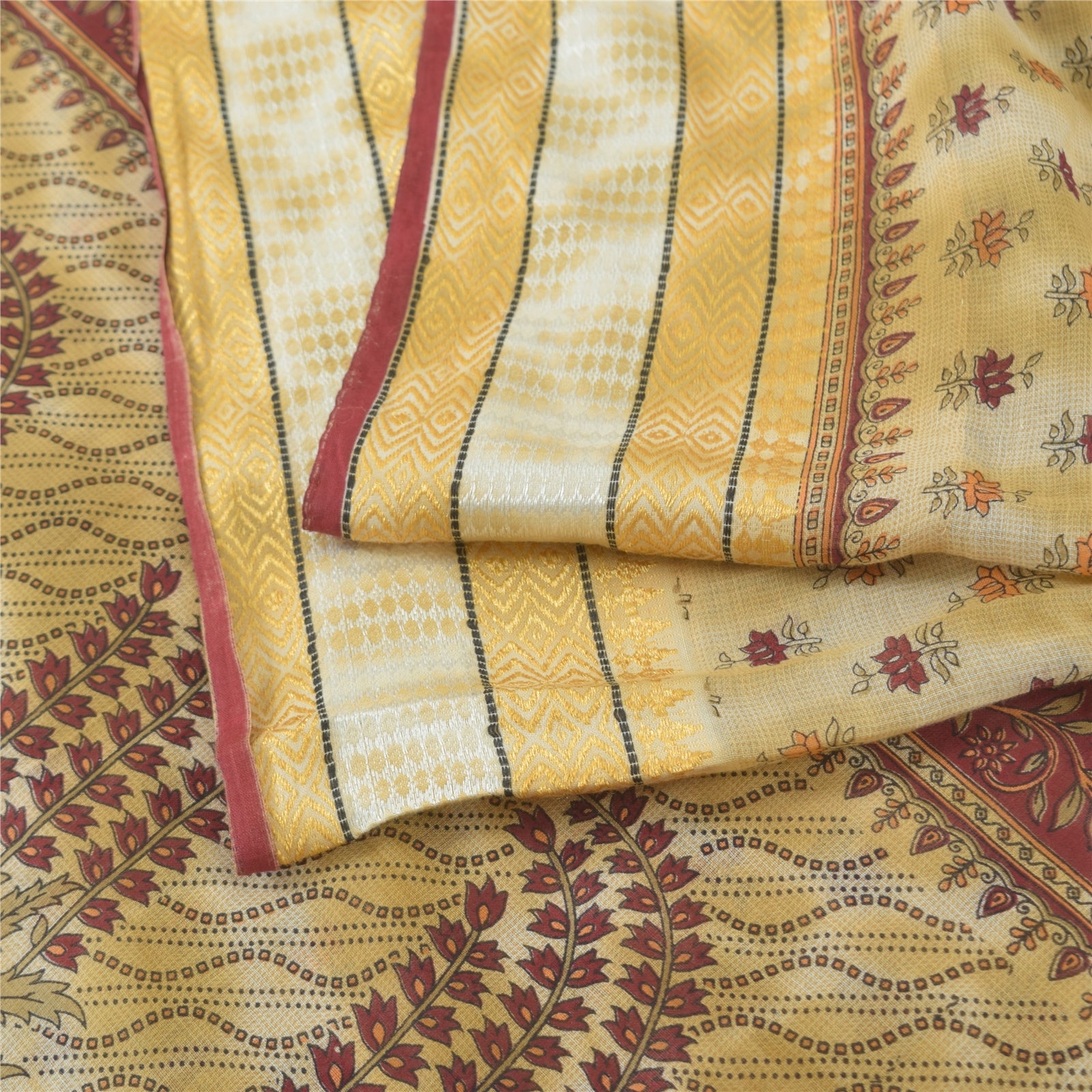 THE ITEM COLOR OR SHADE MAY BE DARKER OR LIGHTER THAN THE PICTURE. Attractive pale-yellow colored pure cotton printed sari. Pallu & Border has printed floral design. Similar design in center part of saree.. This unique vintage saree can be used for various crafting ideas even if you don't want to use it as a sari. Design a dress, use it as a as window dressing, upholstery, sarongs, throw, dress making and table linen much more. Let your creative juices flow and use this decorated Sustainable Fabric in multiple fashion. Shipping Note: 'International buyers please note: Import duties, taxes, and charges are not included in the item price or postage cost. These charges are the buyer's responsibility. Please check with your country's customs office to determine what these additional costs will be prior to bidding or buying. Buyer will pay custom duty/tax. It is calculated and charged differently by every country. As a seller I do not have any control over it. VAT or sales tax is calculated by the platform at the time of checkout. Customs charge is payable at the time of delivery.'