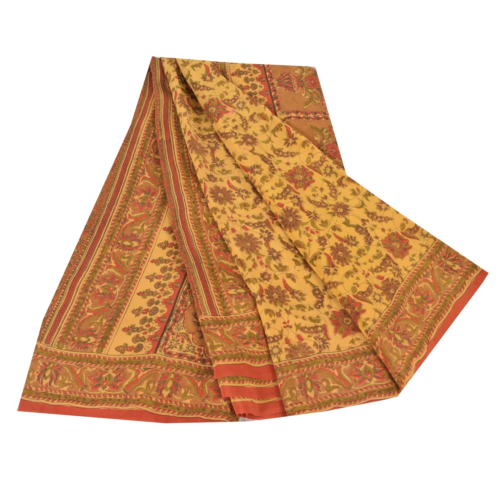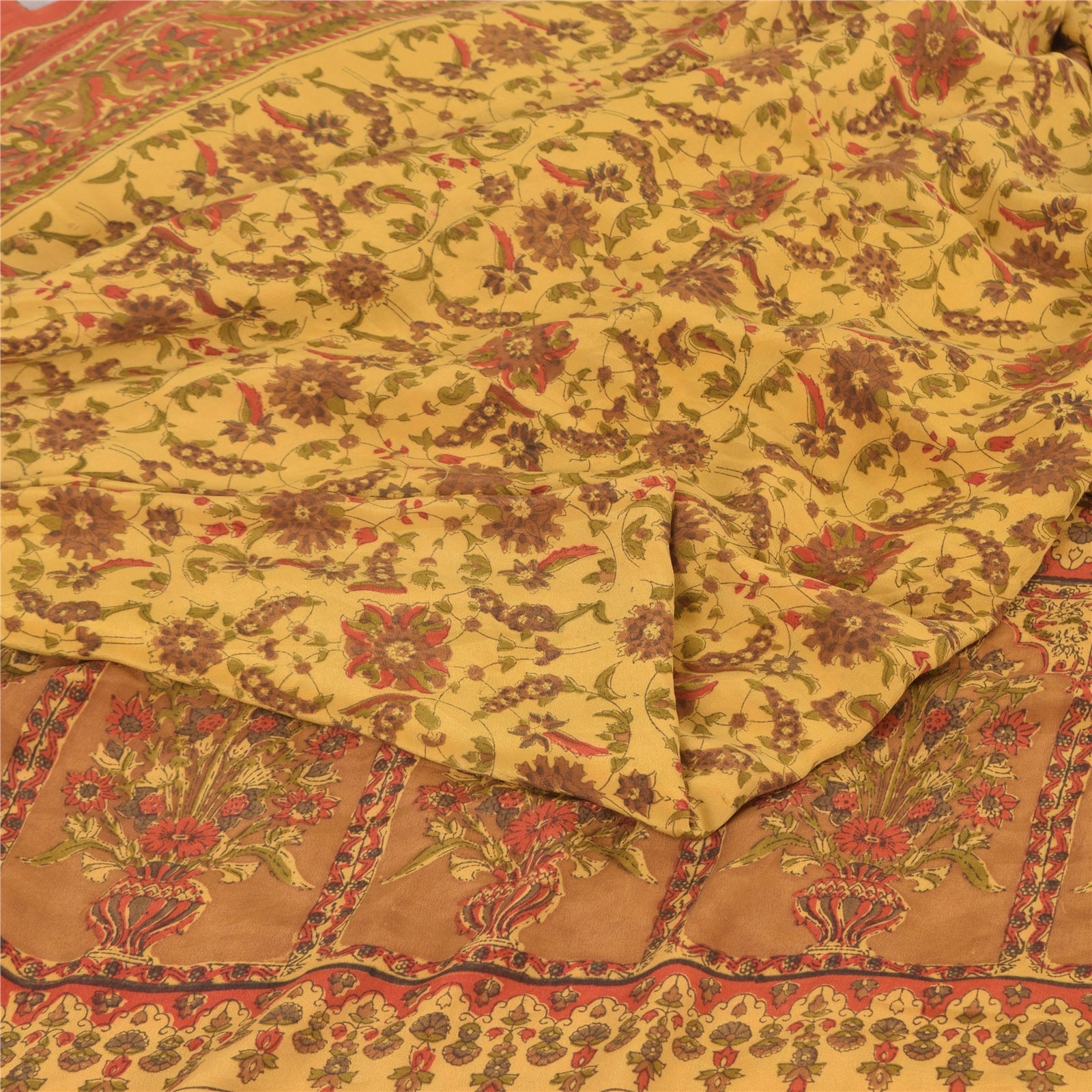 THE ITEM COLOR OR SHADE MAY BE DARKER OR LIGHTER THAN THE PICTURE.' • Beautiful pale yellow colored printed pure crepe silk saree . • Pallu & Border has printed floral design. • Floral design in center part of sari . This unique vintage saree can be used for various crafting ideas even if you don't want to use it as a sari. Design a dress, use it as a as window dressing, upholstery, sarongs, throw, dress making and table linen much more. Let your creative juices flow and use this decorated Sustainable Fabric in multiple fashion. International buyers please note: Import duties, taxes, and charges are not included in the item price or postage cost. These charges are the buyer's responsibility. Please check with your country's customs office to determine what these additional costs will be prior to bidding or buying.Buyer will pay custom duty/tax. It is calculated and charged differently by every country. As a seller I do not have any control over it. VAT or sales tax is calculated by the platform at the time of checkout. Customs charge is payable at the time of delivery.