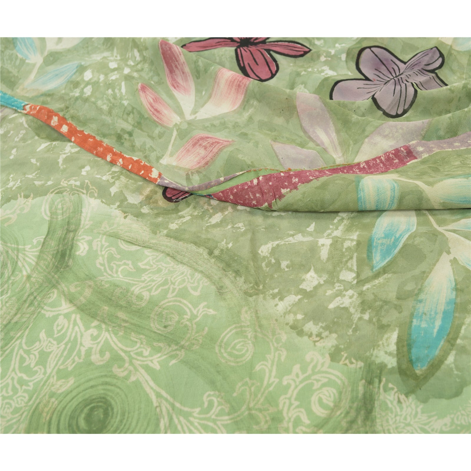 THE ITEM COLOR OR SHADE MAY BE DARKER OR LIGHTER THAN THE PICTURE.' Beautiful pastel-green colored pure georgette silk printed saree. Pallu & border has printed floral design. Similar design in center part of saree. Saree has mild stain on it. What is special about this saree? Brilliant design on soft Sustainable Fabric is really enhancing the beauty of the saree. This unique vintage saree can be used for various crafting ideas even if you don't want to use it as a sari. Design a dress, use it as a as window dressing, upholstery, sarongs, throw, dress making and table linen much more. Let your creative juices flow and use this decorated Sustainable Fabric in multiple fashion. International buyers please note: Import duties, taxes, and charges are not included in the item price or postage cost. These charges are the buyer's responsibility. Please check with your country's customs office to determine what these additional costs will be prior to bidding or buying.Buyer will pay custom duty/tax. It is calculated and charged differently by every country. As a seller I do not have any control over it. VAT or sales tax is calculated by the platform at the time of checkout. Customs charge is payable at the time of delivery.