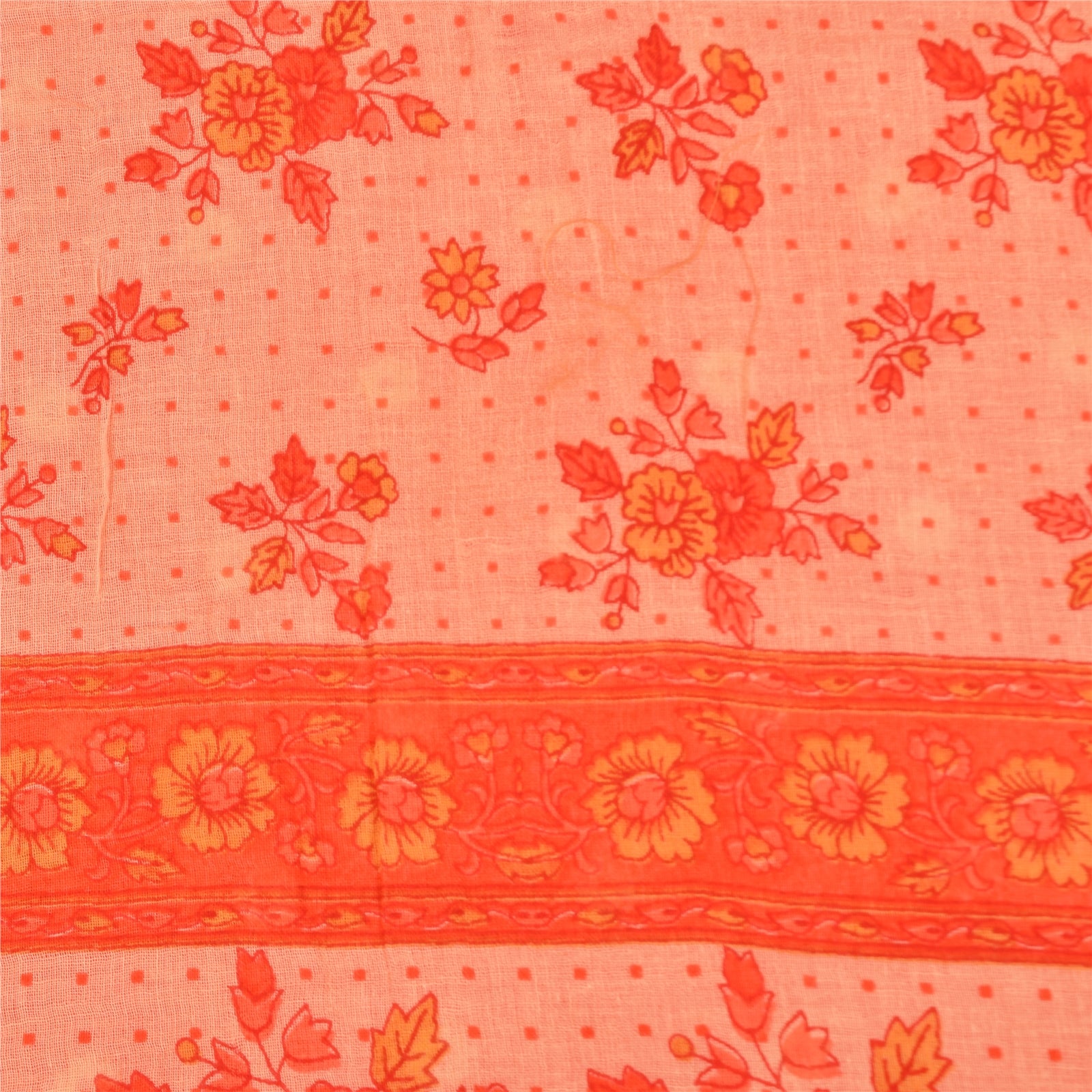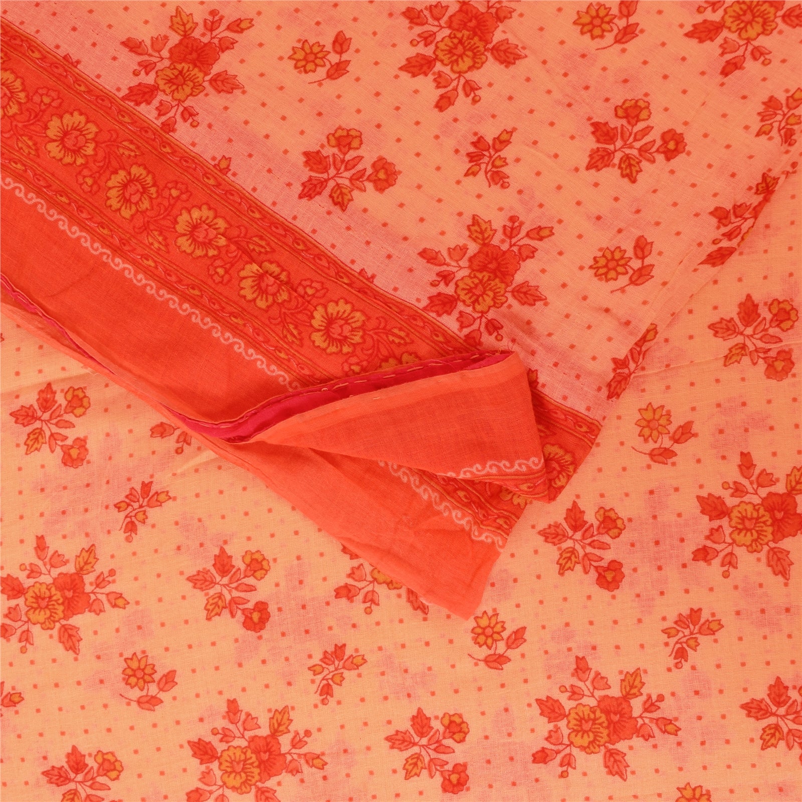 THE ITEM COLOR OR SHADE MAY BE DARKER OR LIGHTER THAN THE PICTURE. Attractive peach & orange colored pure cotton printed sari. Pallu & Border has printed floral design. Similar design in center part of saree.. This unique vintage saree can be used for various crafting ideas even if you don't want to use it as a sari. Design a dress, use it as a as window dressing, upholstery, sarongs, throw, dress making and table linen much more. Let your creative juices flow and use this decorated Sustainable Fabric in multiple fashion. Shipping Note: 'International buyers please note: Import duties, taxes, and charges are not included in the item price or postage cost. These charges are the buyer's responsibility. Please check with your country's customs office to determine what these additional costs will be prior to bidding or buying. Buyer will pay custom duty/tax. It is calculated and charged differently by every country. As a seller I do not have any control over it. VAT or sales tax is calculated by the platform at the time of checkout. Customs charge is payable at the time of delivery.' PCS-6562