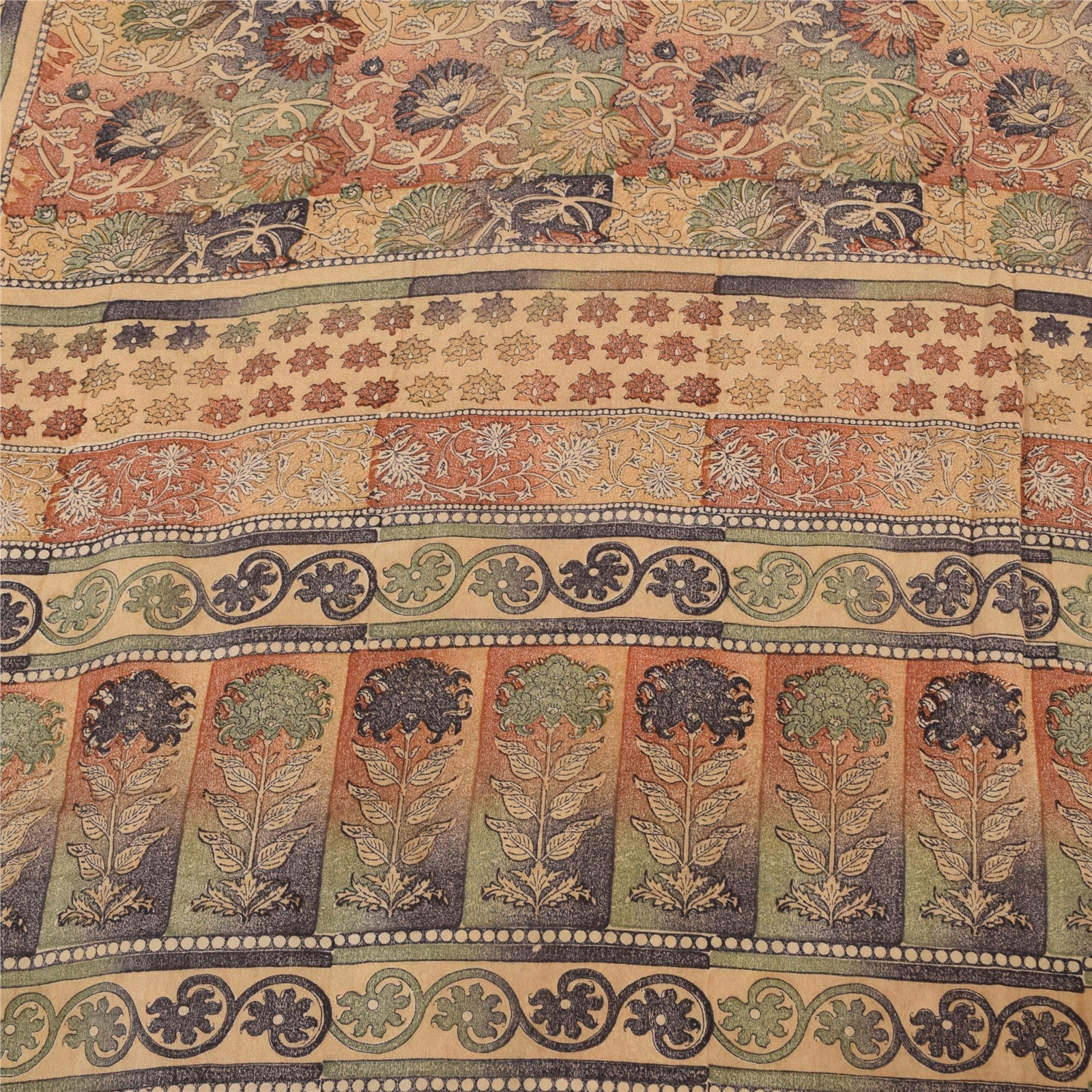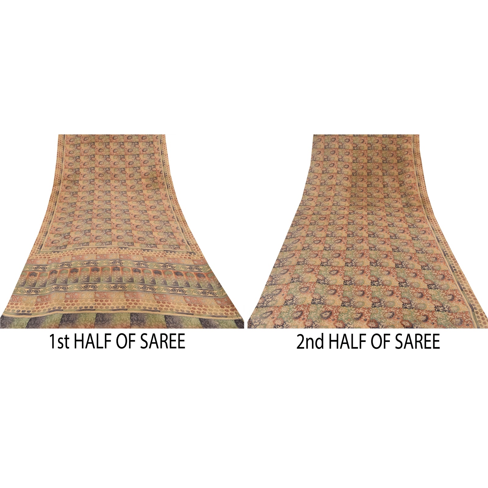 Sanskriti Vintage Sarees Peach 100%Pure Crepe Silk Printed Sari 5yd Craft Sustainable Fabric