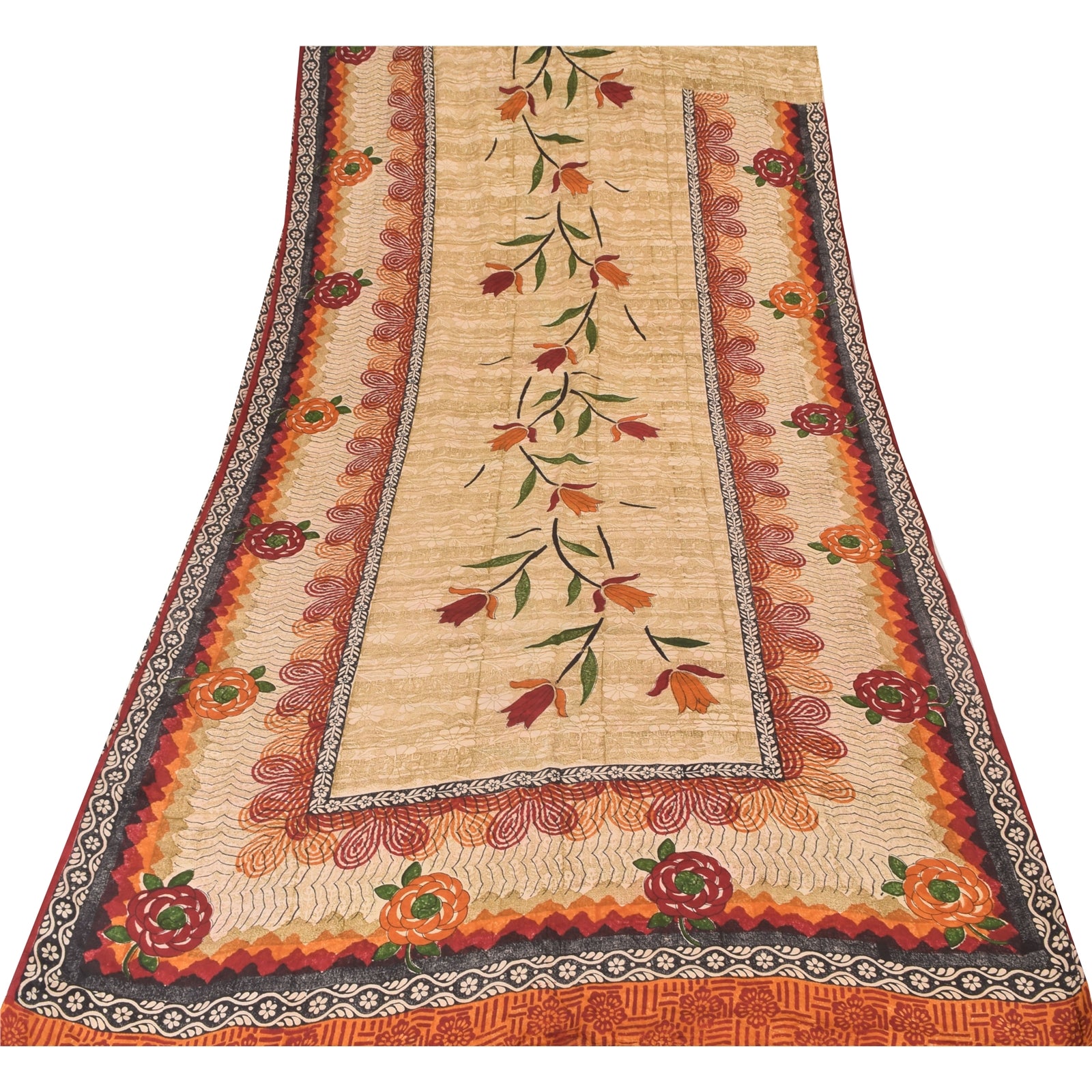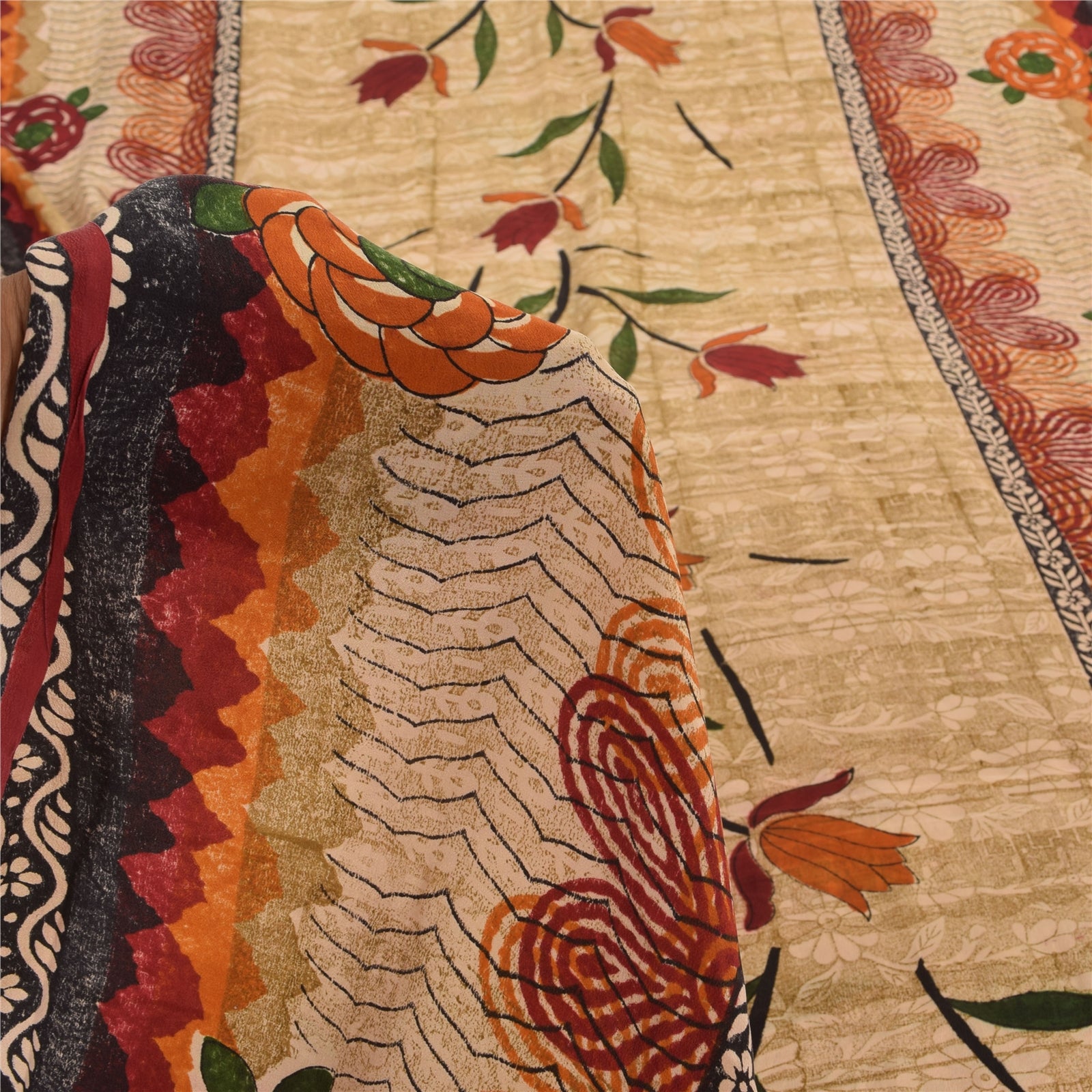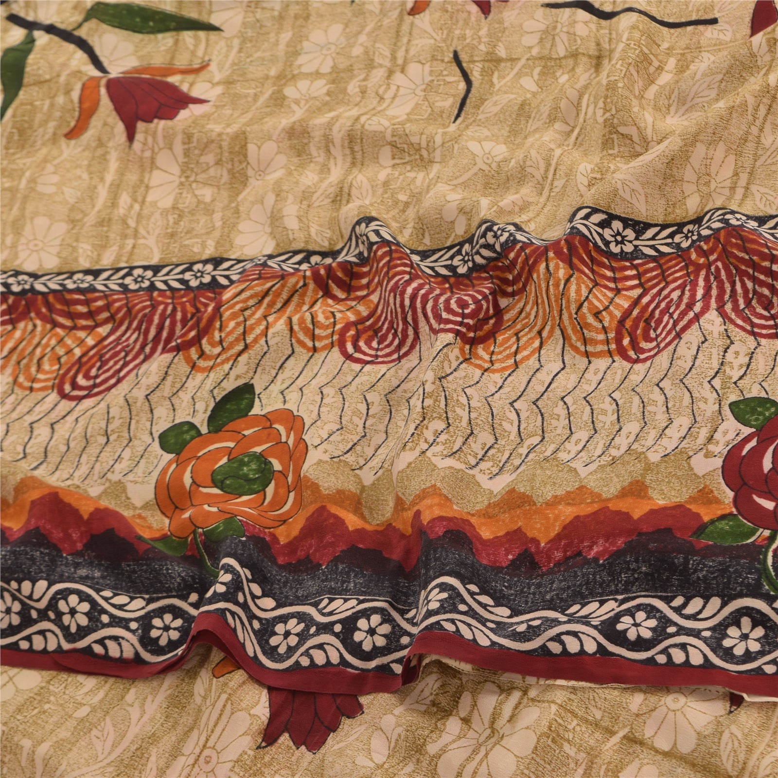 Sanskriti Vintage Sarees Peach 100%Pure Crepe Silk Printed Sari 5yd Craft Sustainable Fabric