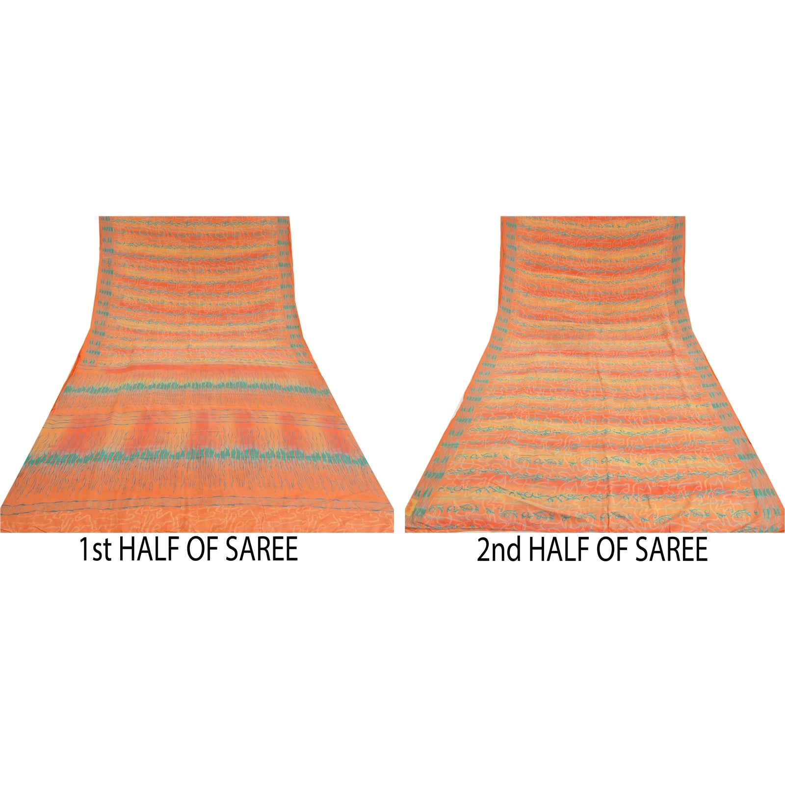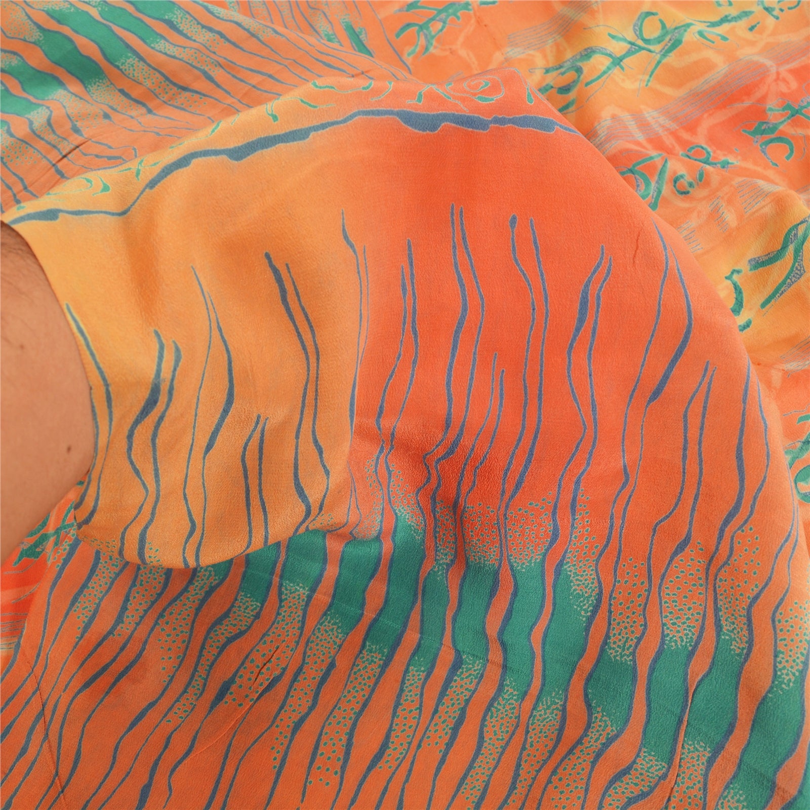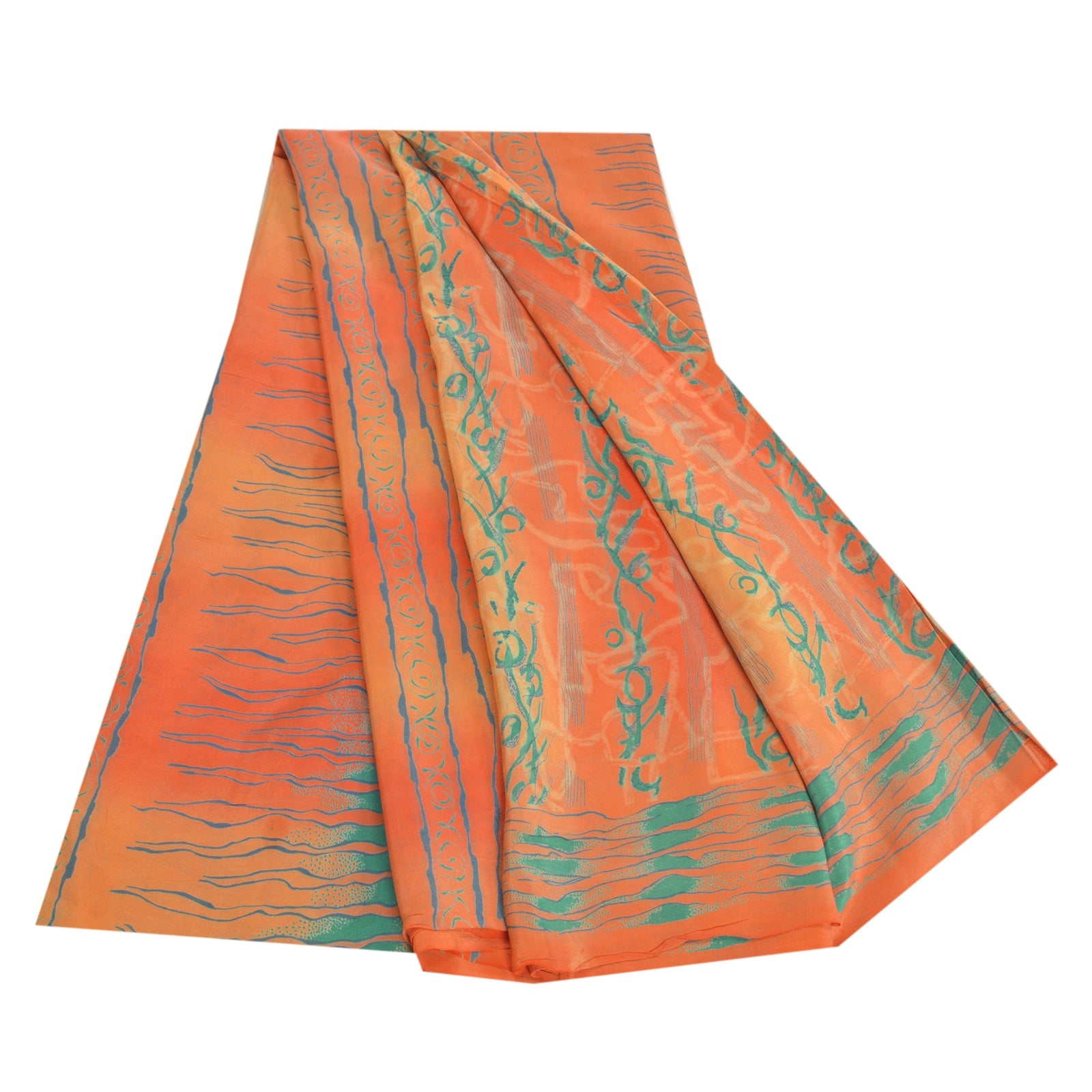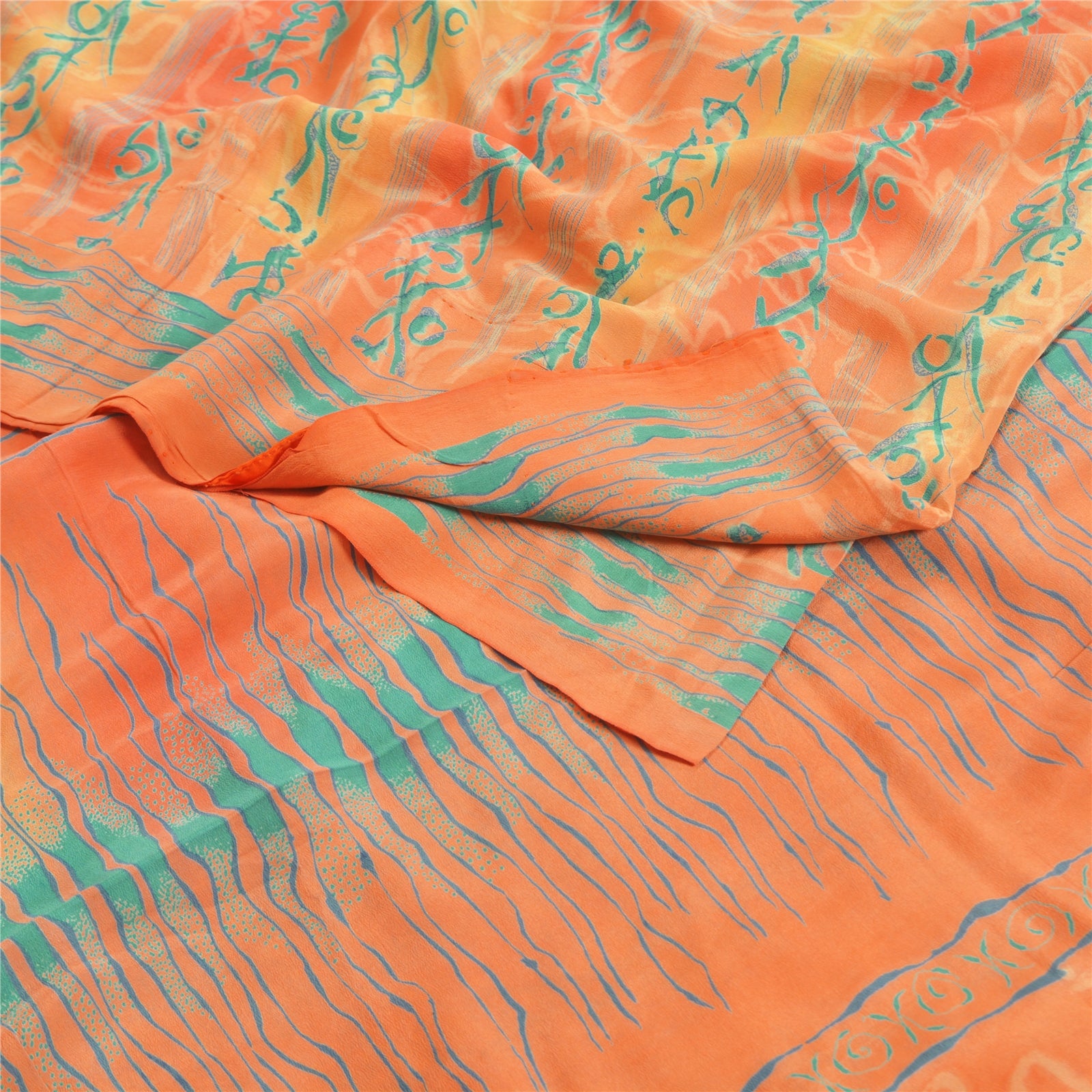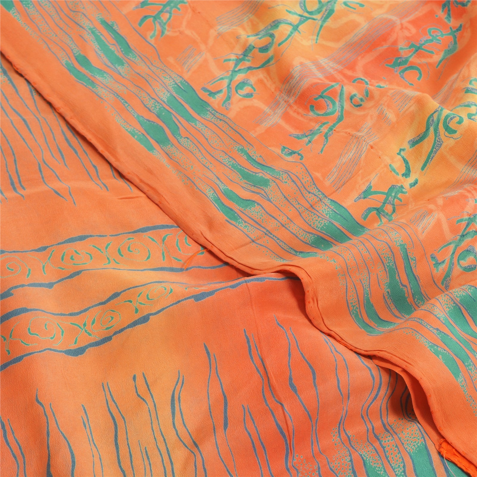 Sanskriti Vintage Sarees Peach 100% Pure Crepe Silk Printed Sari Craft Sustainable Fabric