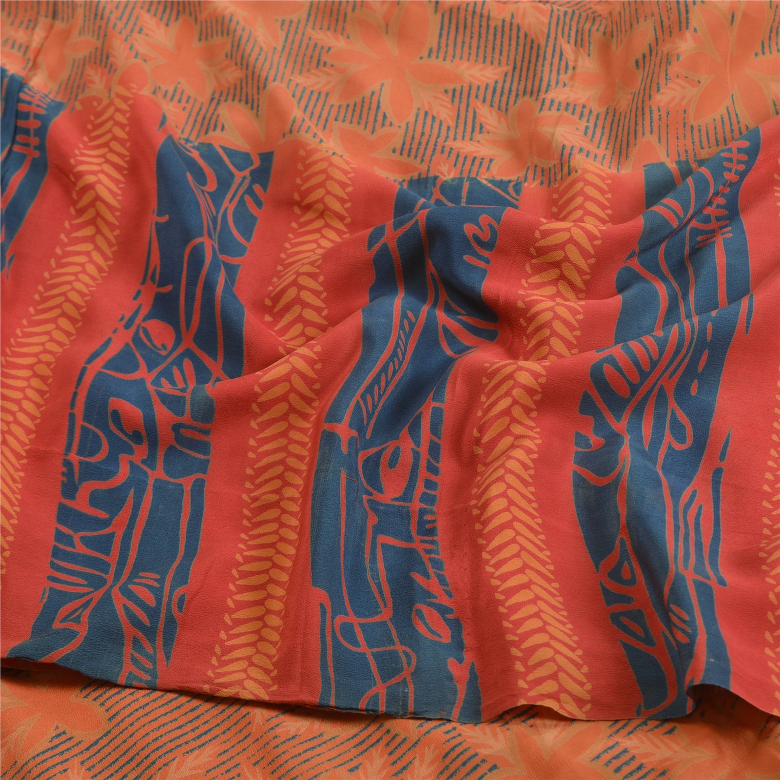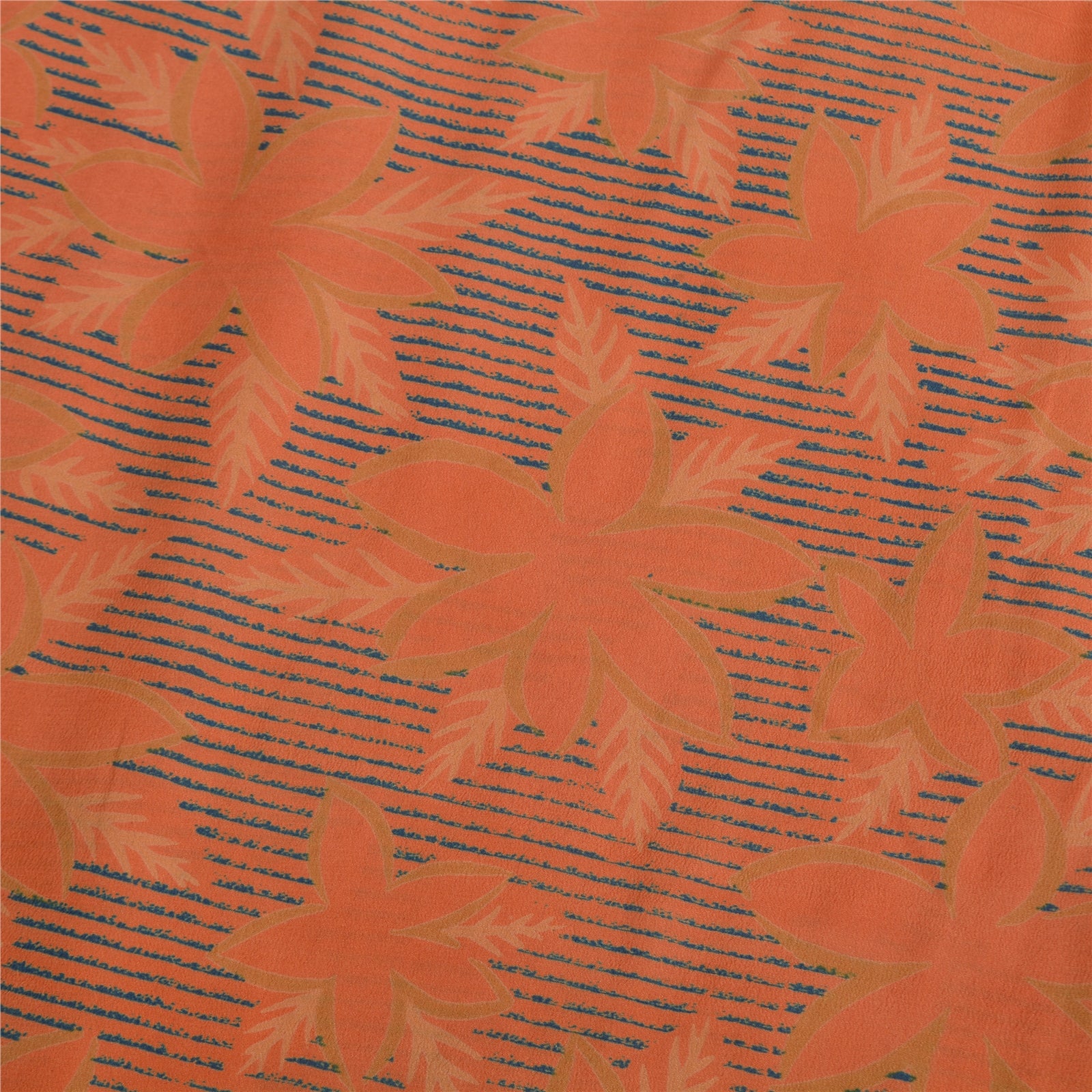 Sanskriti Vintage Sarees Peach 100% Pure Crepe Silk Printed Sari Craft Sustainable Fabric