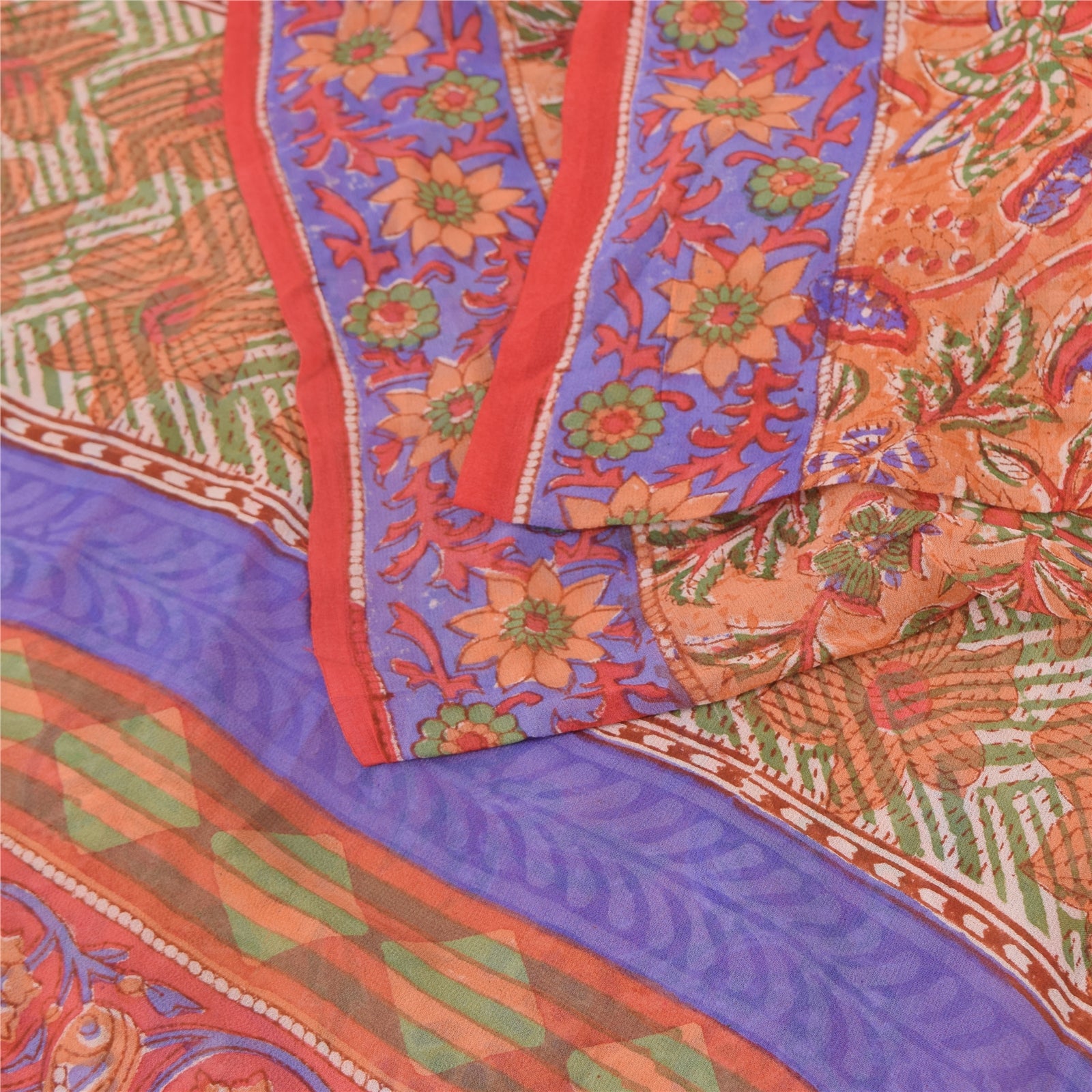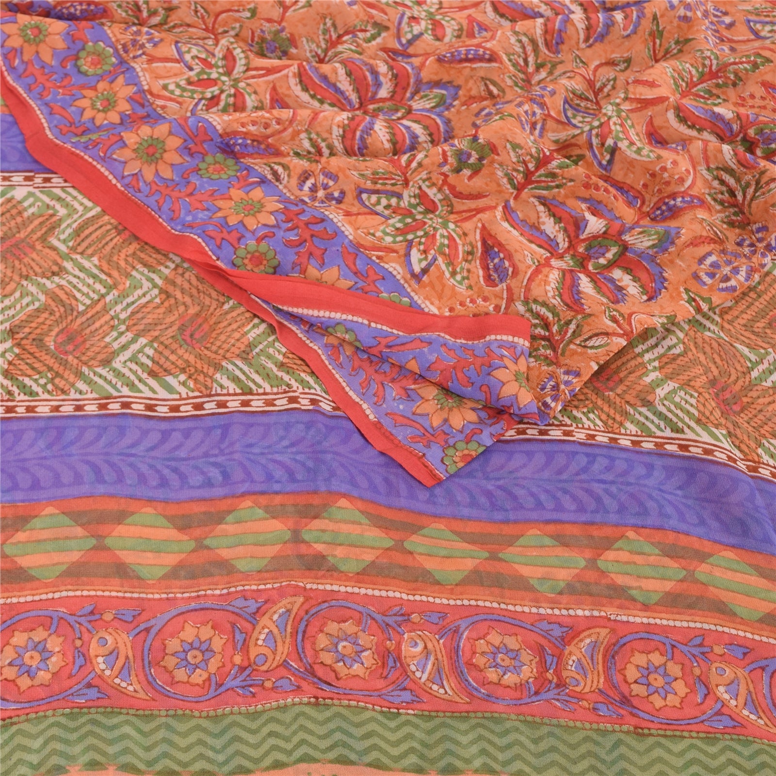 THE ITEM COLOR OR SHADE MAY BE DARKER OR LIGHTER THAN THE PICTURE.' Beautiful peach colored pure georgette silk printed saree. Pallu & border has printed floral design. Similar design in center part of saree. Saree has mild stain on it. What is special about this saree? Brilliant design on soft Sustainable Fabric is really enhancing the beauty of the saree. This unique vintage saree can be used for various crafting ideas even if you don't want to use it as a sari. Design a dress, use it as a as window dressing, upholstery, sarongs, throw, dress making and table linen much more. Let your creative juices flow and use this decorated Sustainable Fabric in multiple fashion. International buyers please note: Import duties, taxes, and charges are not included in the item price or postage cost. These charges are the buyer's responsibility. Please check with your country's customs office to determine what these additional costs will be prior to bidding or buying.Buyer will pay custom duty/tax. It is calculated and charged differently by every country. As a seller I do not have any control over it. VAT or sales tax is calculated by the platform at the time of checkout. Customs charge is payable at the time of delivery.
