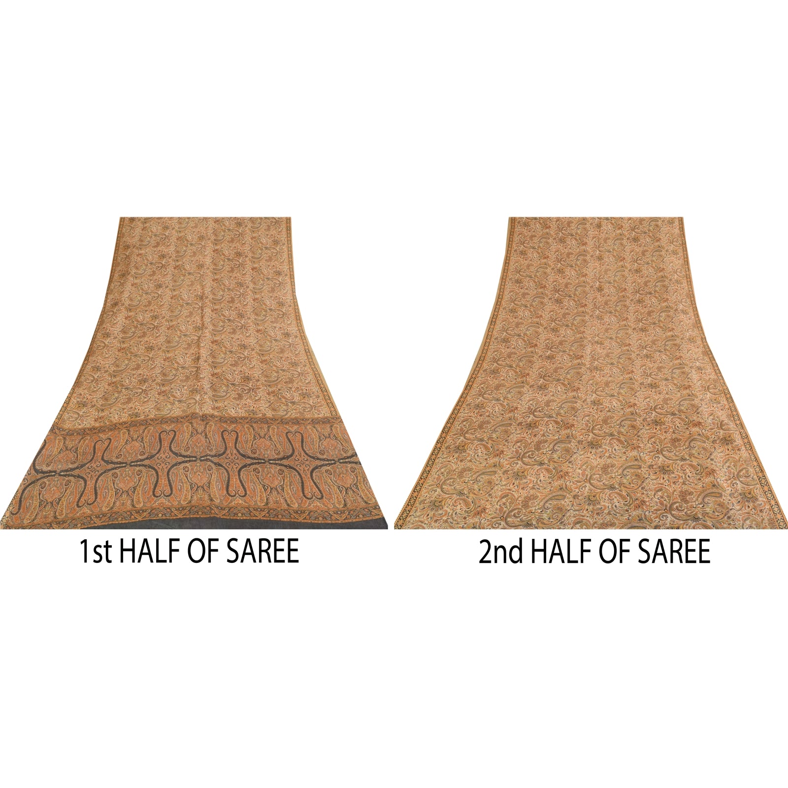 Sanskriti Vintage Sarees Peach 100% Pure Silk Printed Sari 6+yd Craft Fabric