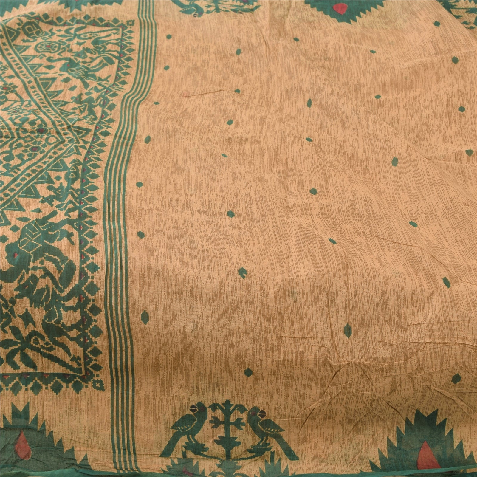 Sanskriti Vintage Sarees Peach/Green Pure Cotton Printed Sari 5yd Craft Sustainable Fabric