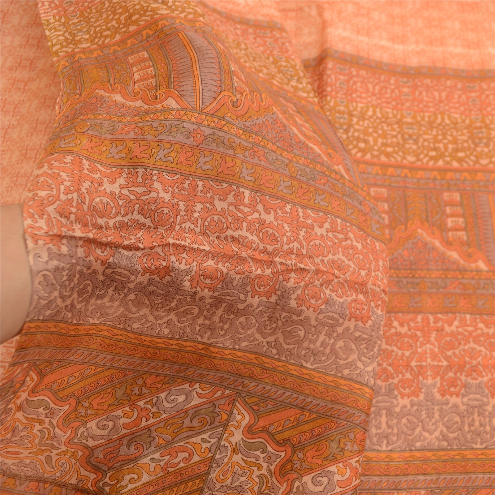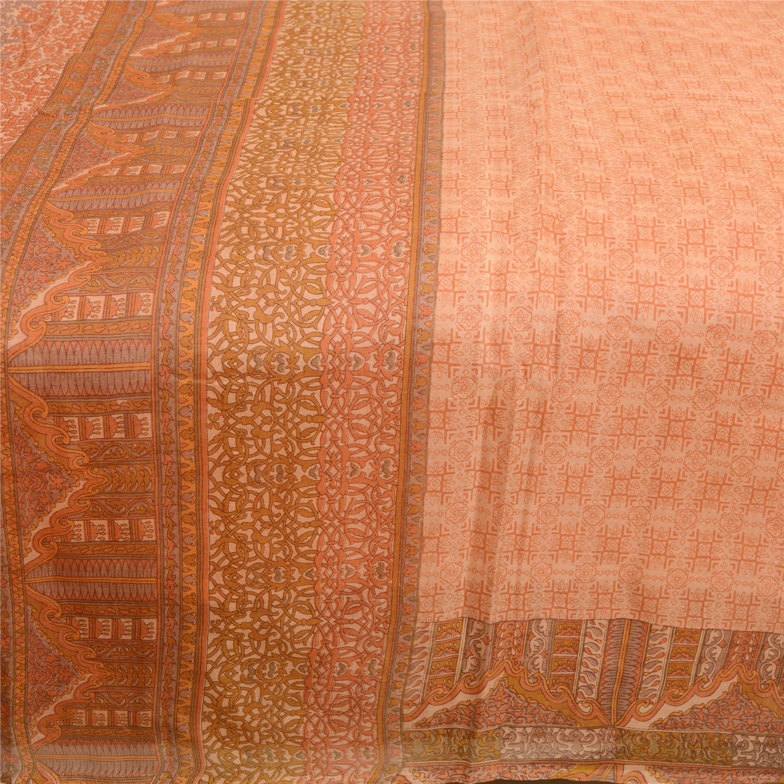 Sanskriti Vintage Sarees Peach Indian Printed Pure Silk Sari Soft Craft Sustainable Fabric