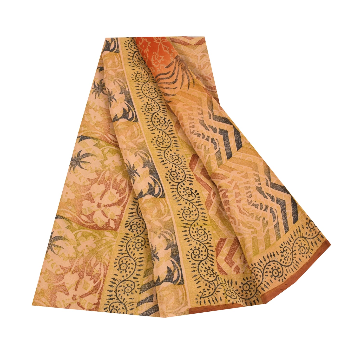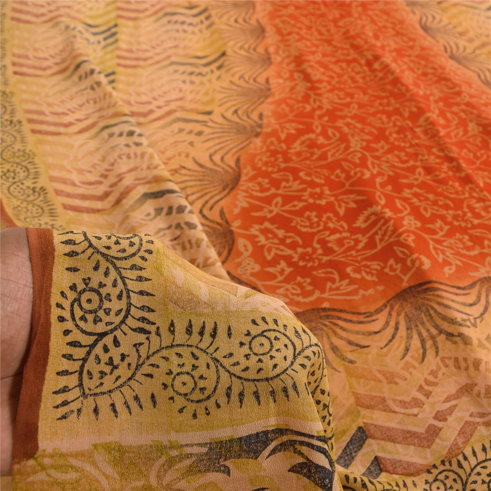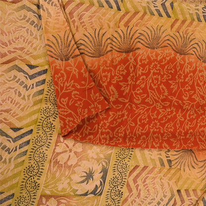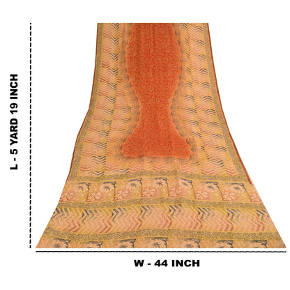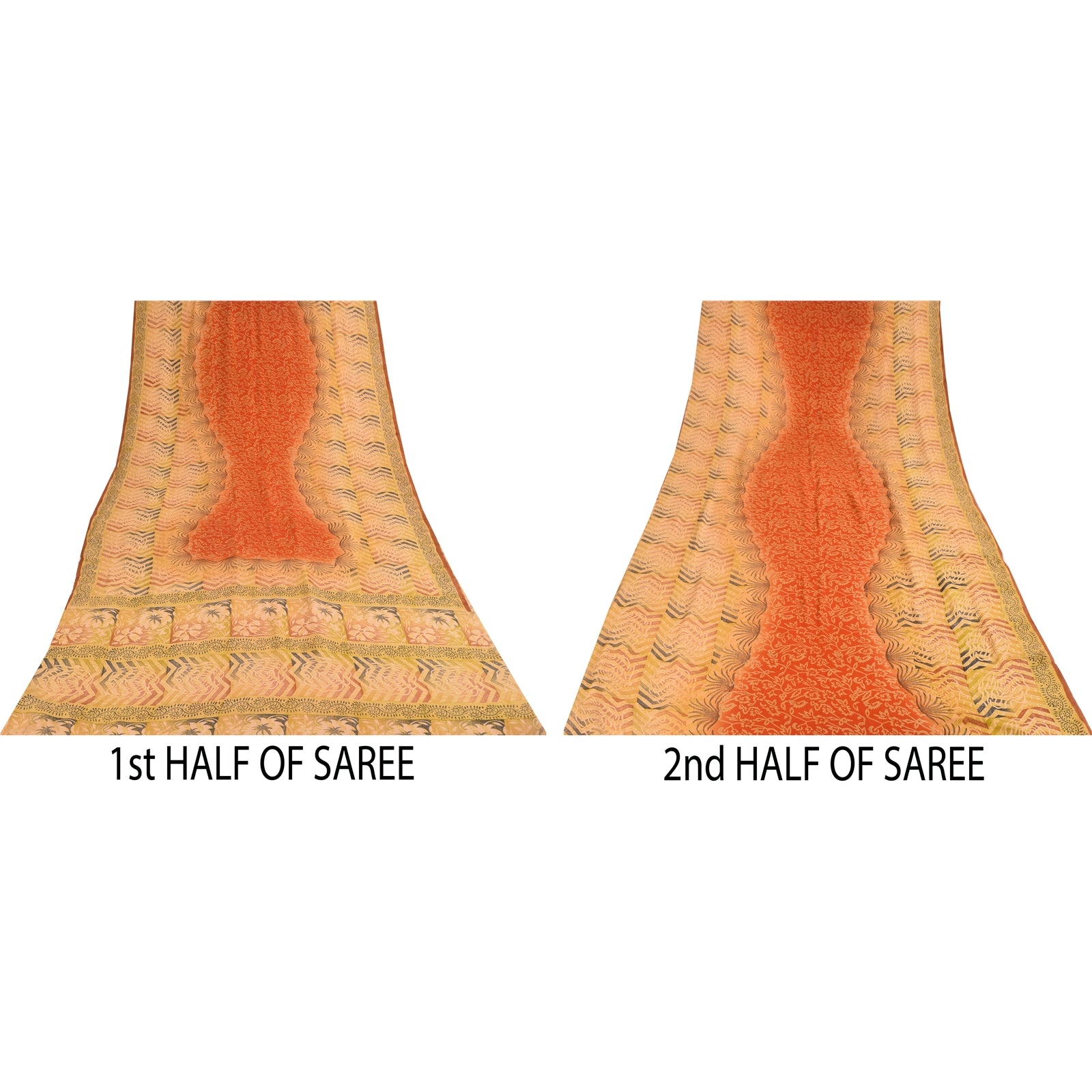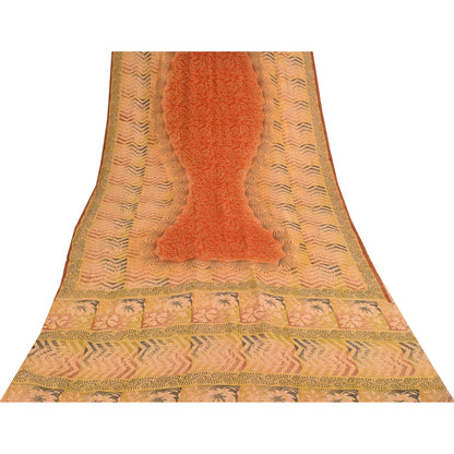 Sanskriti Vintage Sarees Peach & Orange Pure Crepe Silk Printed Sari 5+yd Sustainable Fabric