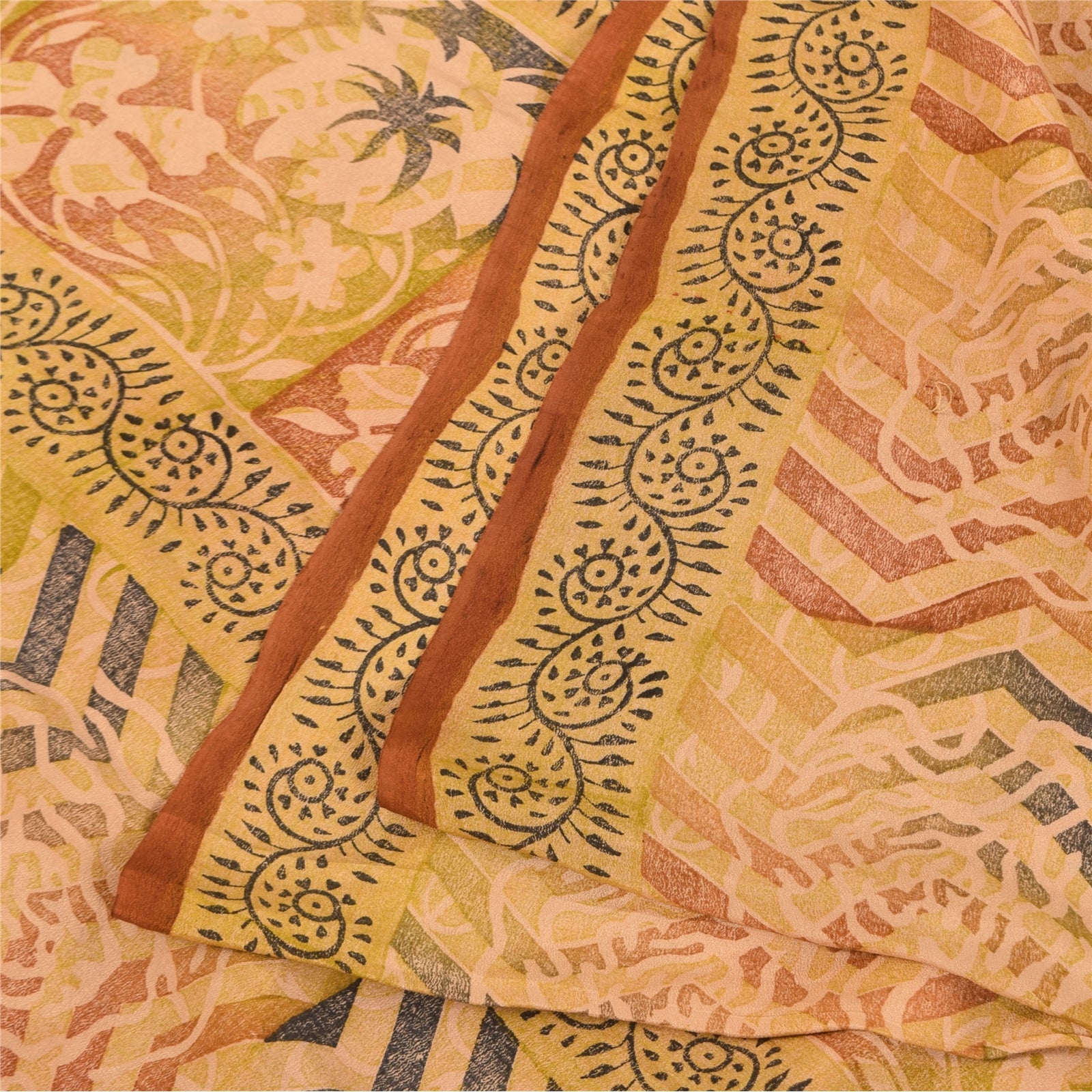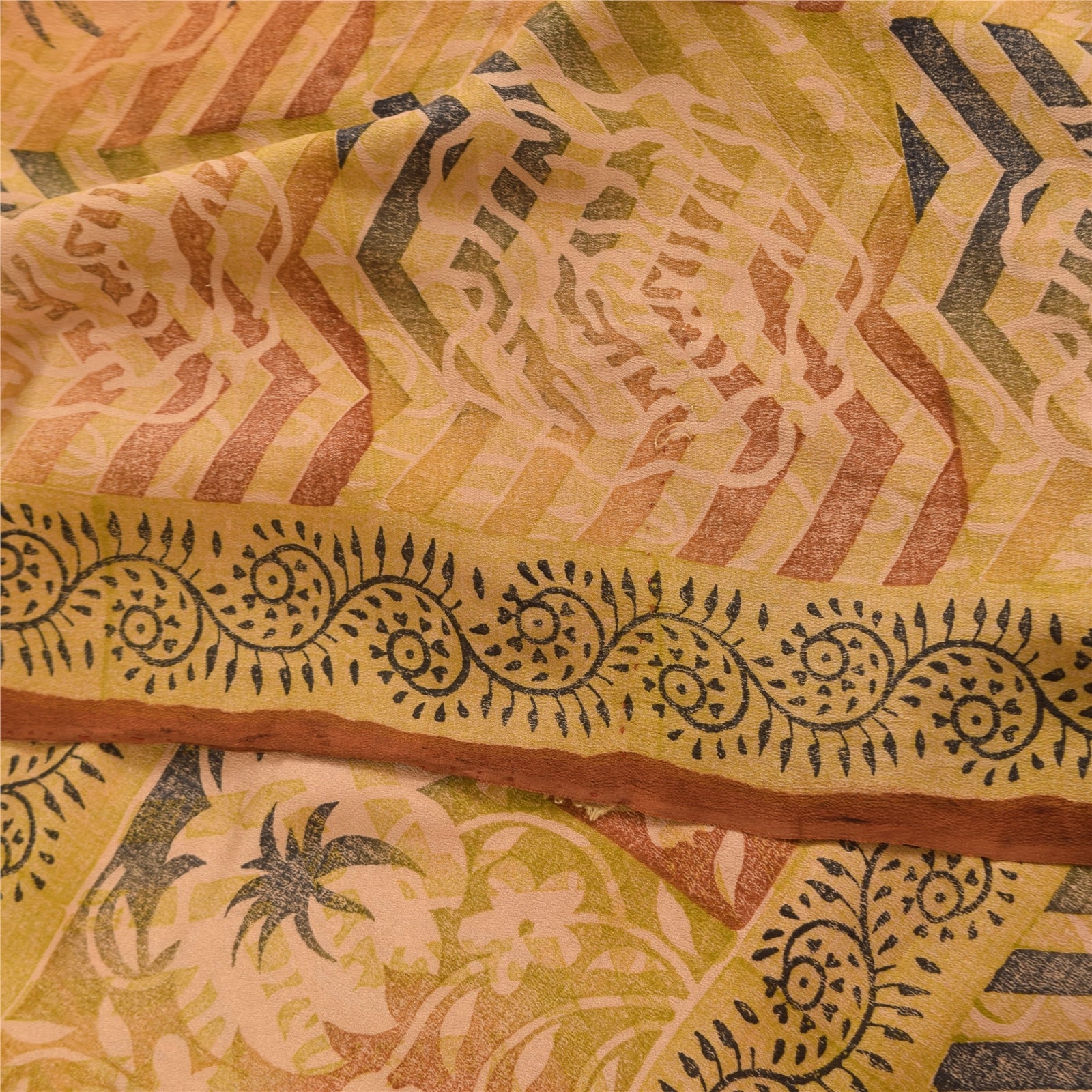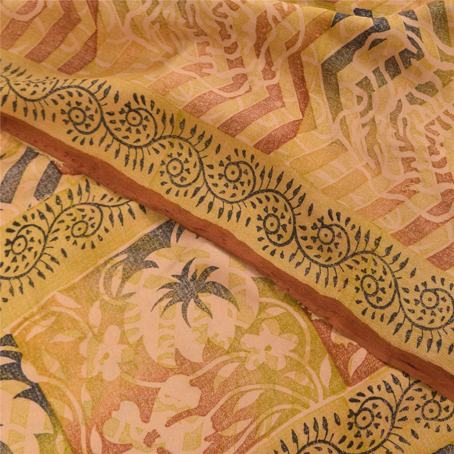 Sanskriti Vintage Sarees Peach & Orange Pure Crepe Silk Printed Sari 5+yd Sustainable Fabric