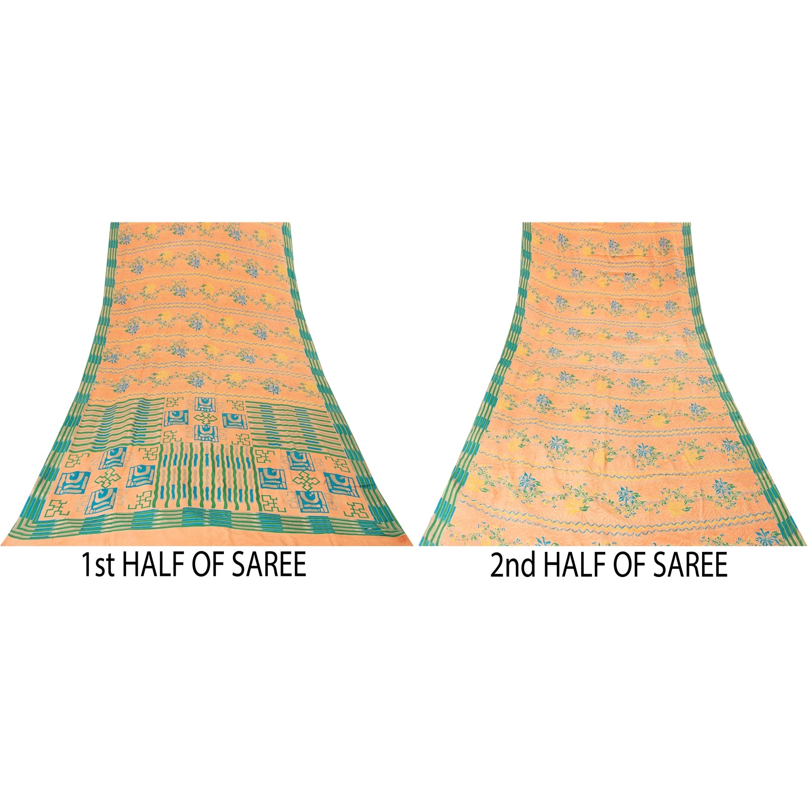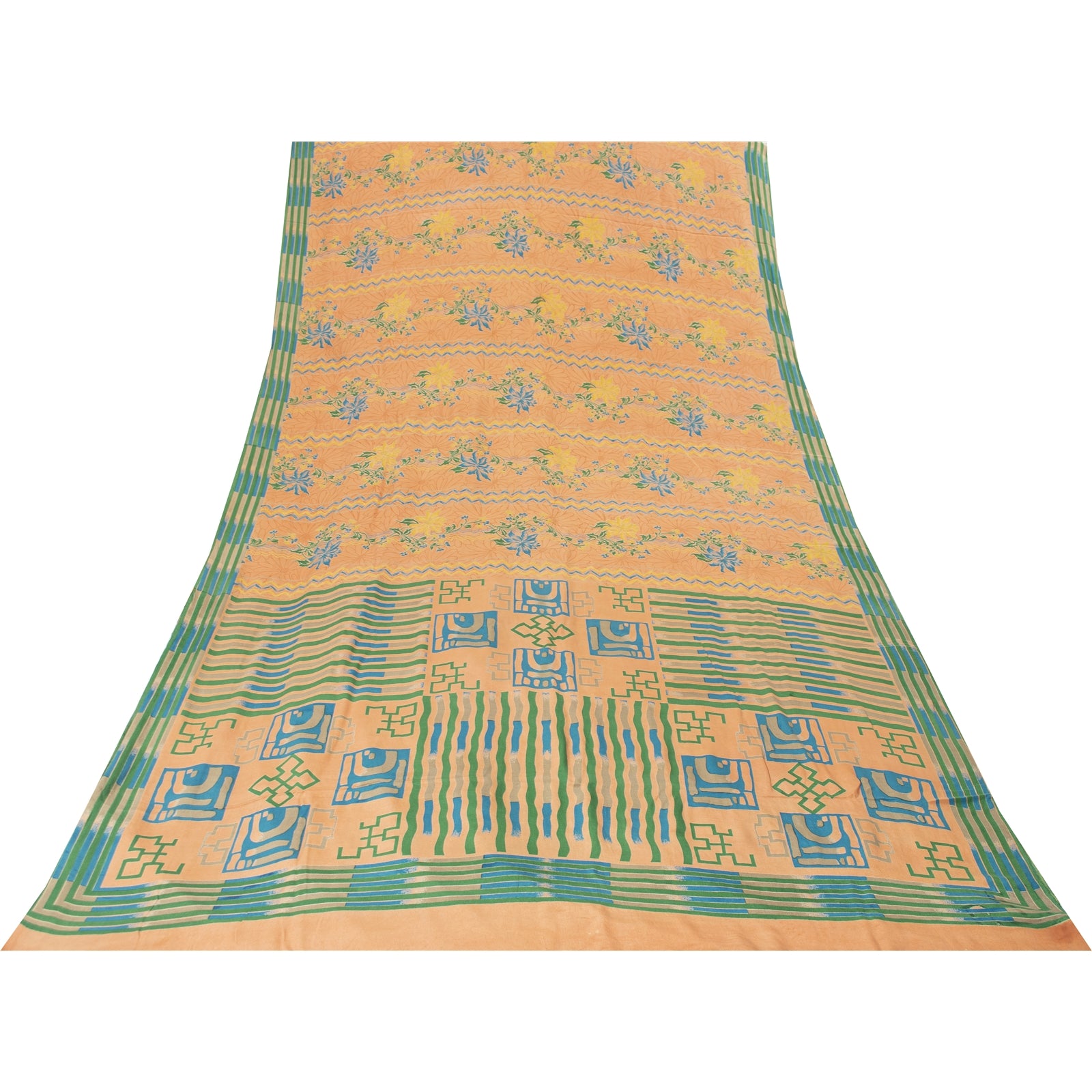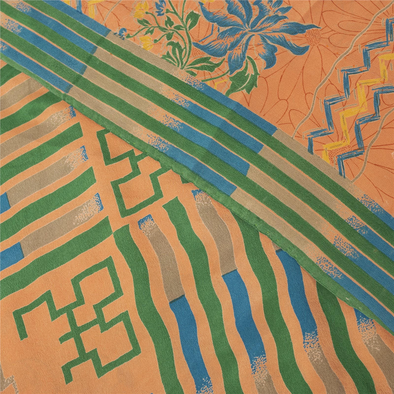 Sanskriti Vintage Sarees Peach Pure Crepe Silk Printed Sari 5+yd Craft Fabric