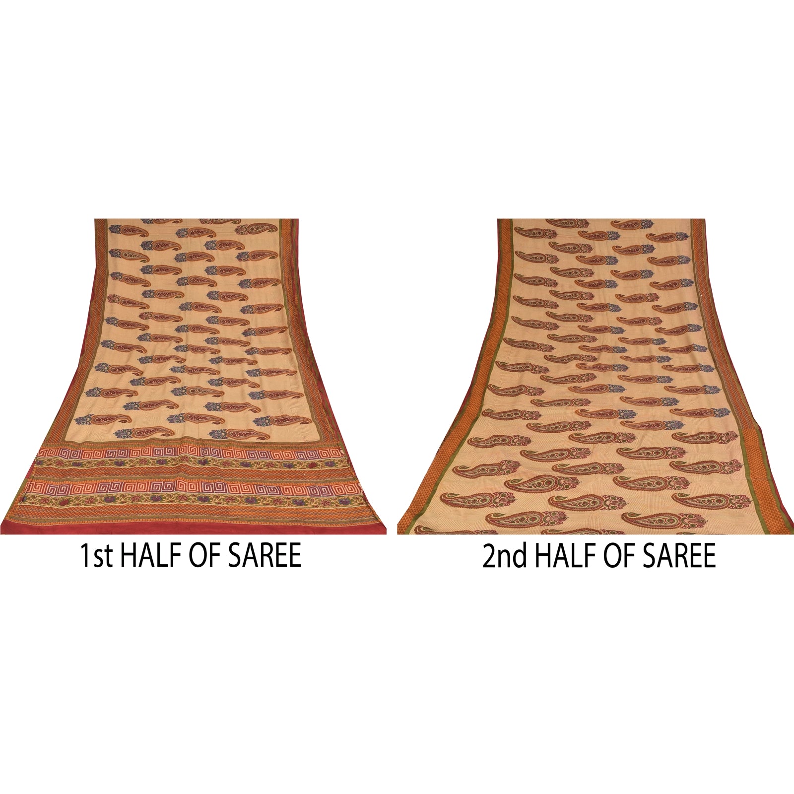 THE ITEM COLOR OR SHADE MAY BE DARKER OR LIGHTER THAN THE PICTURE.' • Beautiful peach colored printed pure crepe silk saree . • Pallu & Border has printed floral & geometric design. • Floral & paisley design in center part of sari . This unique vintage saree can be used for various crafting ideas even if you don't want to use it as a sari. Design a dress, use it as a as window dressing, upholstery, sarongs, throw, dress making and table linen much more. Let your creative juices flow and use this decorated Sustainable Fabric in multiple fashion. International buyers please note: Import duties, taxes, and charges are not included in the item price or postage cost. These charges are the buyer's responsibility. Please check with your country's customs office to determine what these additional costs will be prior to bidding or buying.Buyer will pay custom duty/tax. It is calculated and charged differently by every country. As a seller I do not have any control over it. VAT or sales tax is calculated by the platform at the time of checkout. Customs charge is payable at the time of delivery. prc-23222