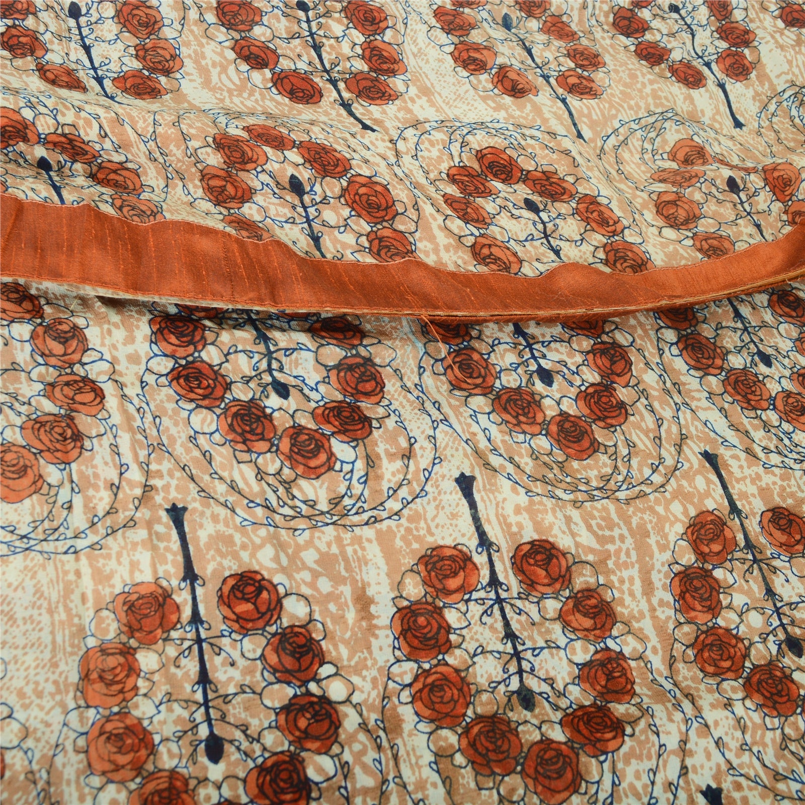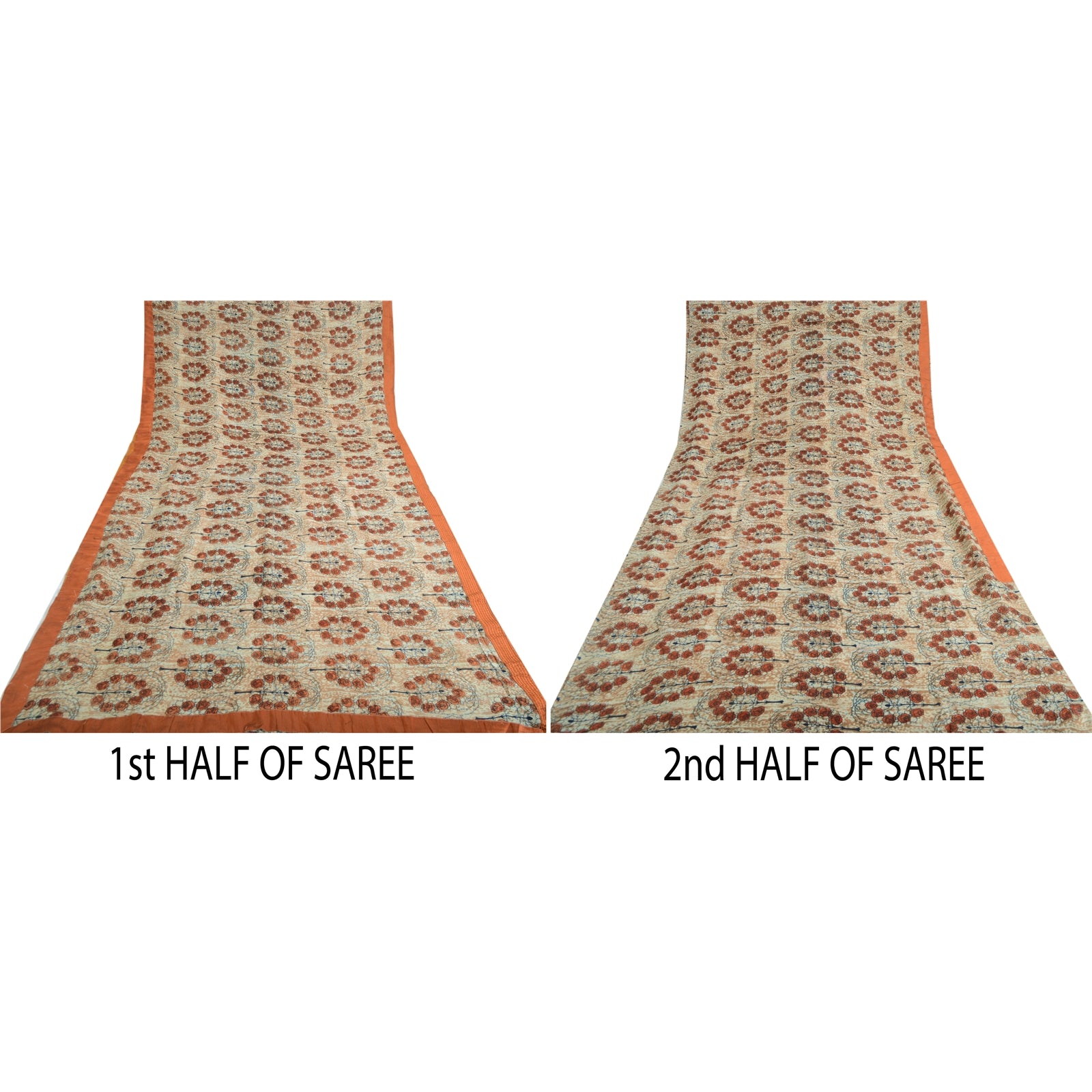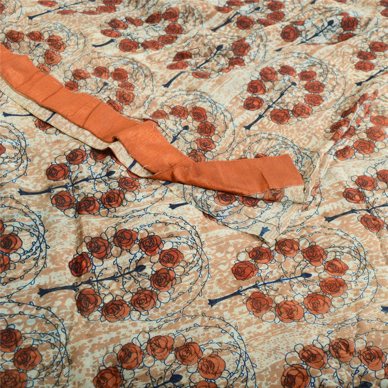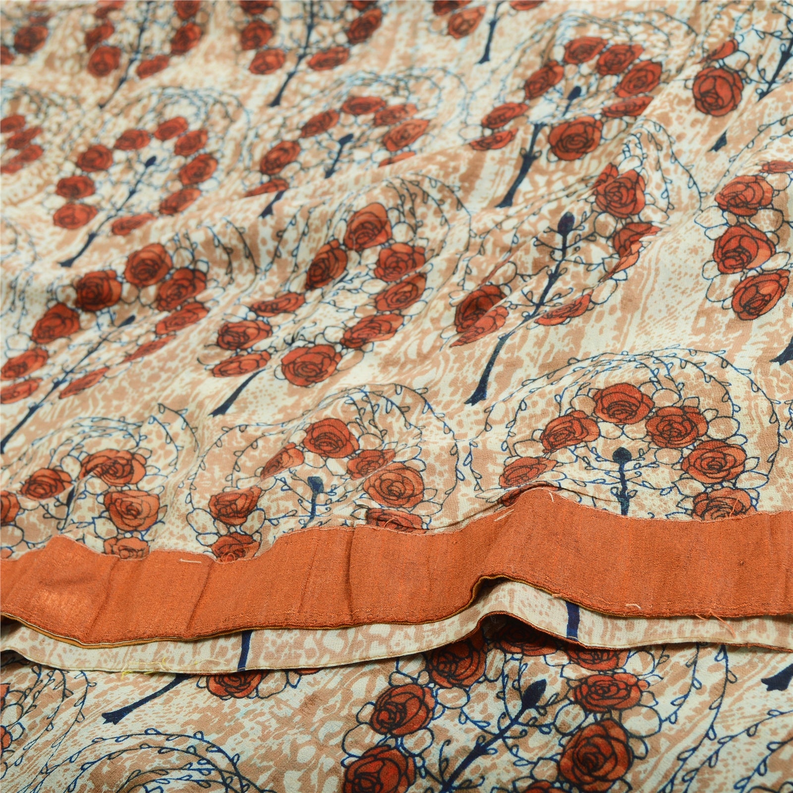 Sanskriti Vintage Sarees Peach Pure Georgette Silk Printed Sari 5yd Craft Sustainable Fabric