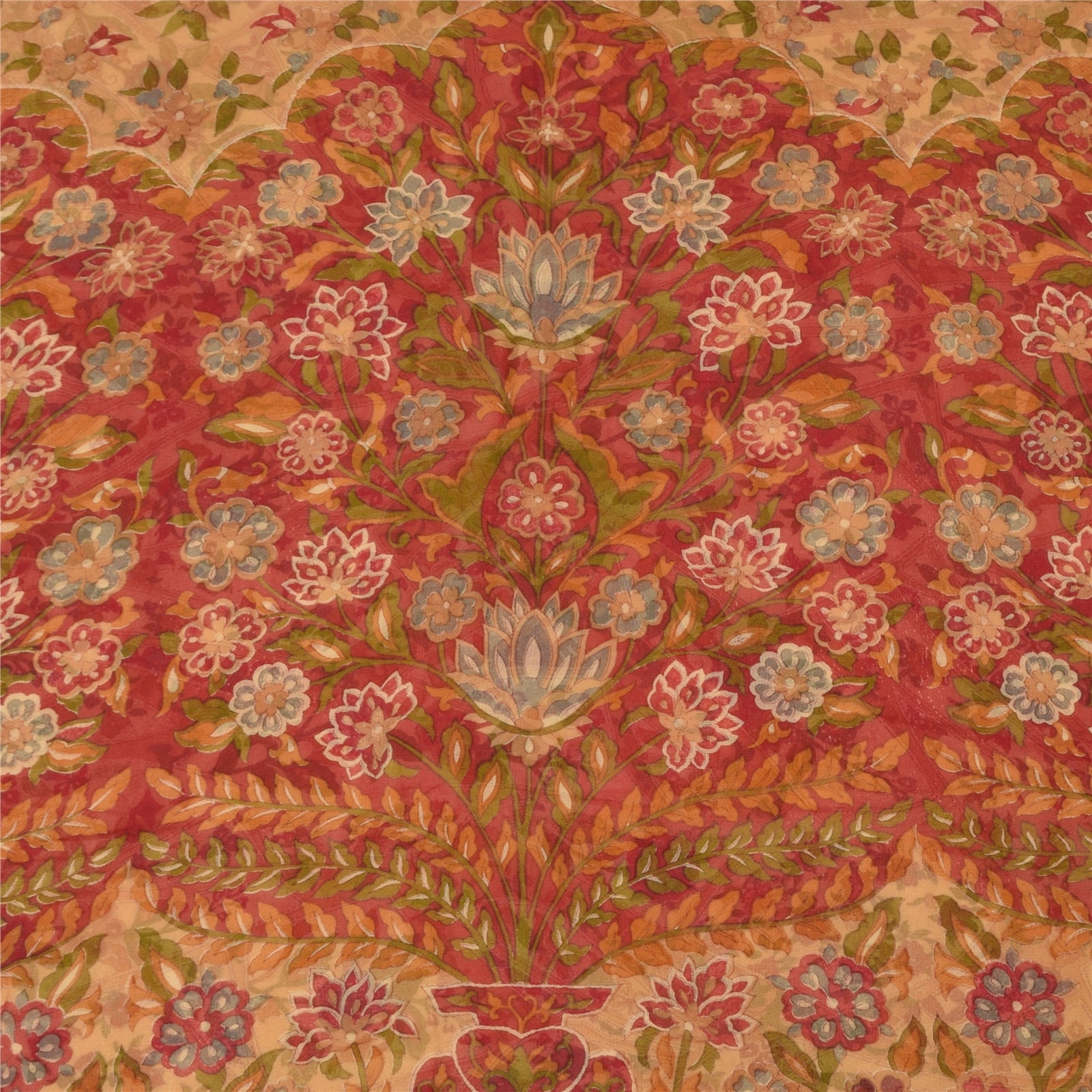Sanskriti Vintage Sarees Peach Pure Georgette Silk Printed Sari 5yd Craft Fabric