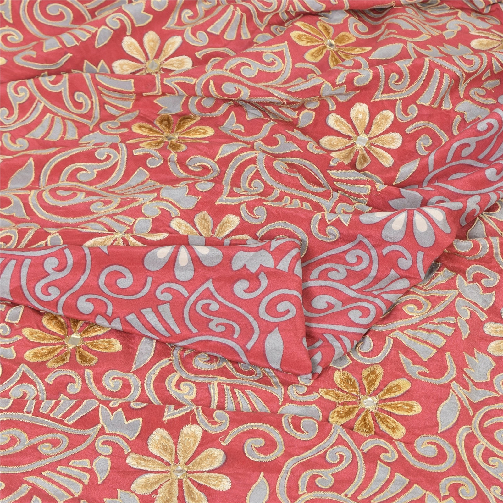 Sanskriti Vintage Sarees Pink 100% Pure Crepe Silk Printed Sari 5yd Craft Sustainable Fabric
