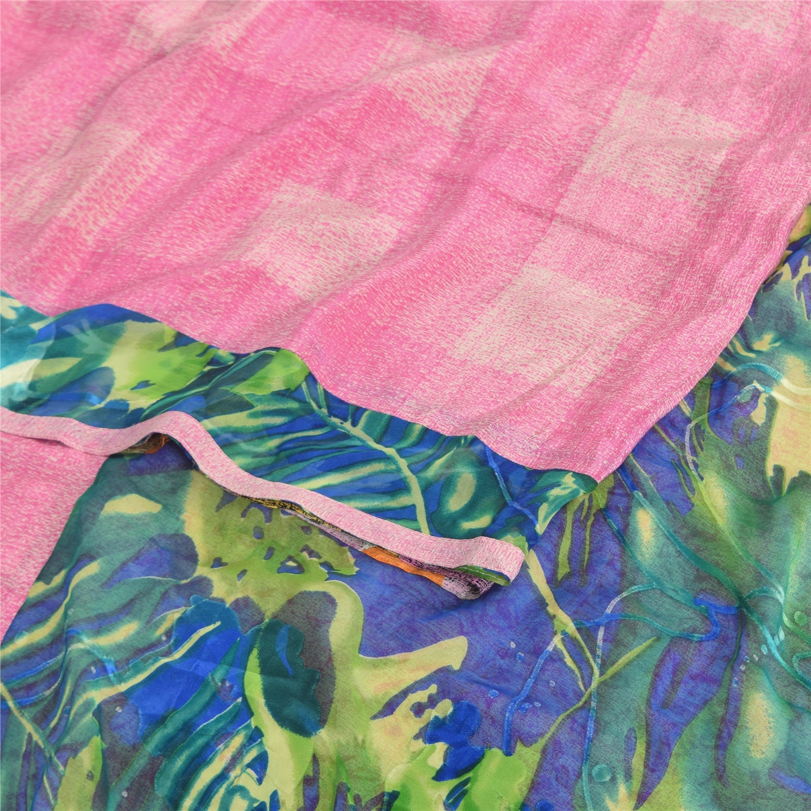 Sanskriti Vintage Sarees Pink 100% Pure Crepe Silk Printed Sari 6yd Craft Sustainable Fabric