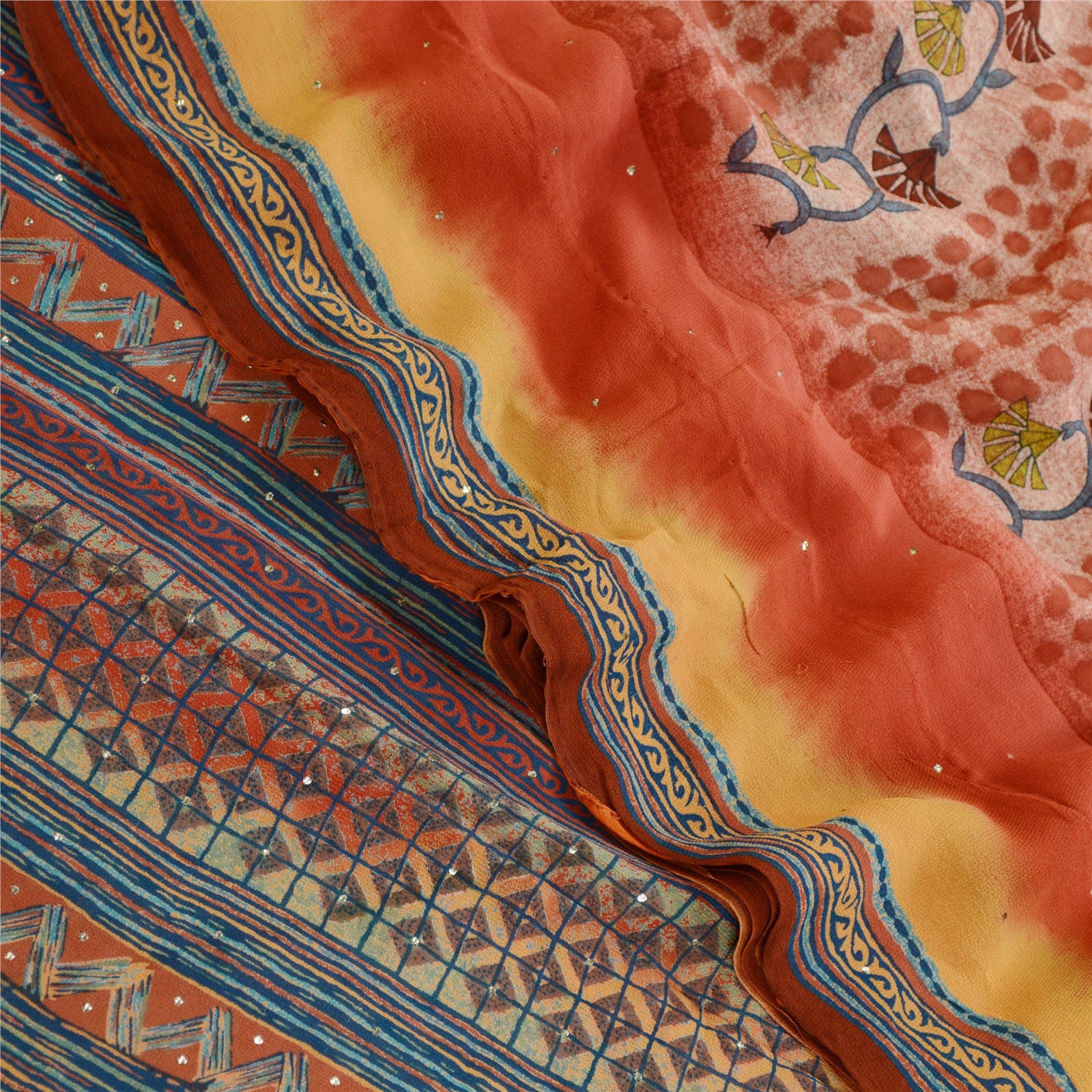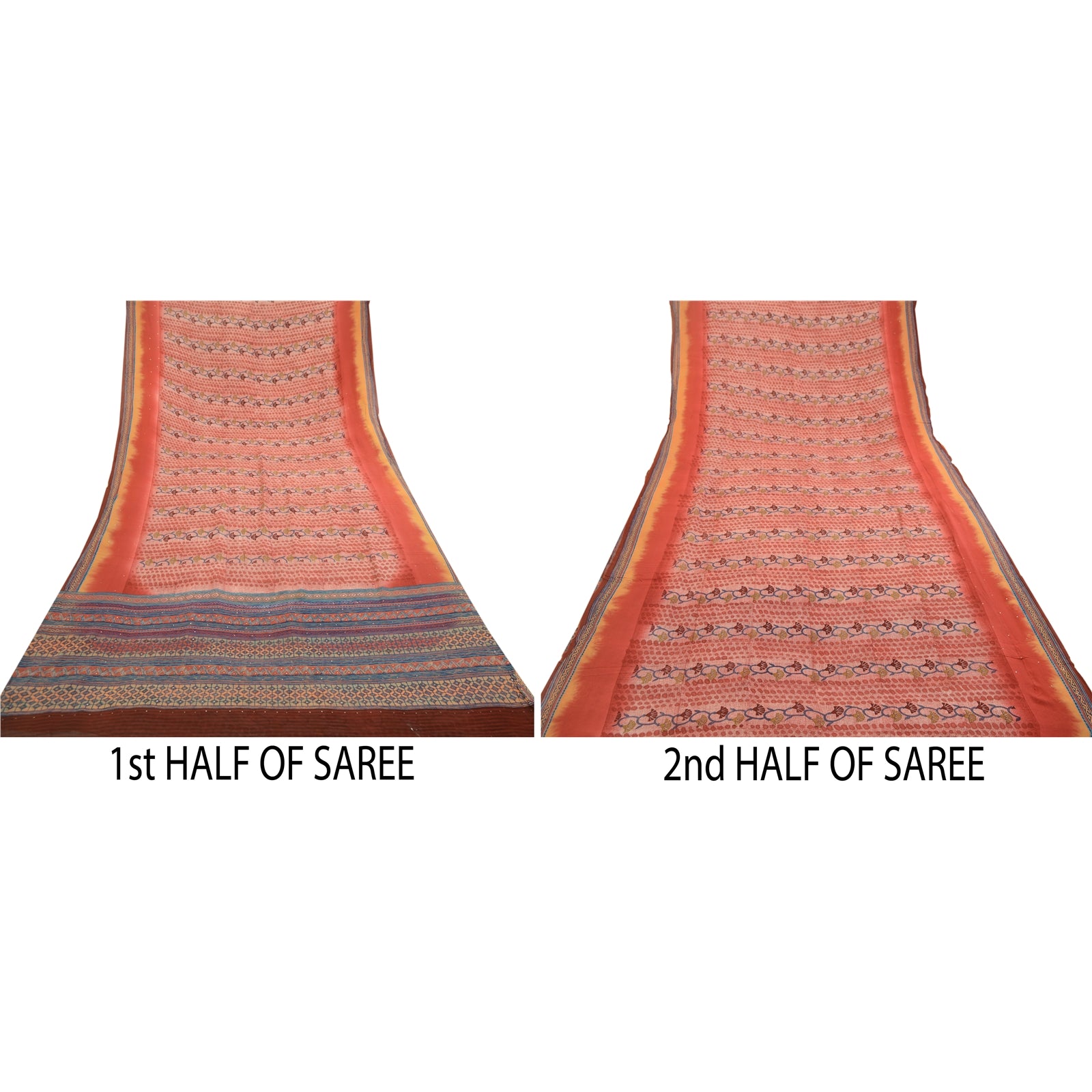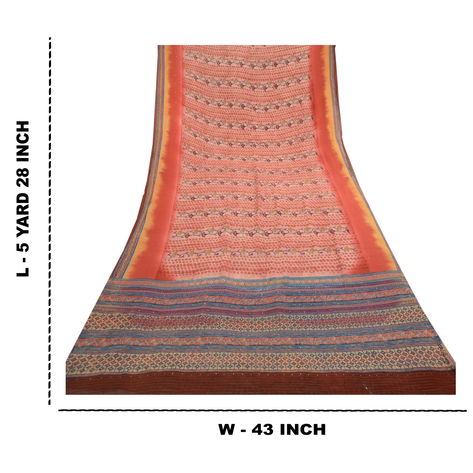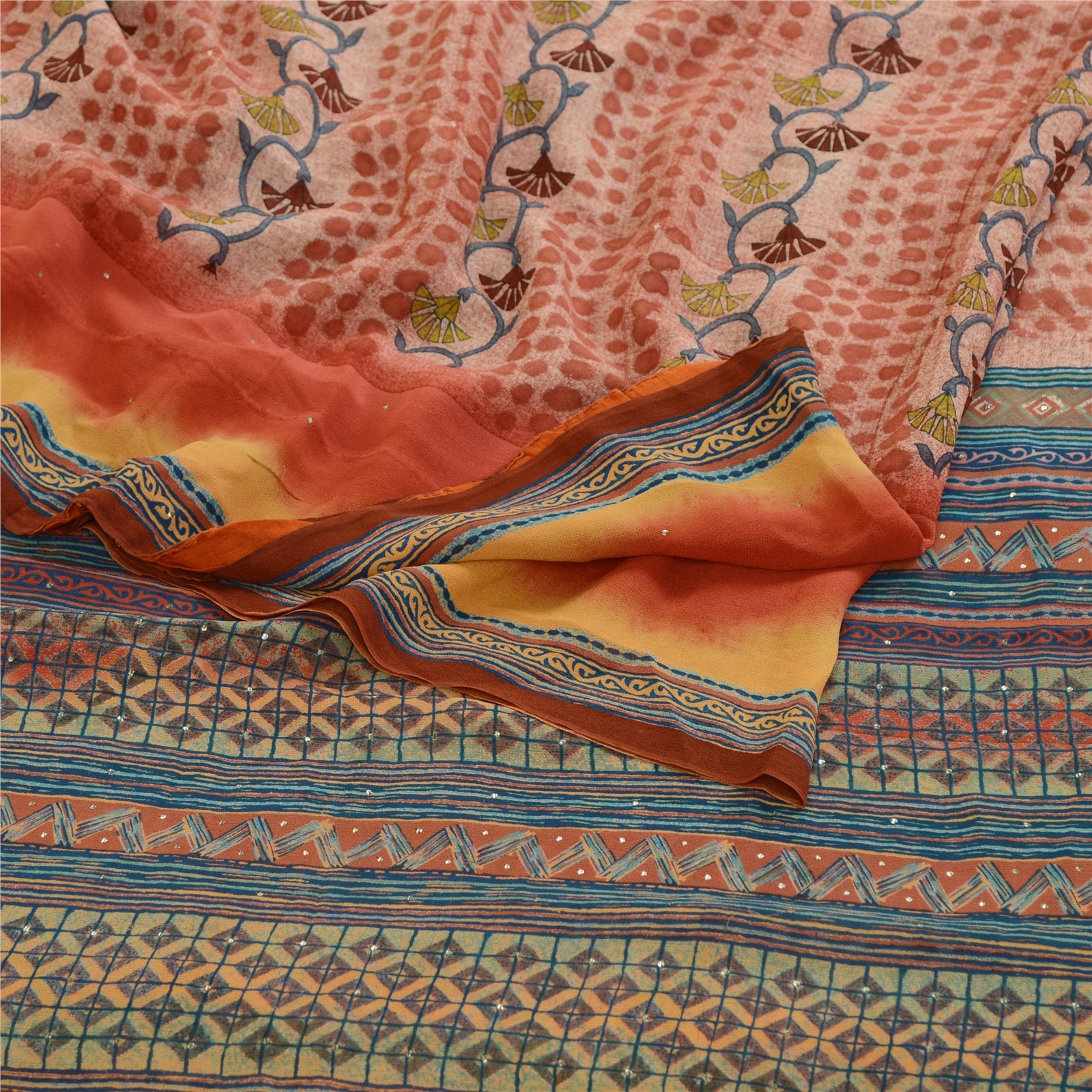 Sanskriti Vintage Sarees Pink 100% Pure Geogette Silk Printed Sari Craft Sustainable Fabric