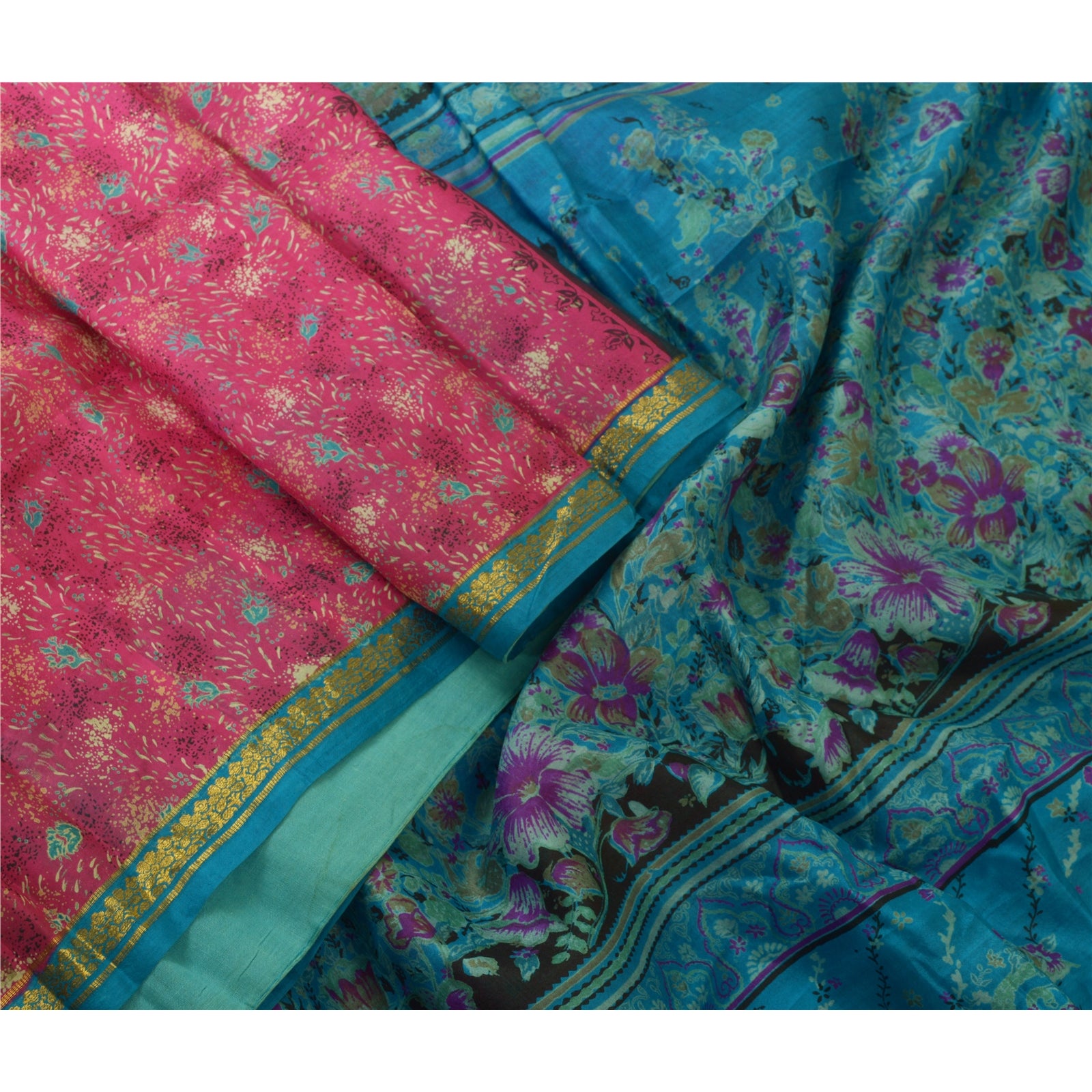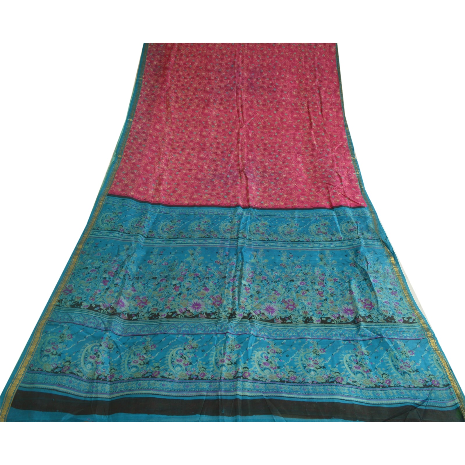 THE ITEM COLOR OR SHADE MAY BE DARKER OR LIGHTER THAN THE PICTURE.' Beautiful pink & blue colored pure silk printed saree. Pallu & Border has printed floral design & golden zari woven work. Similar design in center part of saree. Saree has mild stain on it. What is special about this saree? Fabulous design is really enhancing the beauty of the saree.This unique vintage saree can be used for various crafting ideas even if you don't want to use it as a sari. Design a dress, use it as window, dressing, upholstery, sarongs, throw, dress making and table linen much more. Let your creative juices flow and use this decorated Sustainable Fabric in multiple fashion. International buyers please note: Import duties, taxes, and charges are not included in the item price or postage cost. These charges are the buyer's responsibility. Please check with your country's customs office to determine what these additional costs will be prior to bidding or buying. Buyer will pay custom duty/tax. It is calculated and charged differently by every country. As a seller I do not have any control over it. VAT or sales tax is calculated by the platform at the time of checkout. Customs charge is payable at the time of delivery.'
